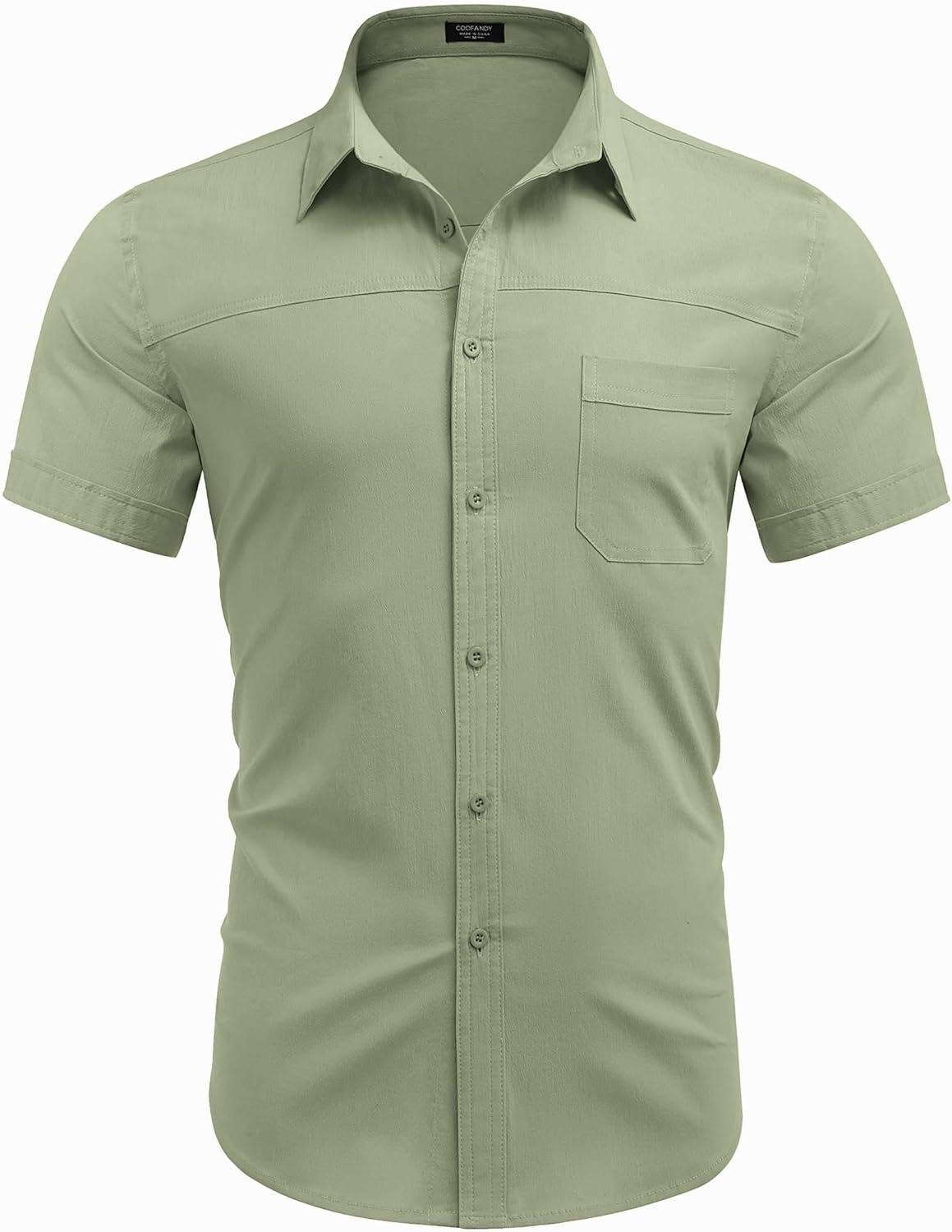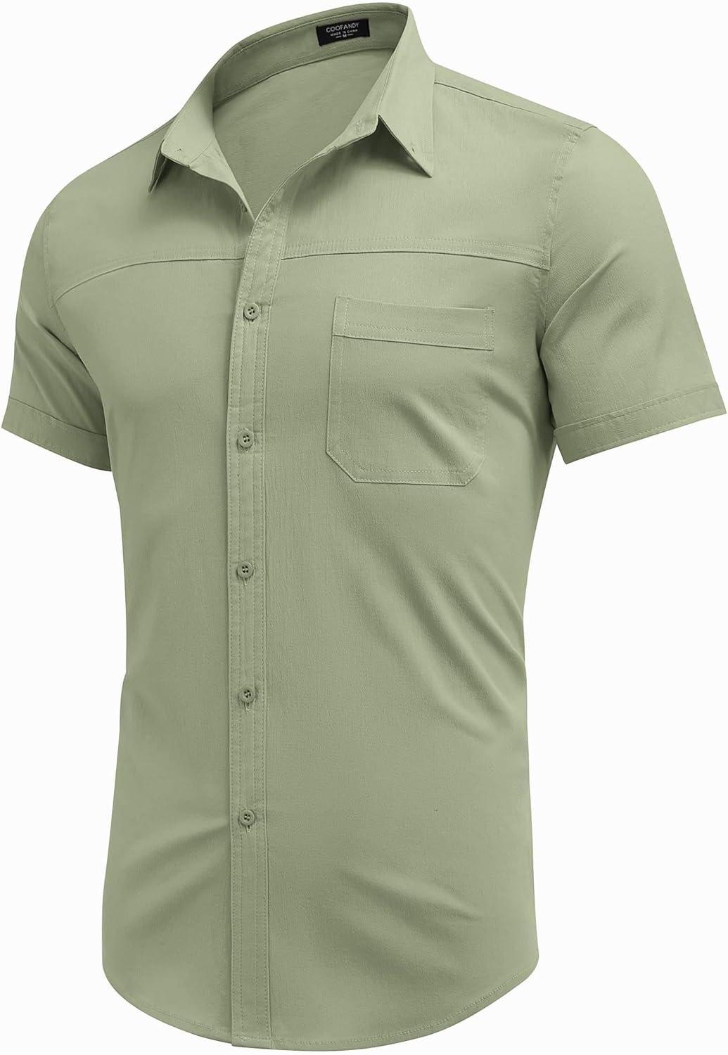 COOFANDY Men’s Dress Shirt Short Sleeve Button Down Shirts with Pocket(Light Green)