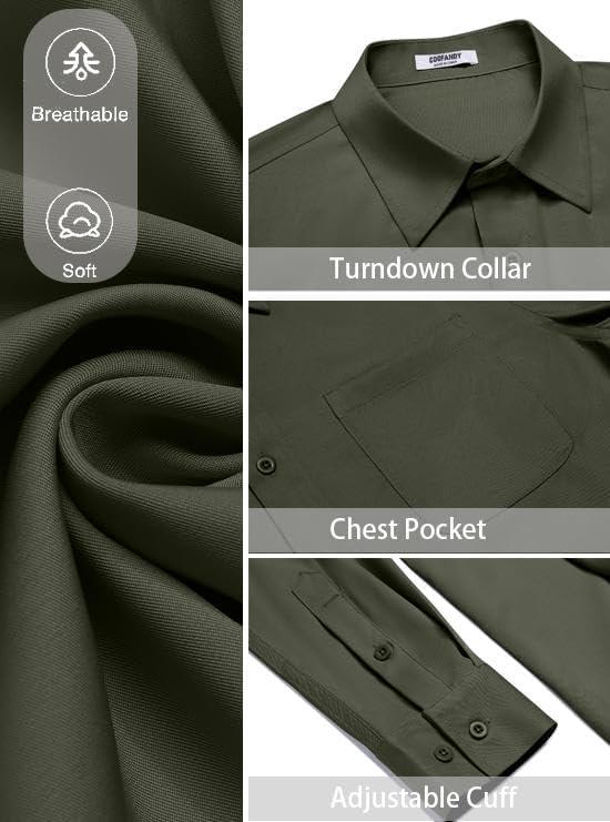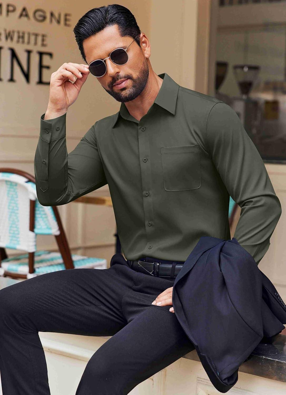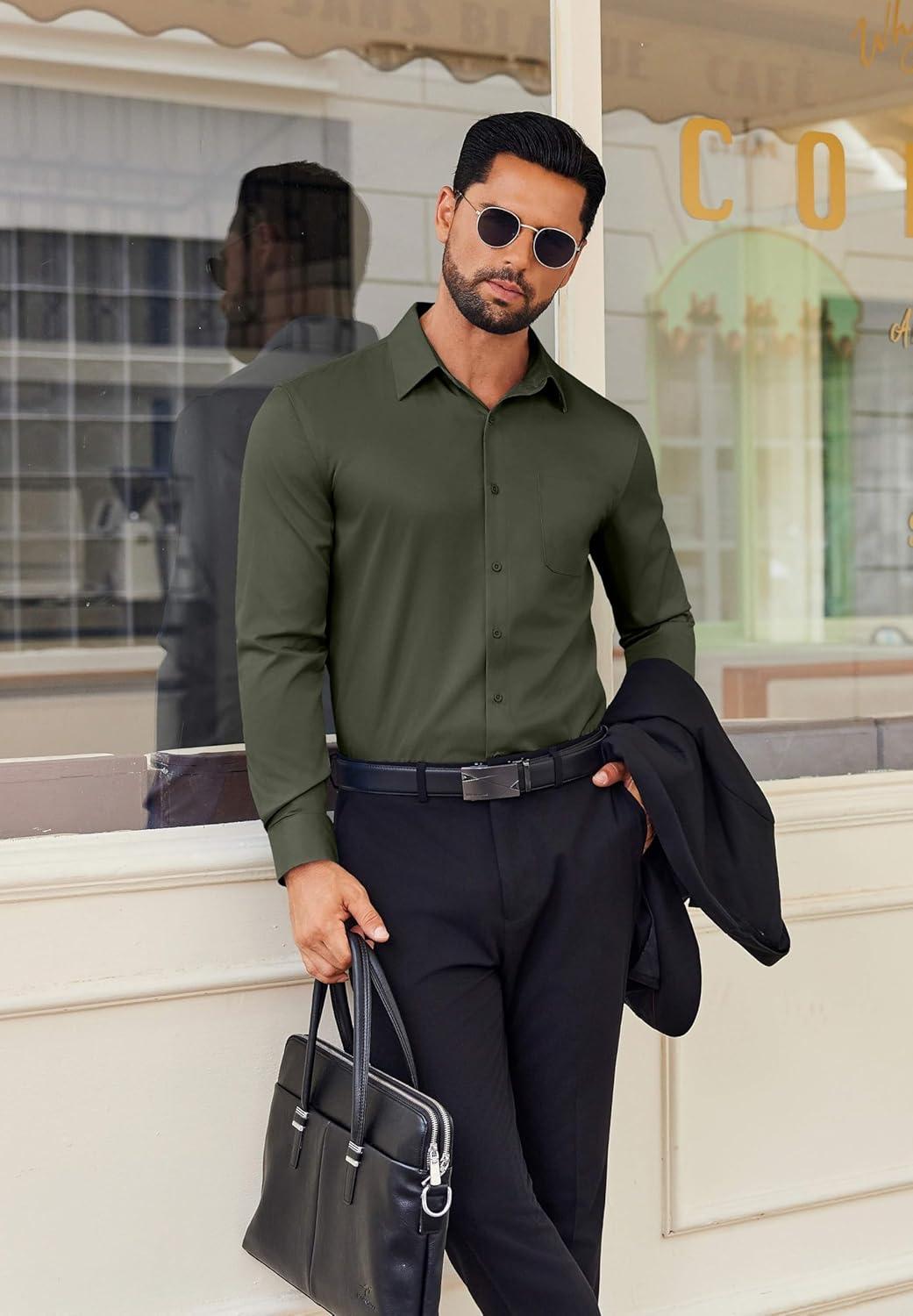 COOFANDY Men’s Dress Shirt Solid Long Sleeve Wrinkle Free Formal Shirt Business Button Down Shirts with Pocket(Olive Green)