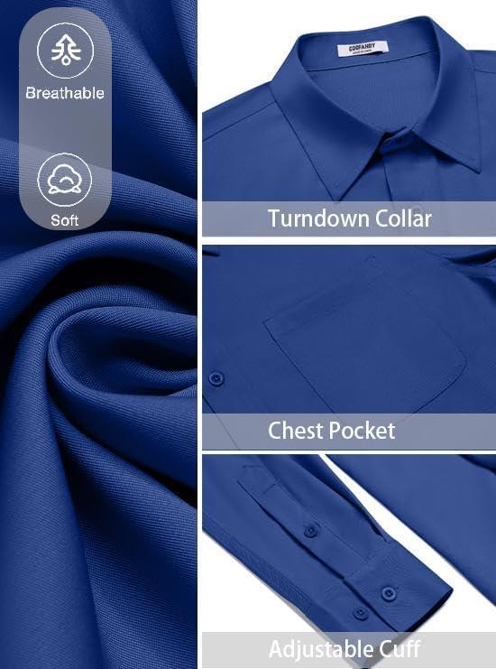 COOFANDY Men’s Dress Shirt Solid Long Sleeve Wrinkle Free Formal Shirt Business Button Down Shirts with Pocket(Sky Blue)