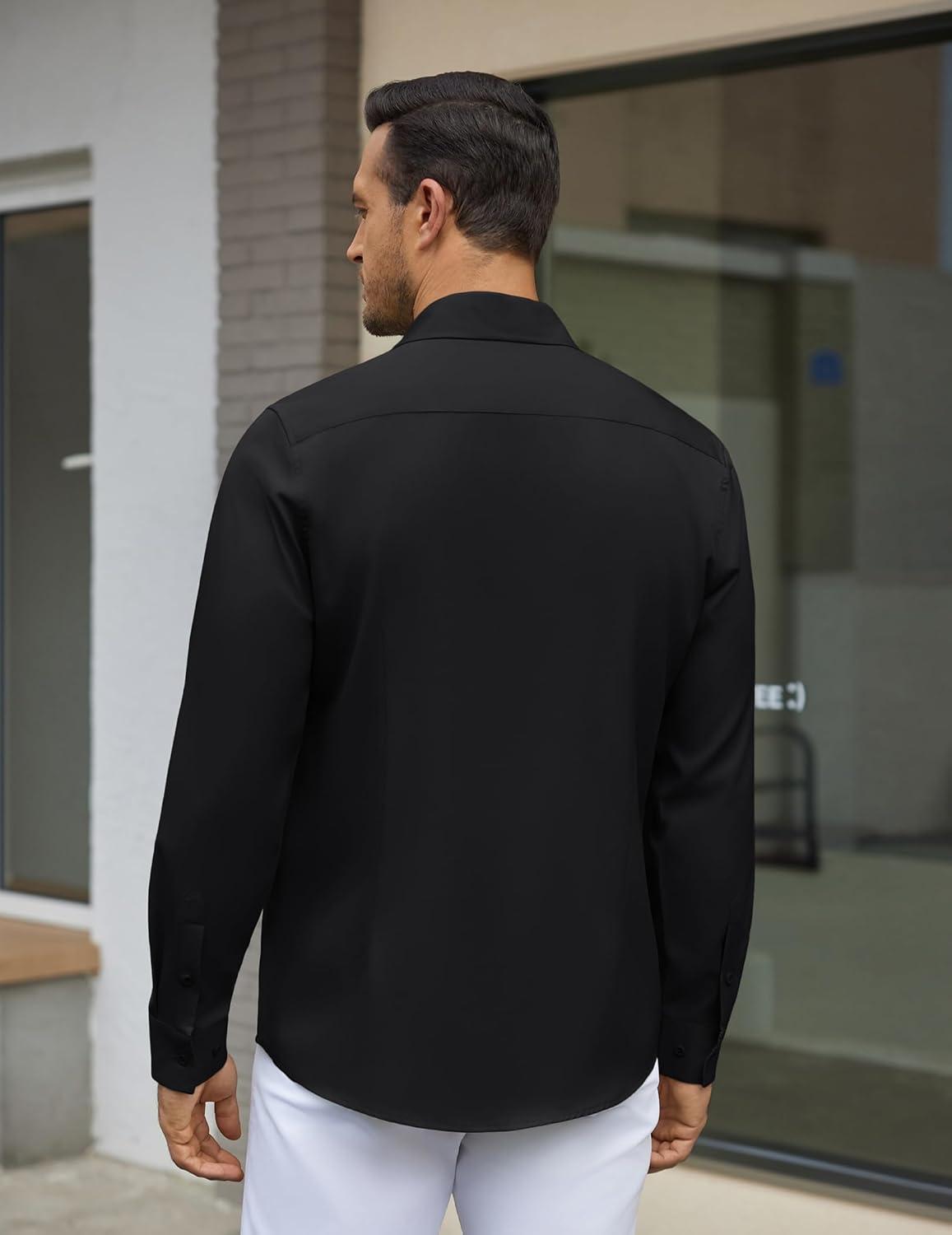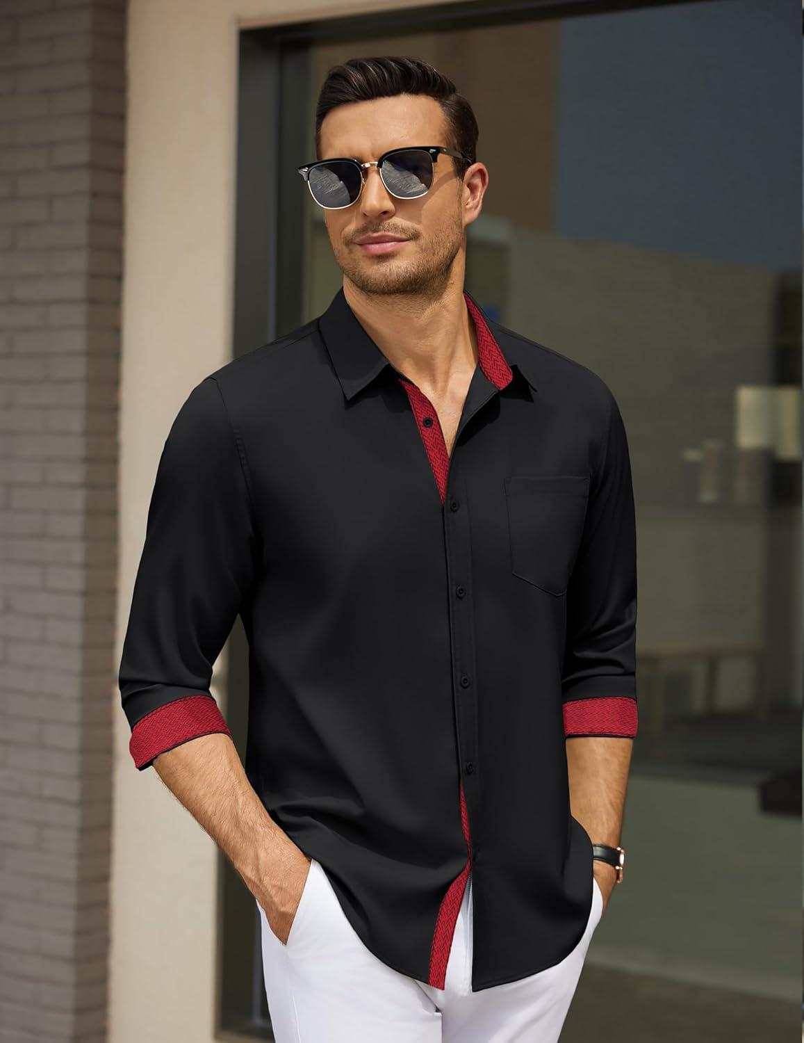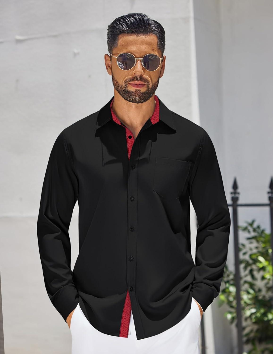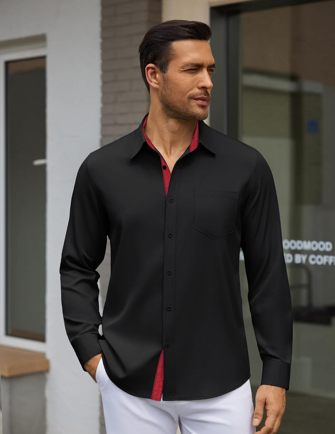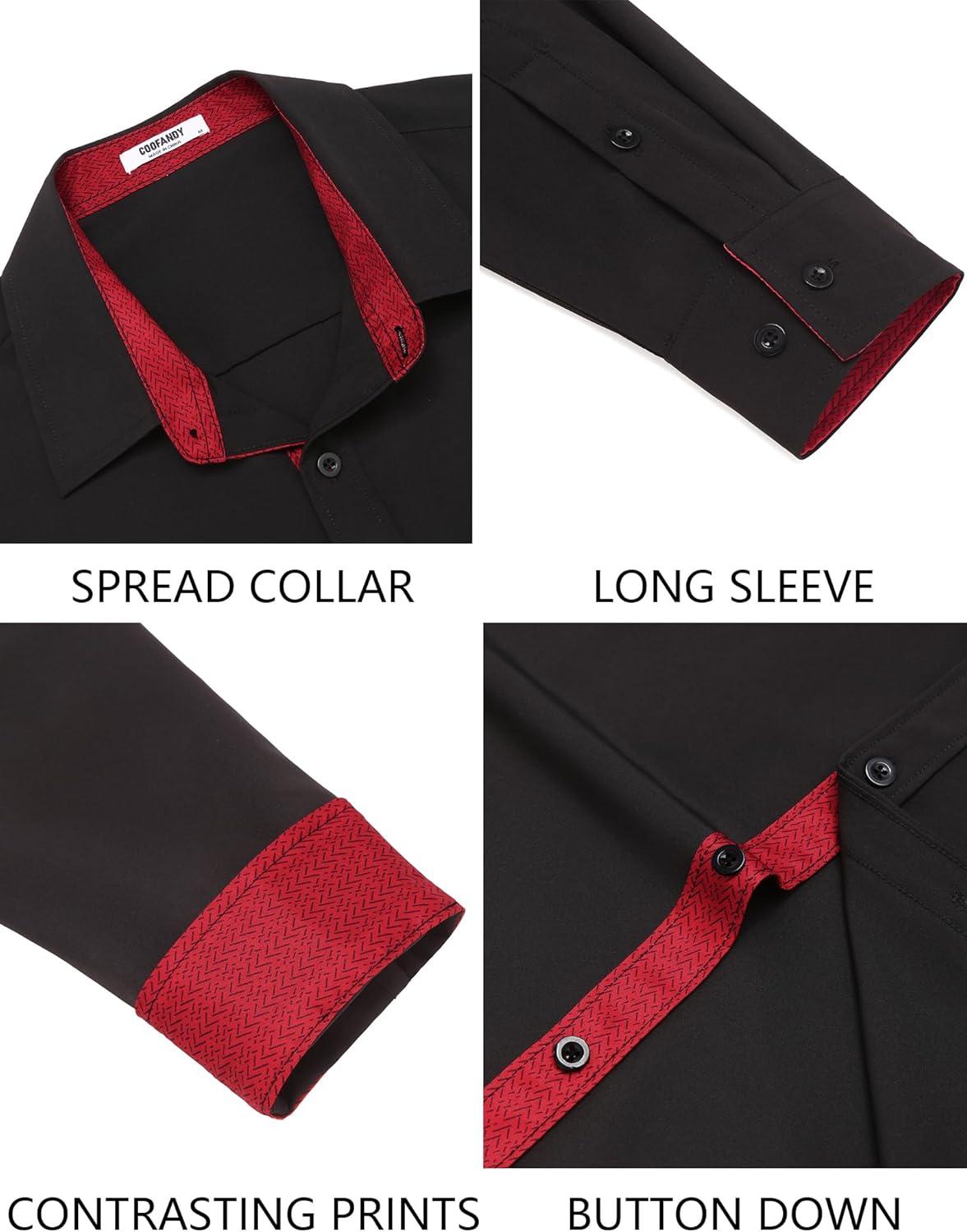 COOFANDY Men’s Dress Shirt Wrinkle Free Regular Fit Stretch Long Sleeve Button Down Shirts(Black / Red)