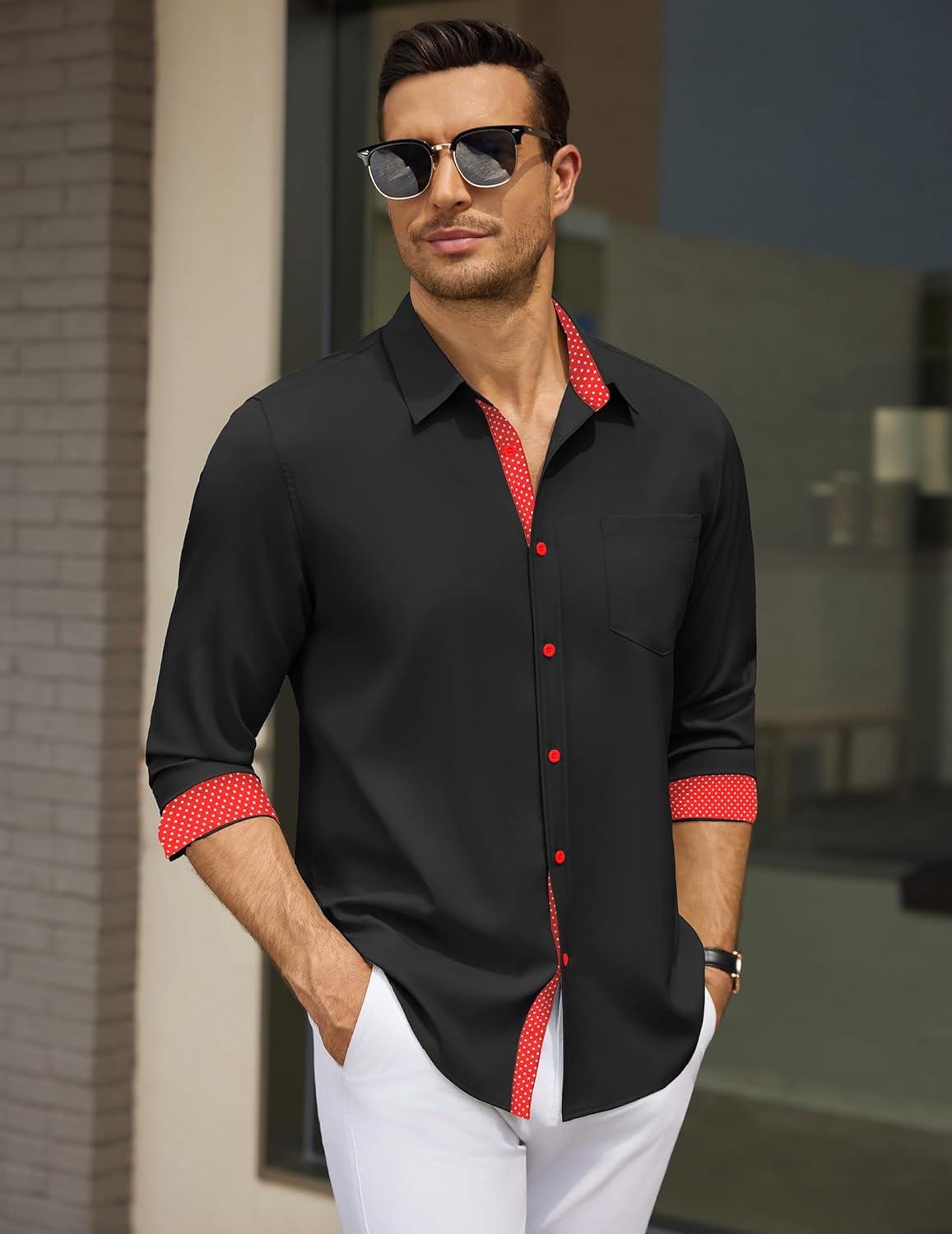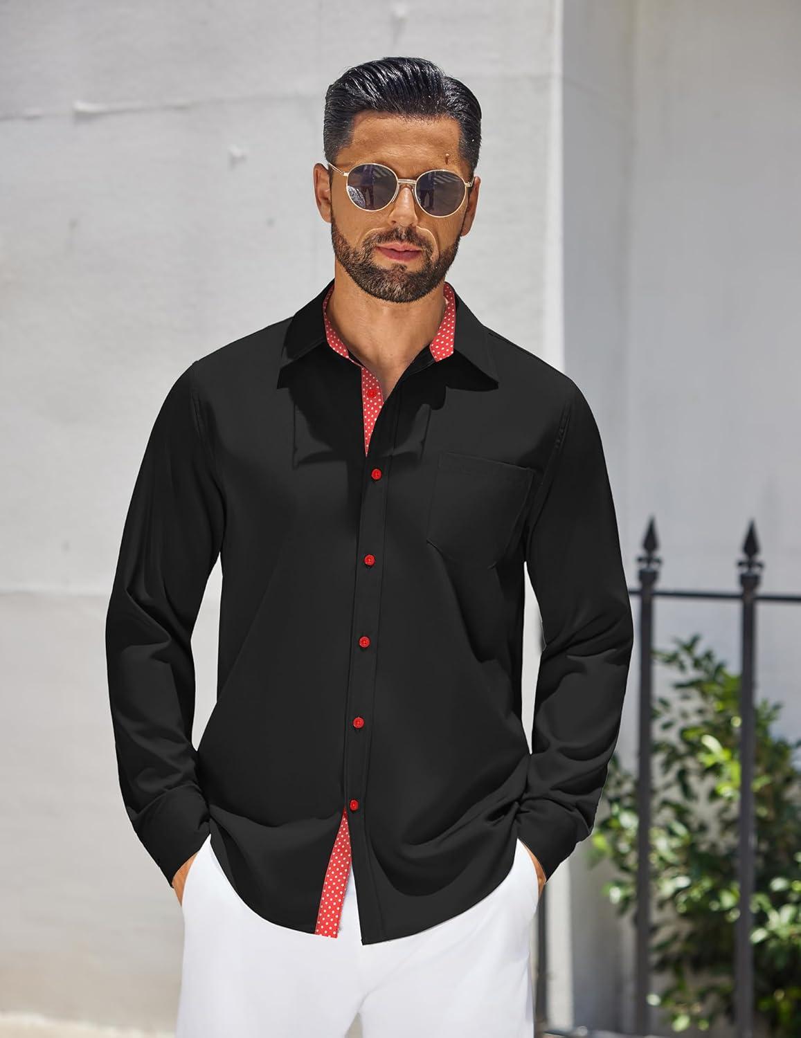 COOFANDY Men’s Dress Shirt Wrinkle Free Regular Fit Stretch Long Sleeve Button Down Shirts(Black)