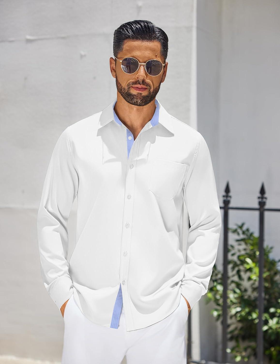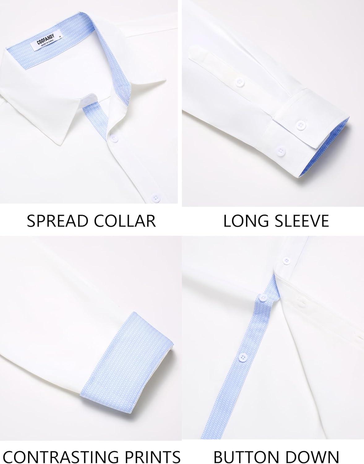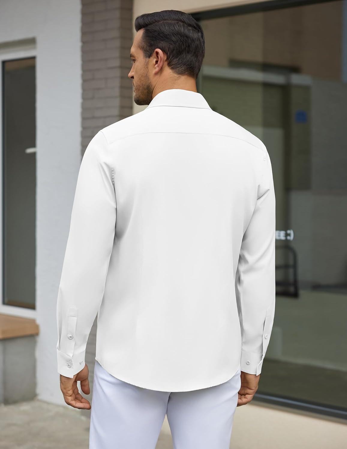 COOFANDY Men’s Dress Shirt Wrinkle Free Regular Fit Stretch Long Sleeve Button Down Shirts(Coconut Milk)