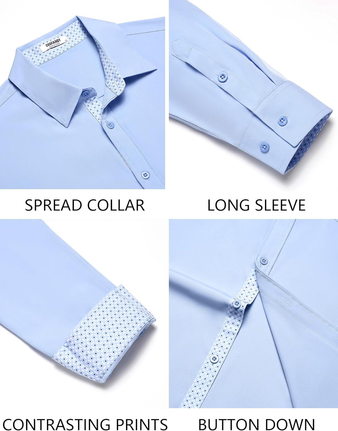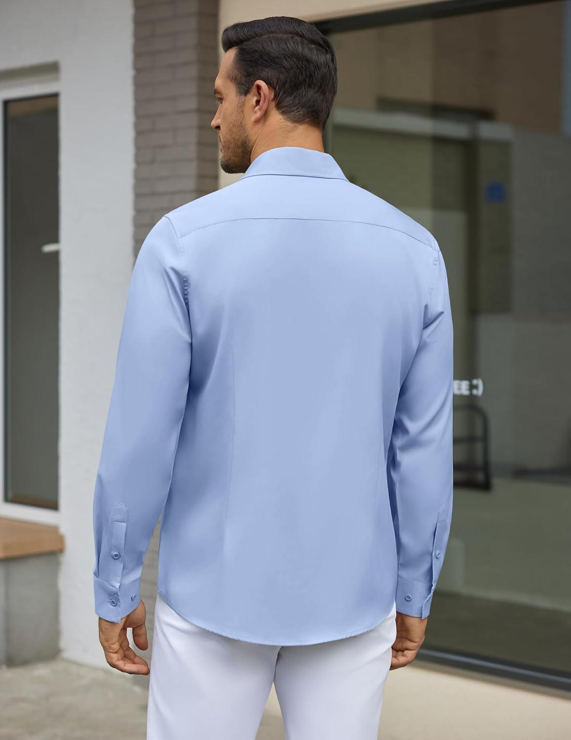 COOFANDY Men’s Dress Shirt Wrinkle Free Regular Fit Stretch Long Sleeve Button Down Shirts(Light Blue)