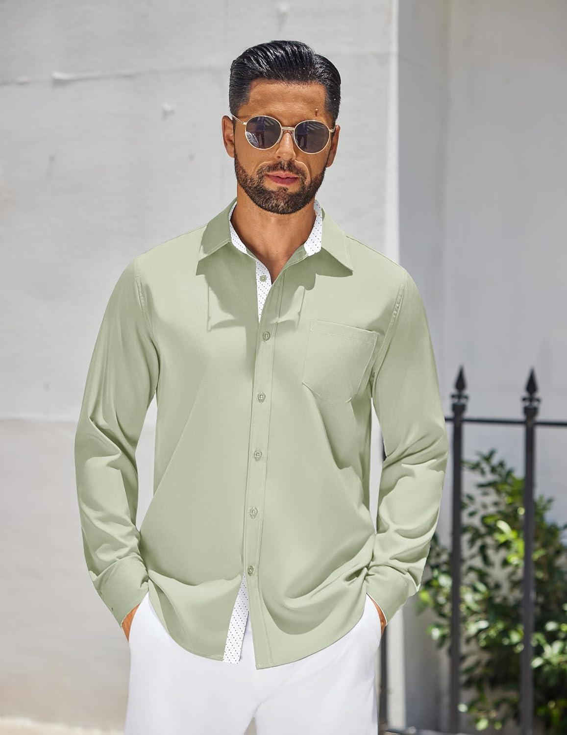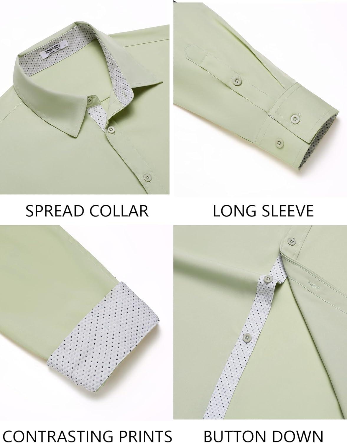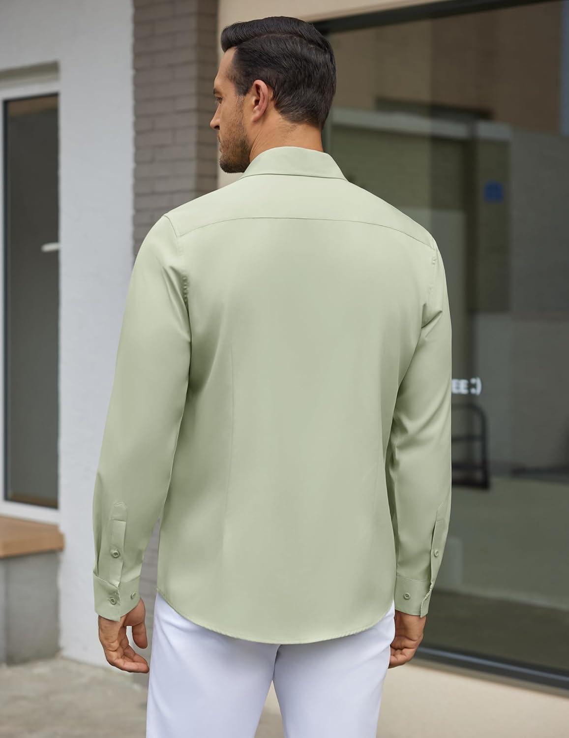 COOFANDY Men’s Dress Shirt Wrinkle Free Regular Fit Stretch Long Sleeve Button Down Shirts(Light Green)