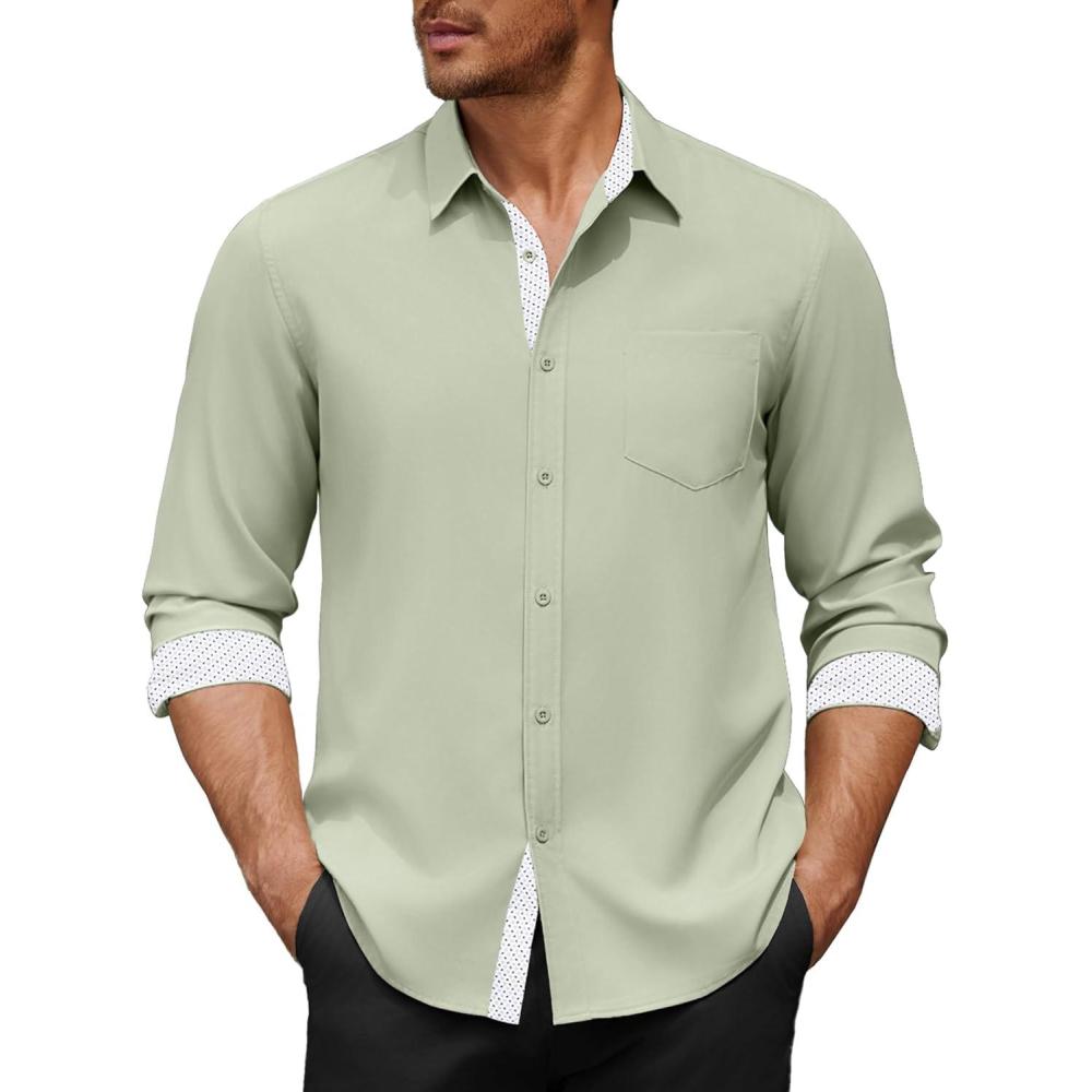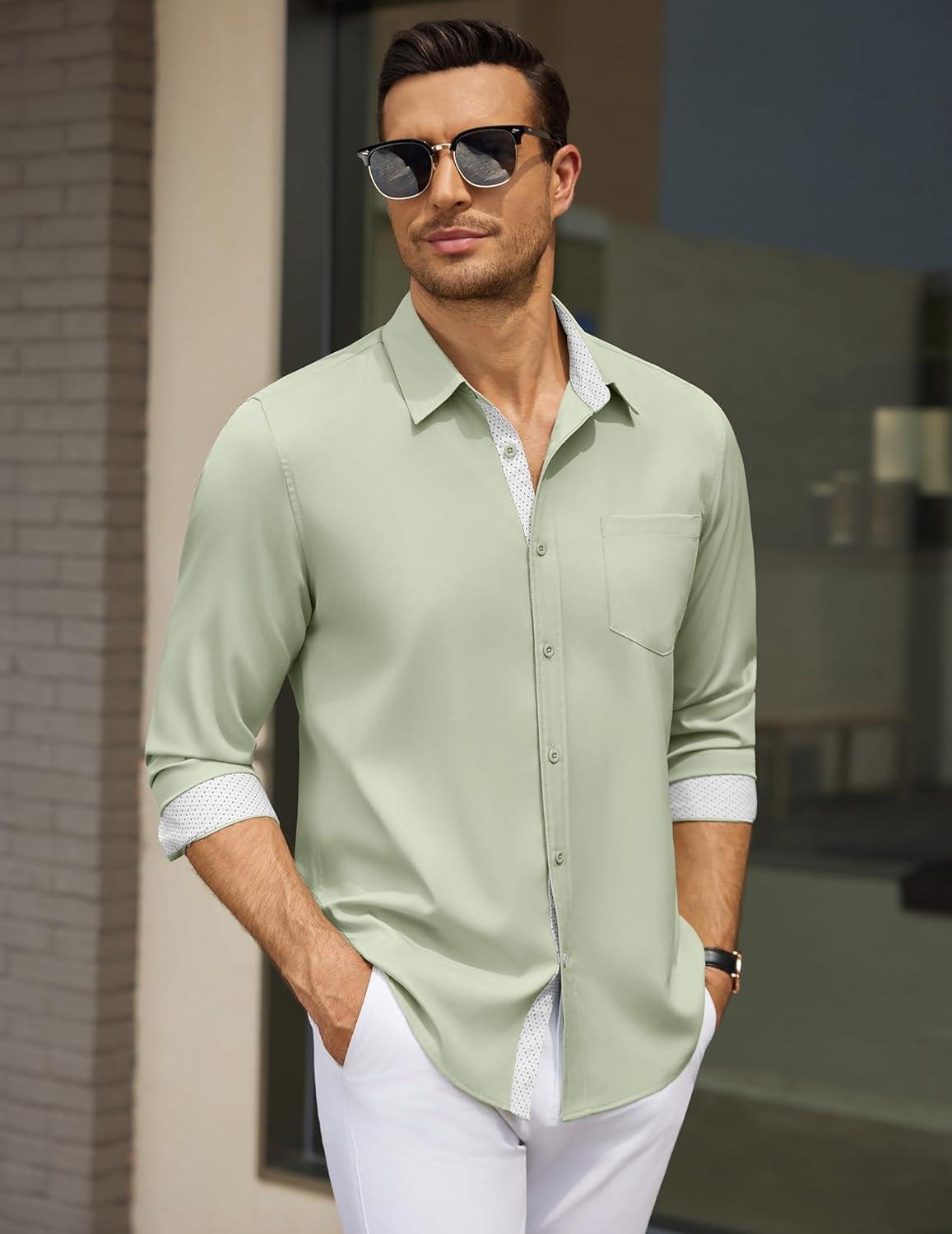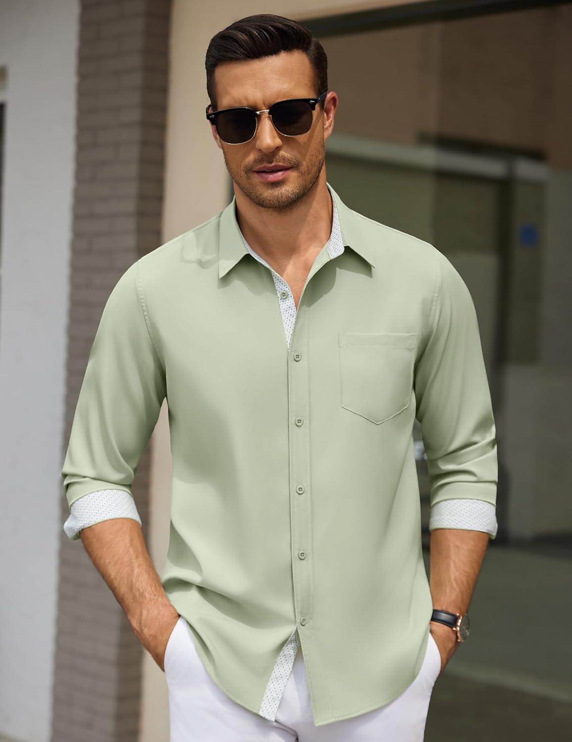 COOFANDY Men’s Dress Shirt Wrinkle Free Regular Fit Stretch Long Sleeve Button Down Shirts(Light Green)