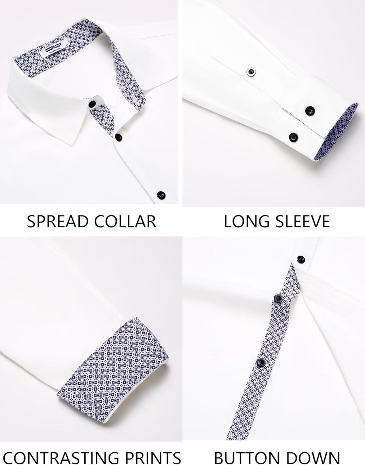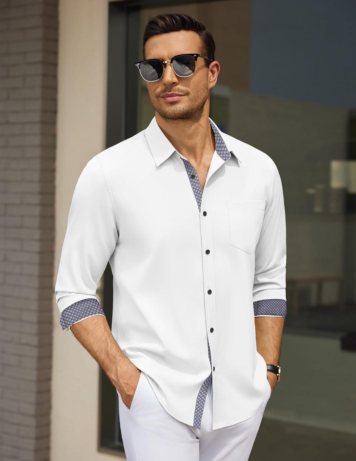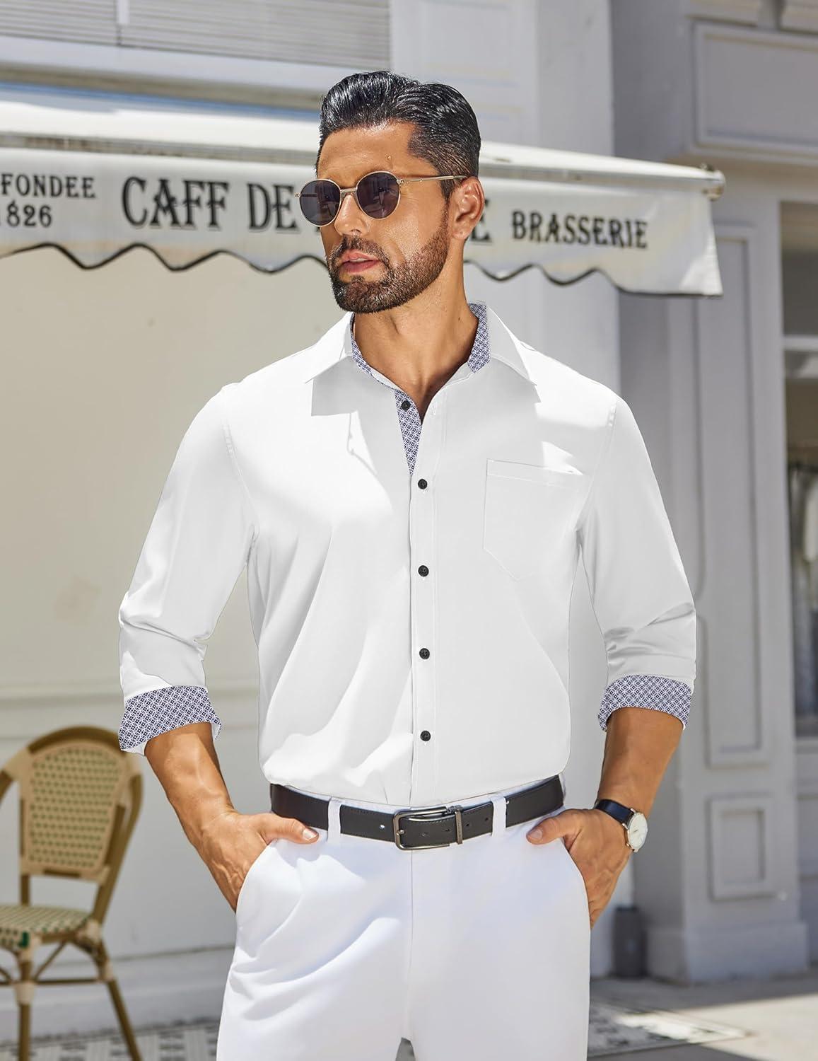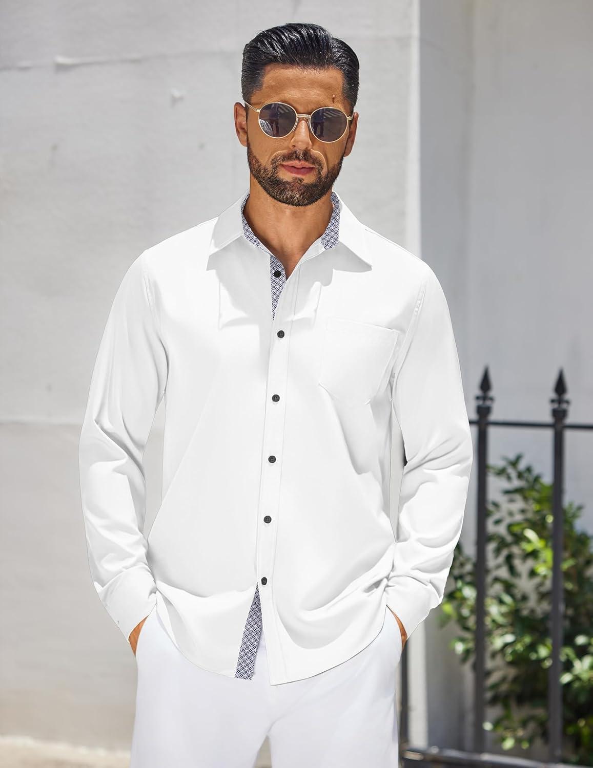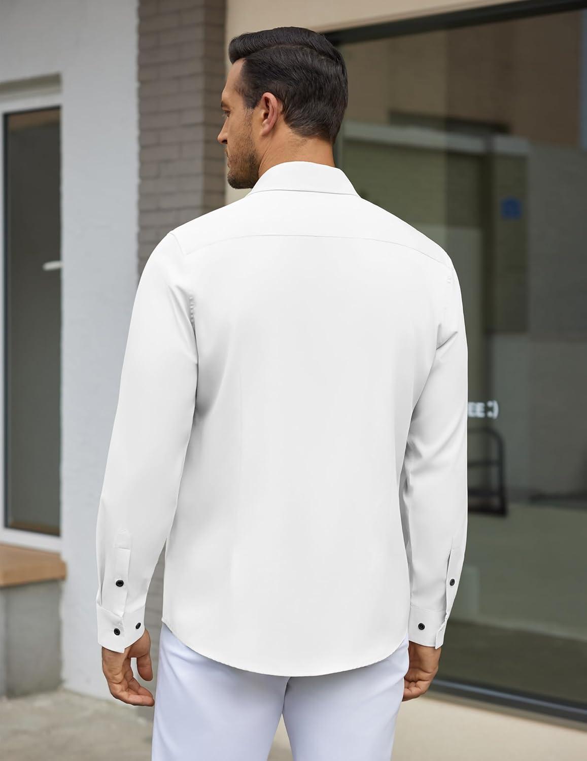COOFANDY Men’s Dress Shirt Wrinkle Free Regular Fit Stretch Long Sleeve Button Down Shirts(White)