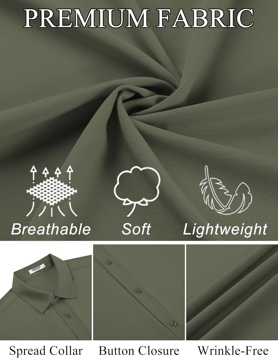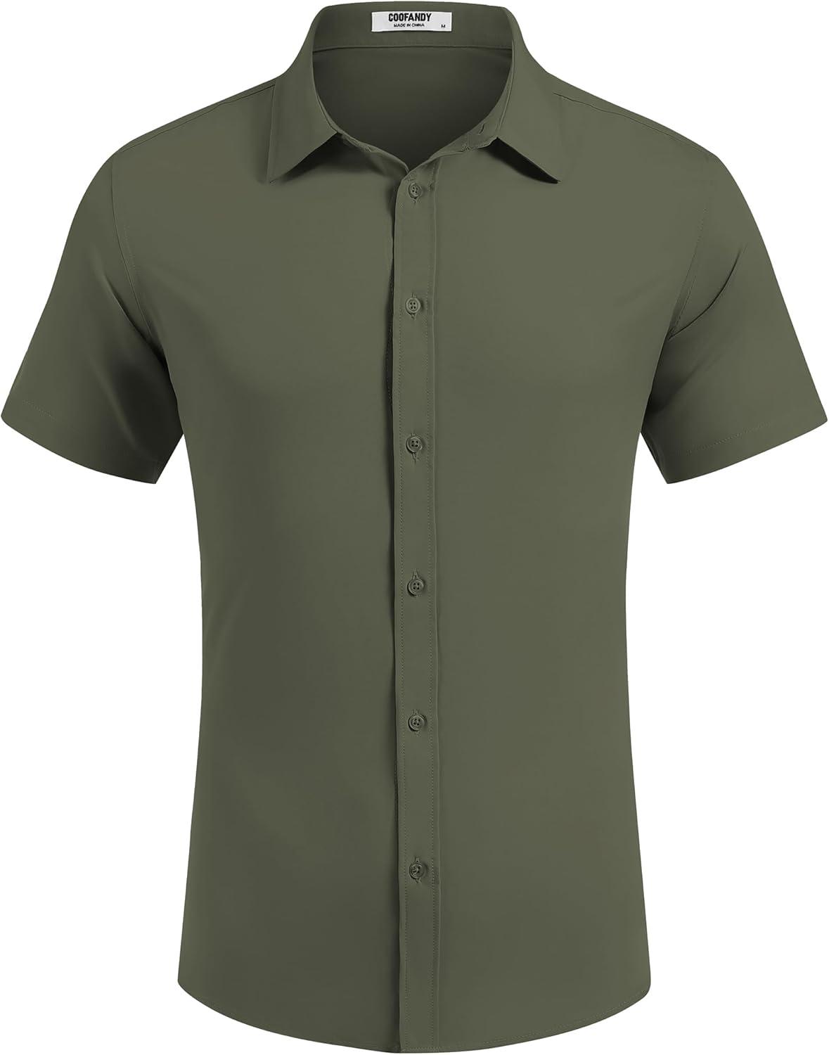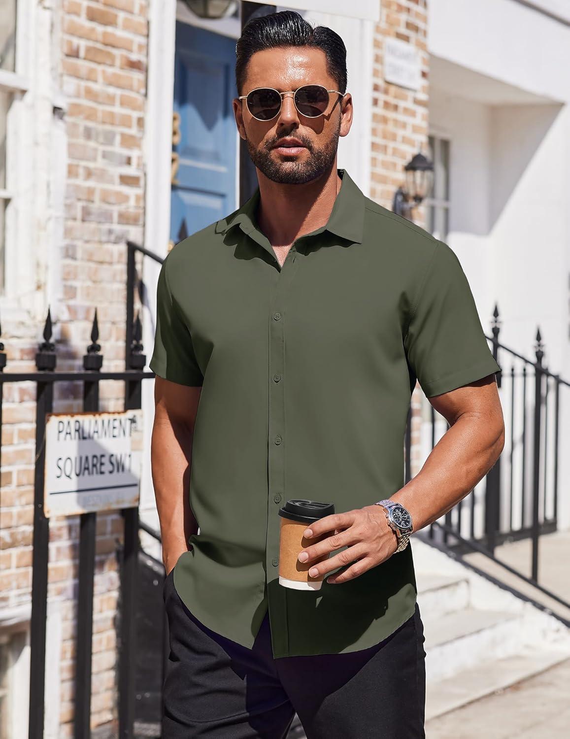 COOFANDY Mens Dress Shirts Button Down Short Sleeve Shirt Summer Shirts Business Casual Wedding Shirt(Army Green)