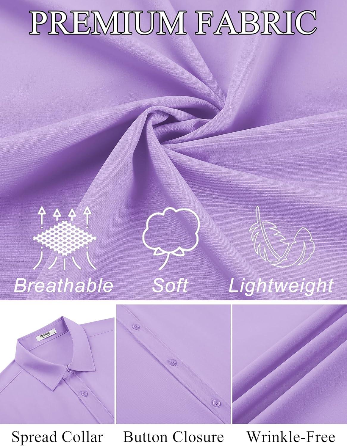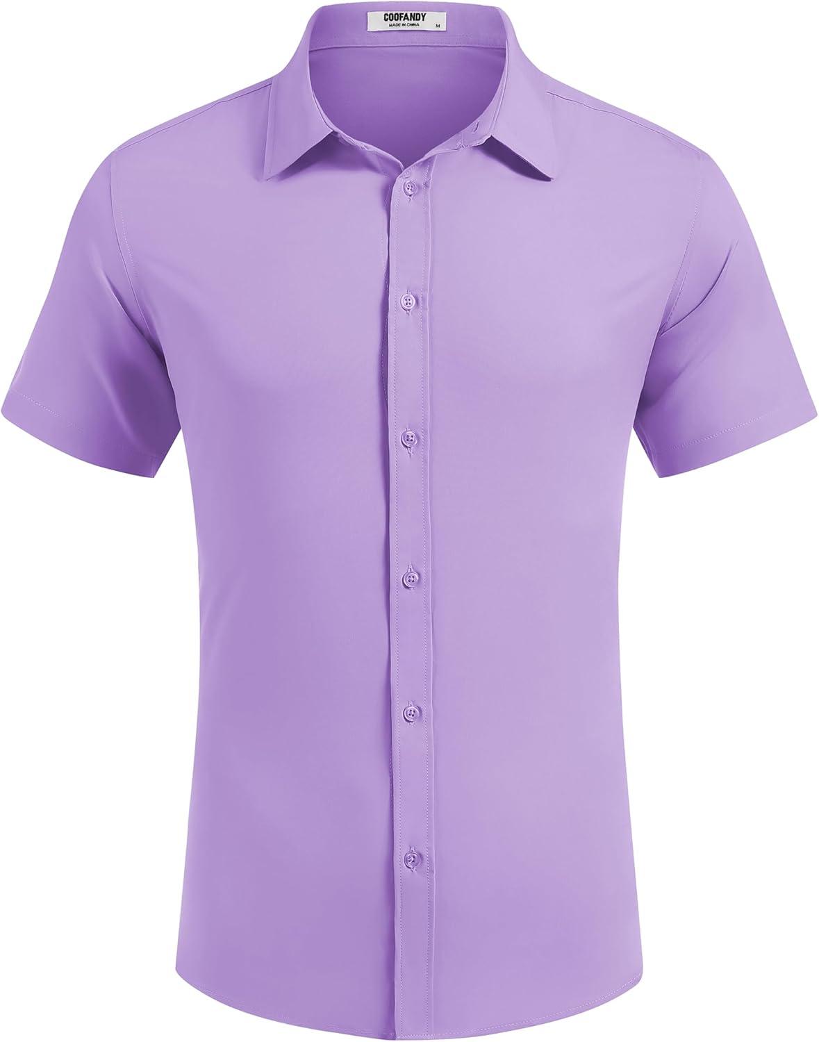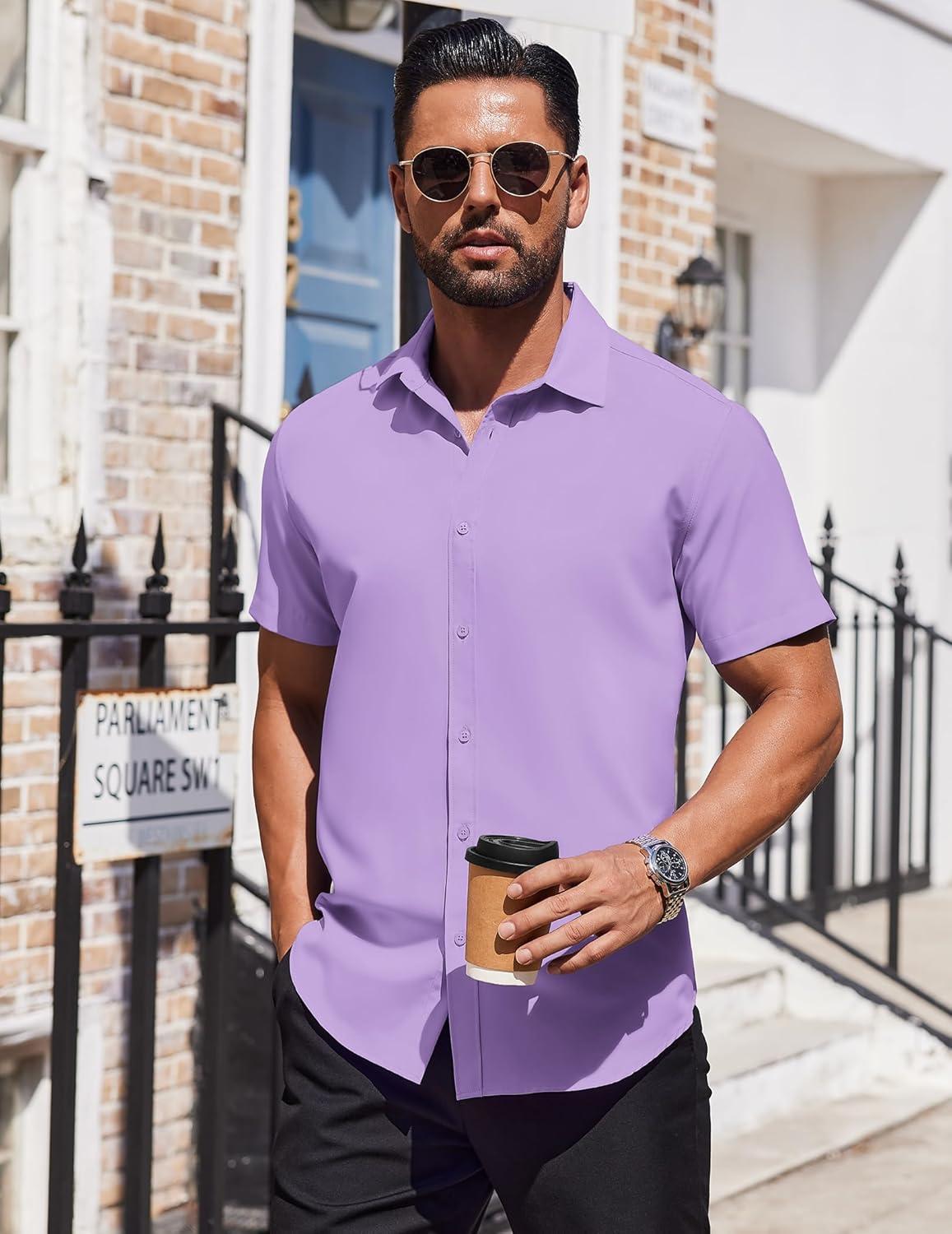 COOFANDY Mens Dress Shirts Button Down Short Sleeve Shirt Summer Shirts Business Casual Wedding Shirt(Light Purple)