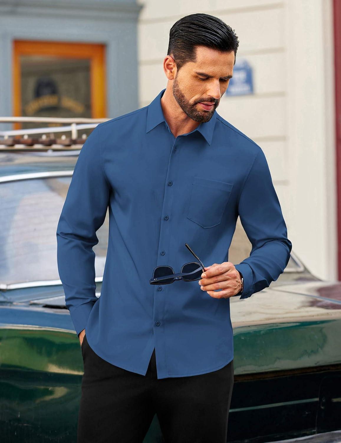 COOFANDY Mens Dress Shirts Long Sleeve Business Casual Button Down Shirts Regular Fit Formal Shirts(Navy Blue)