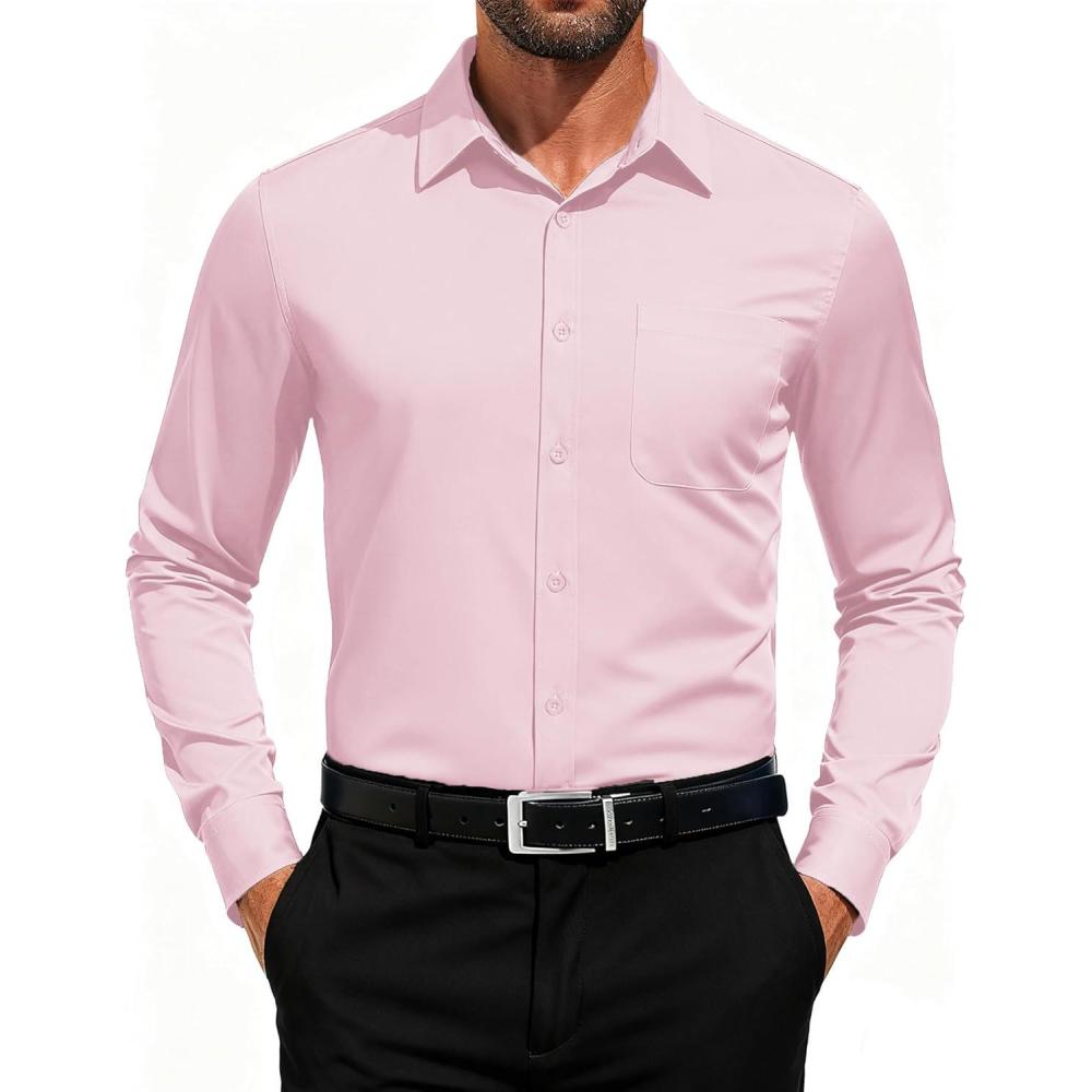 COOFANDY Men’s Dress Shirts Long Sleeve Button Down Formal Shirt Regular Fit Solid Business Casual Shirts(Pink)