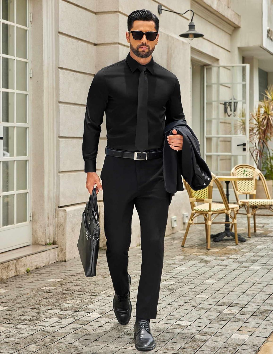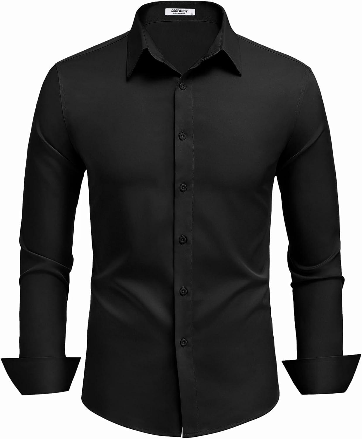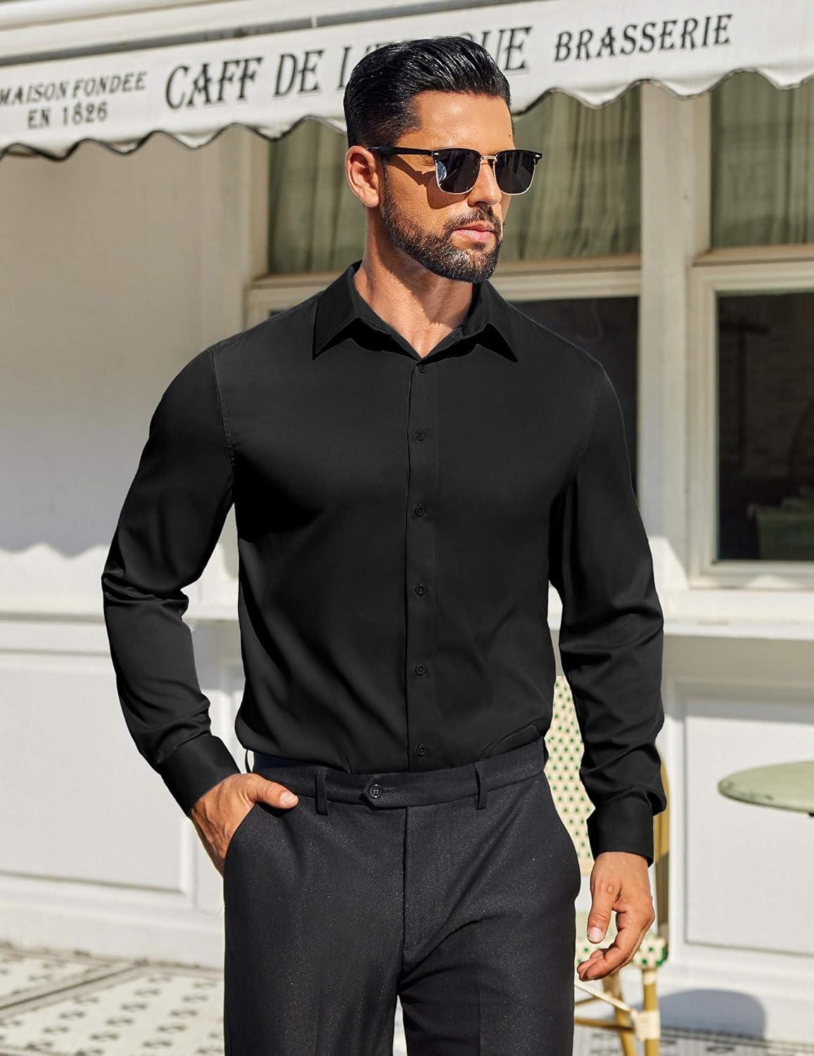 COOFANDY Mens Dress Shirts Long Sleeve Button Down Shirts Regular Fit Business Casual Shirts(Black)