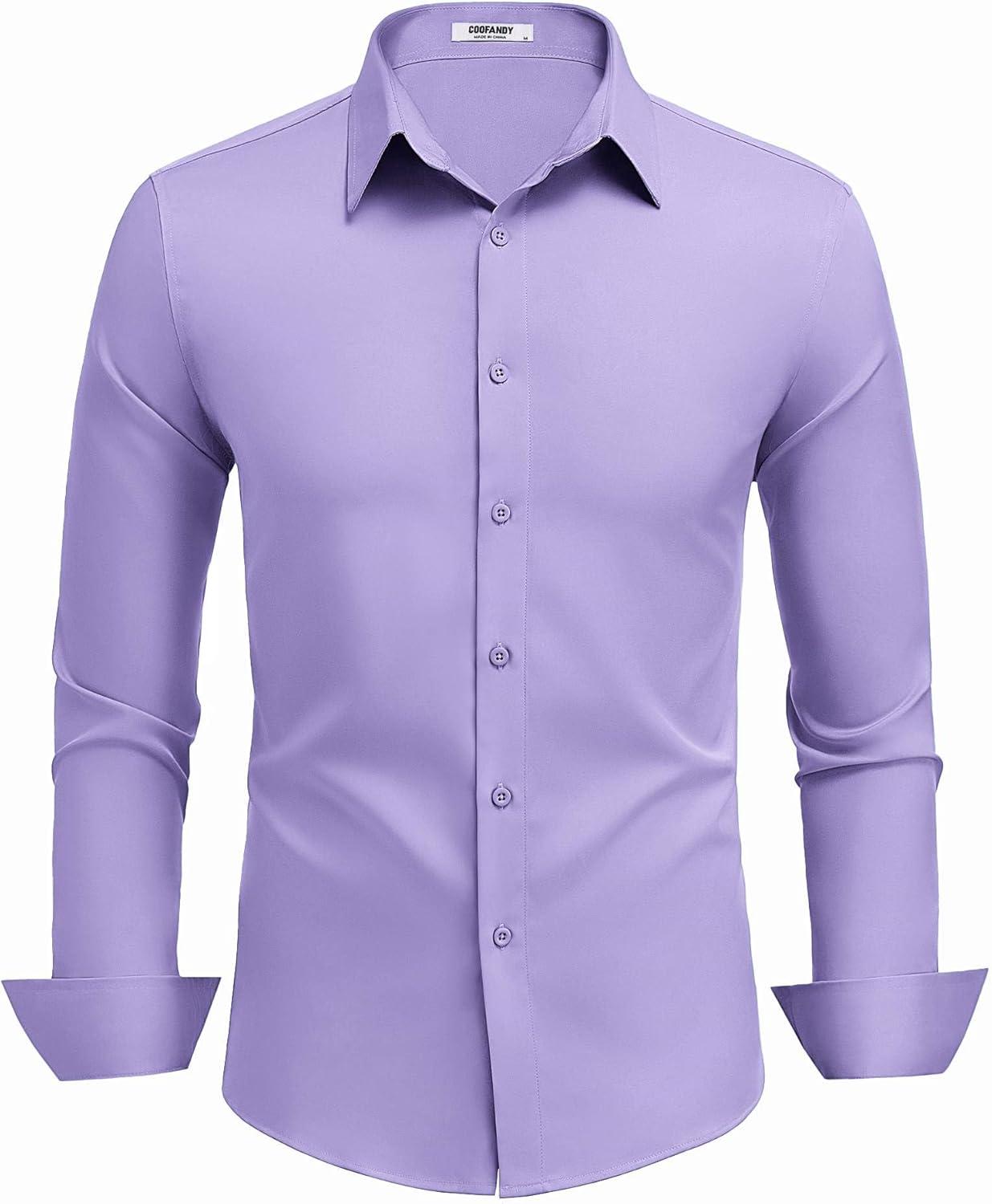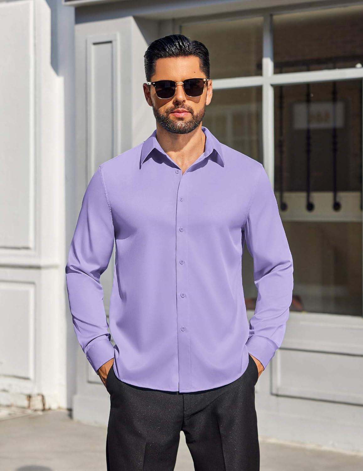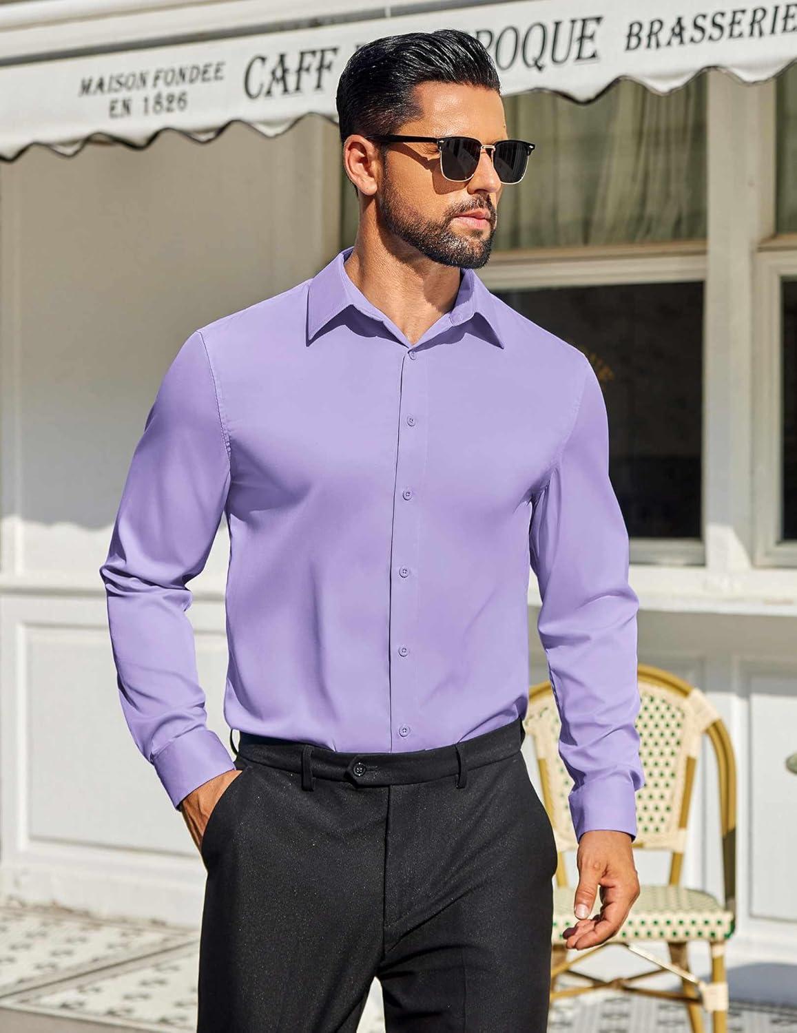 COOFANDY Mens Dress Shirts Long Sleeve Button Down Shirts Regular Fit Business Casual Shirts(Lavender)