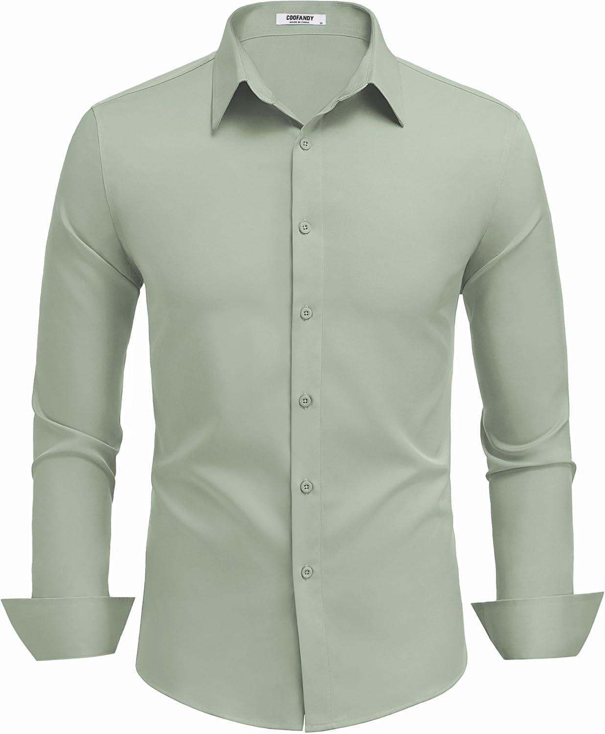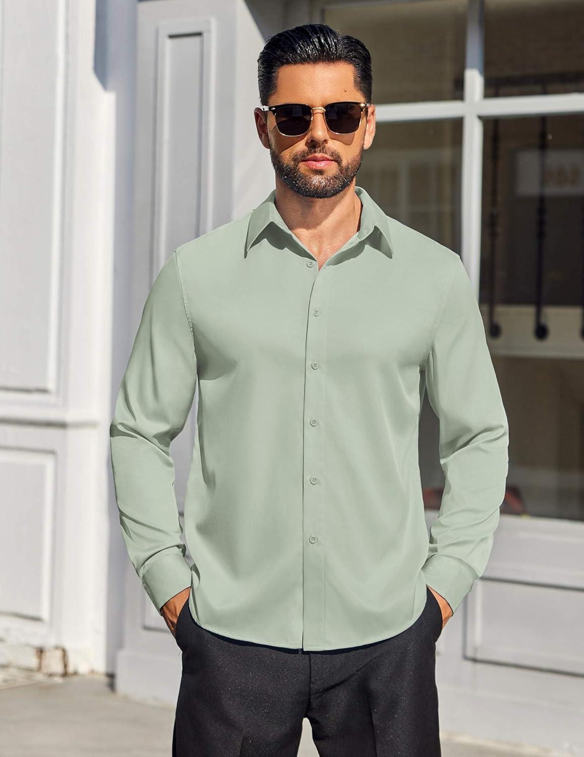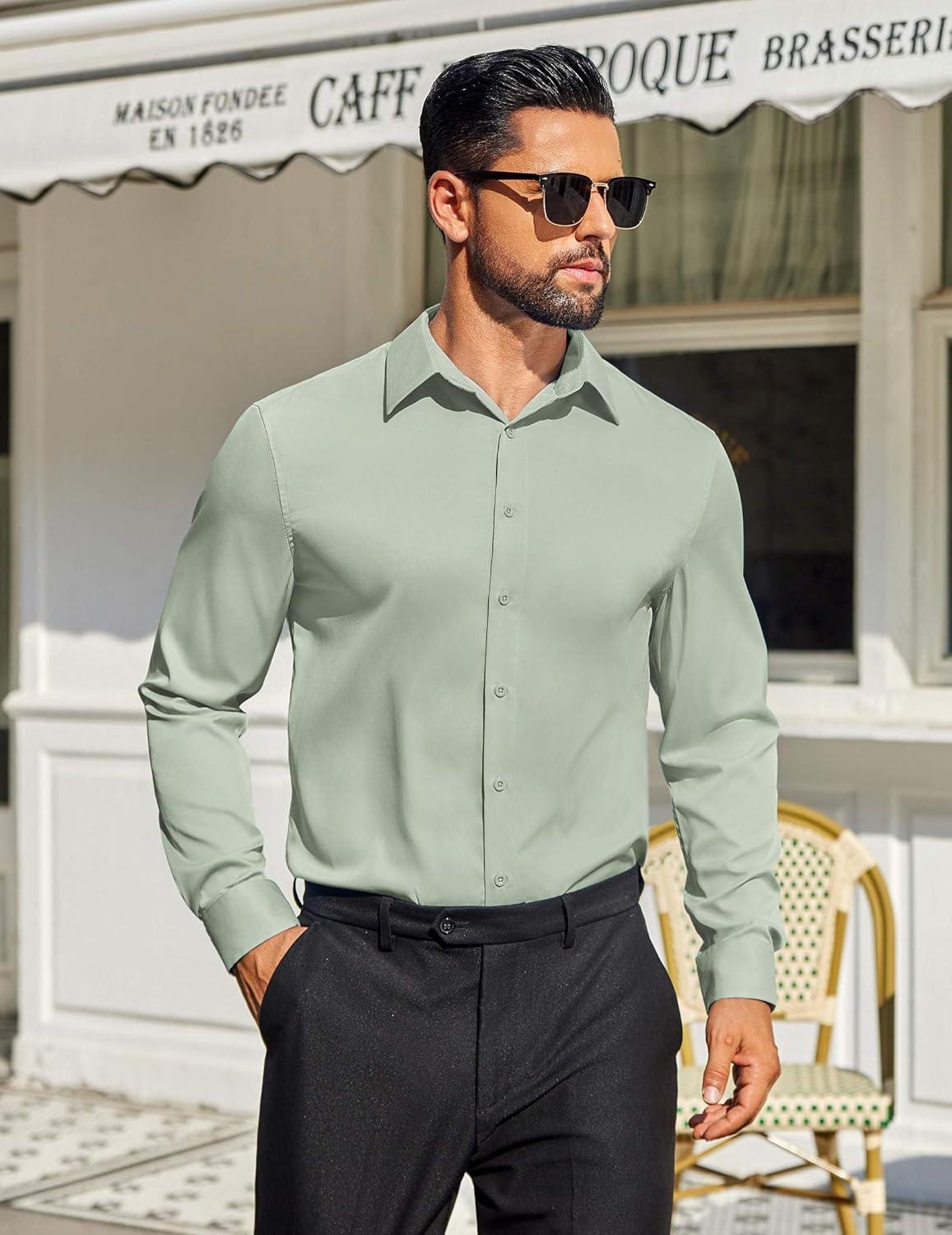 COOFANDY Mens Dress Shirts Long Sleeve Button Down Shirts Regular Fit Business Casual Shirts(Light Green)