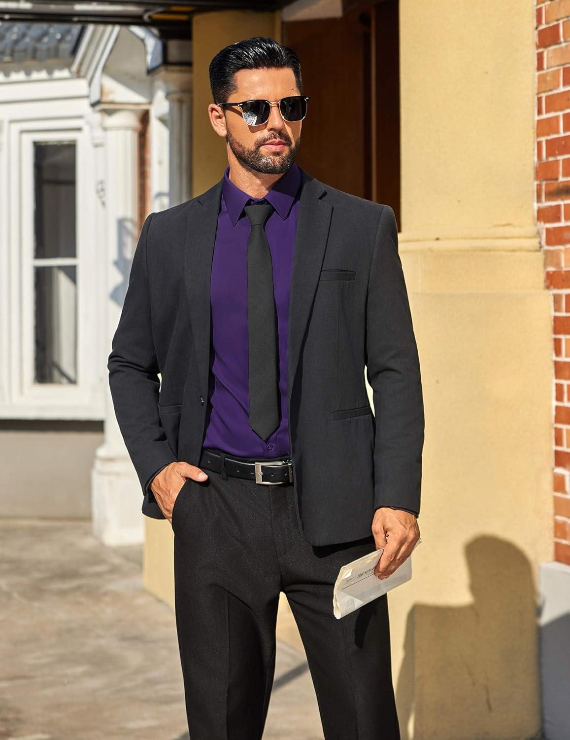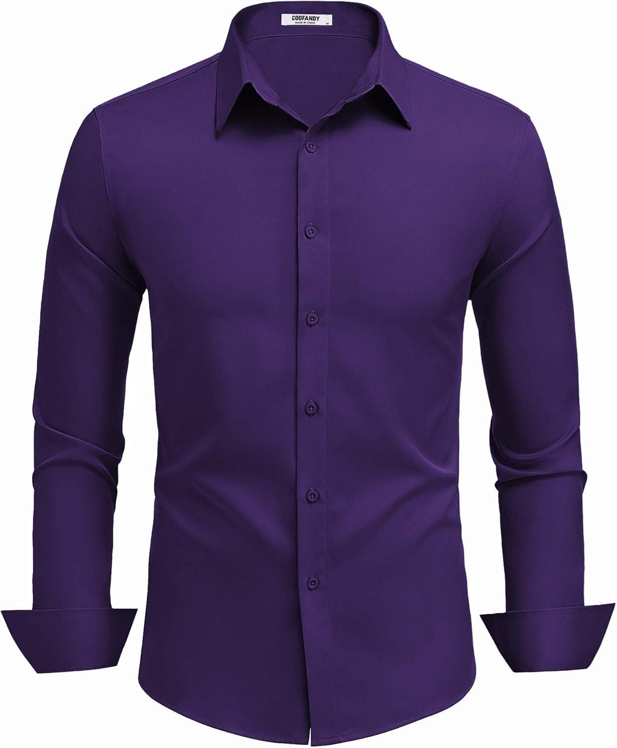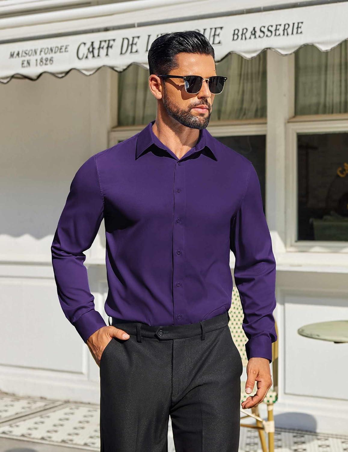 COOFANDY Mens Dress Shirts Long Sleeve Button Down Shirts Regular Fit Business Casual Shirts(Purple)