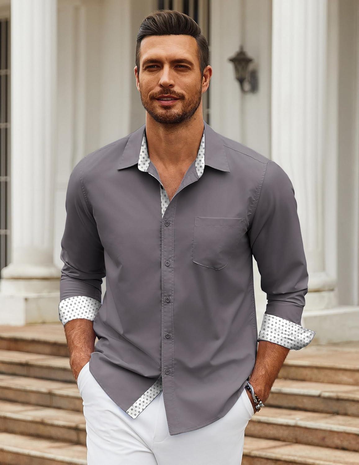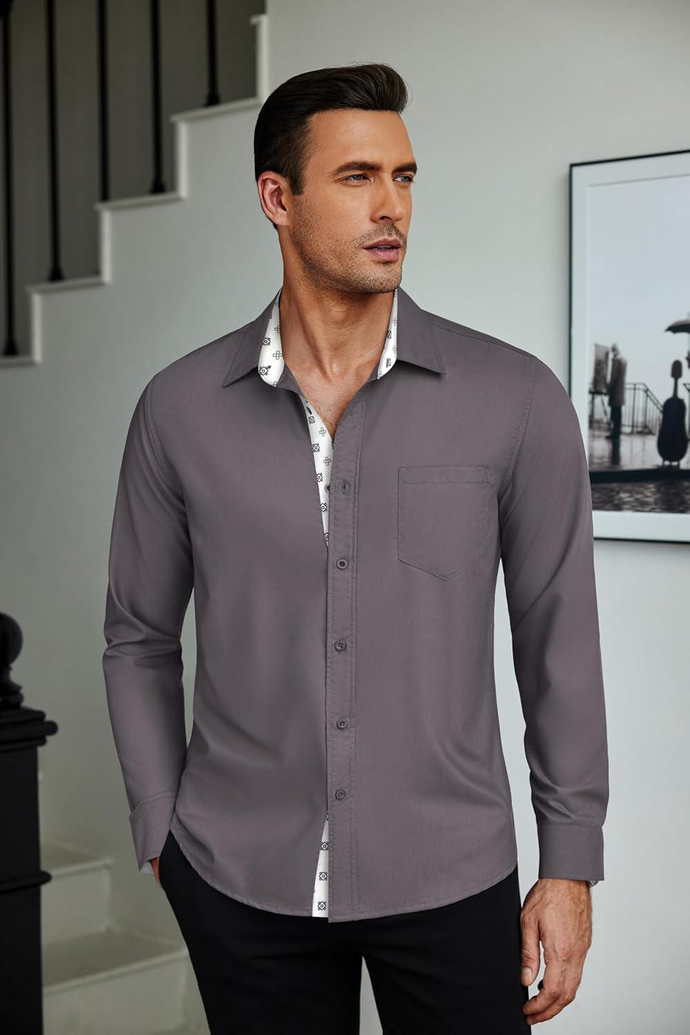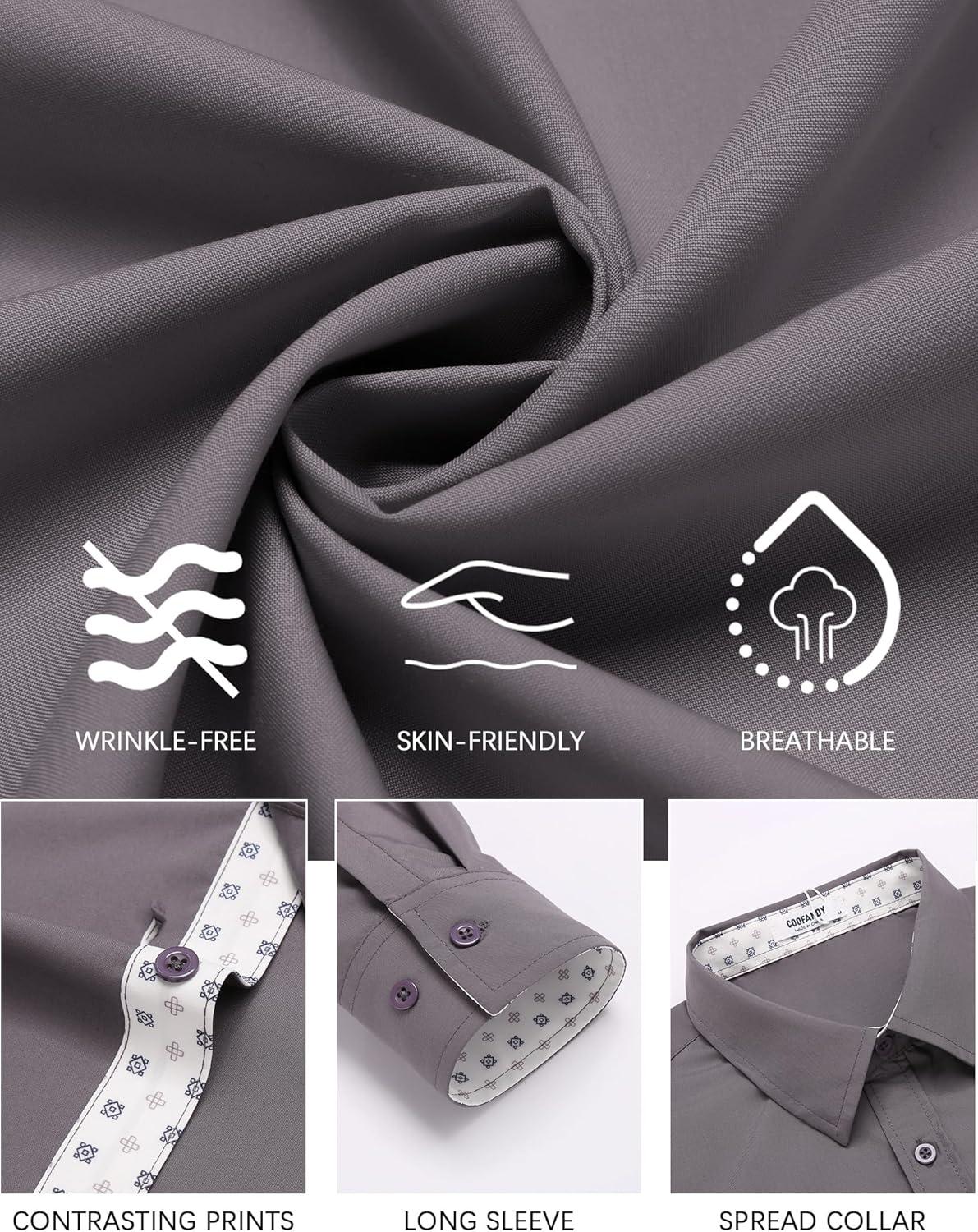 COOFANDY Mens Dress Shirts Long Sleeve Button Down Shirts Untucked Wrinkle-Free Business Casual Shirts(Dark Grey)