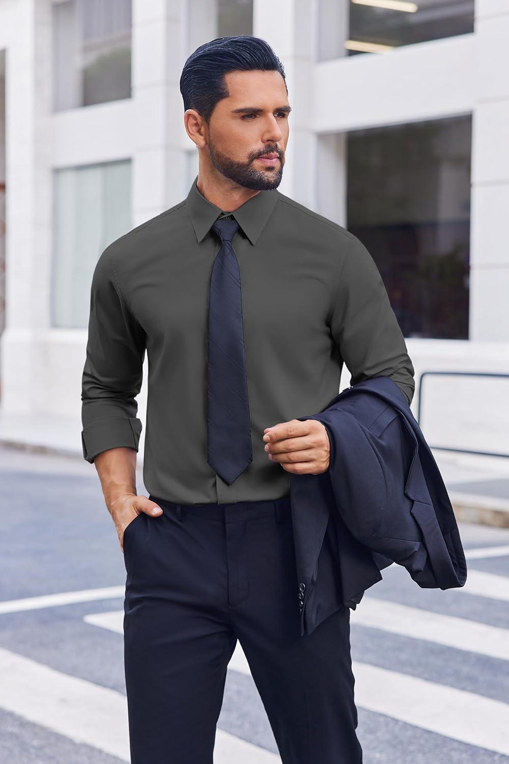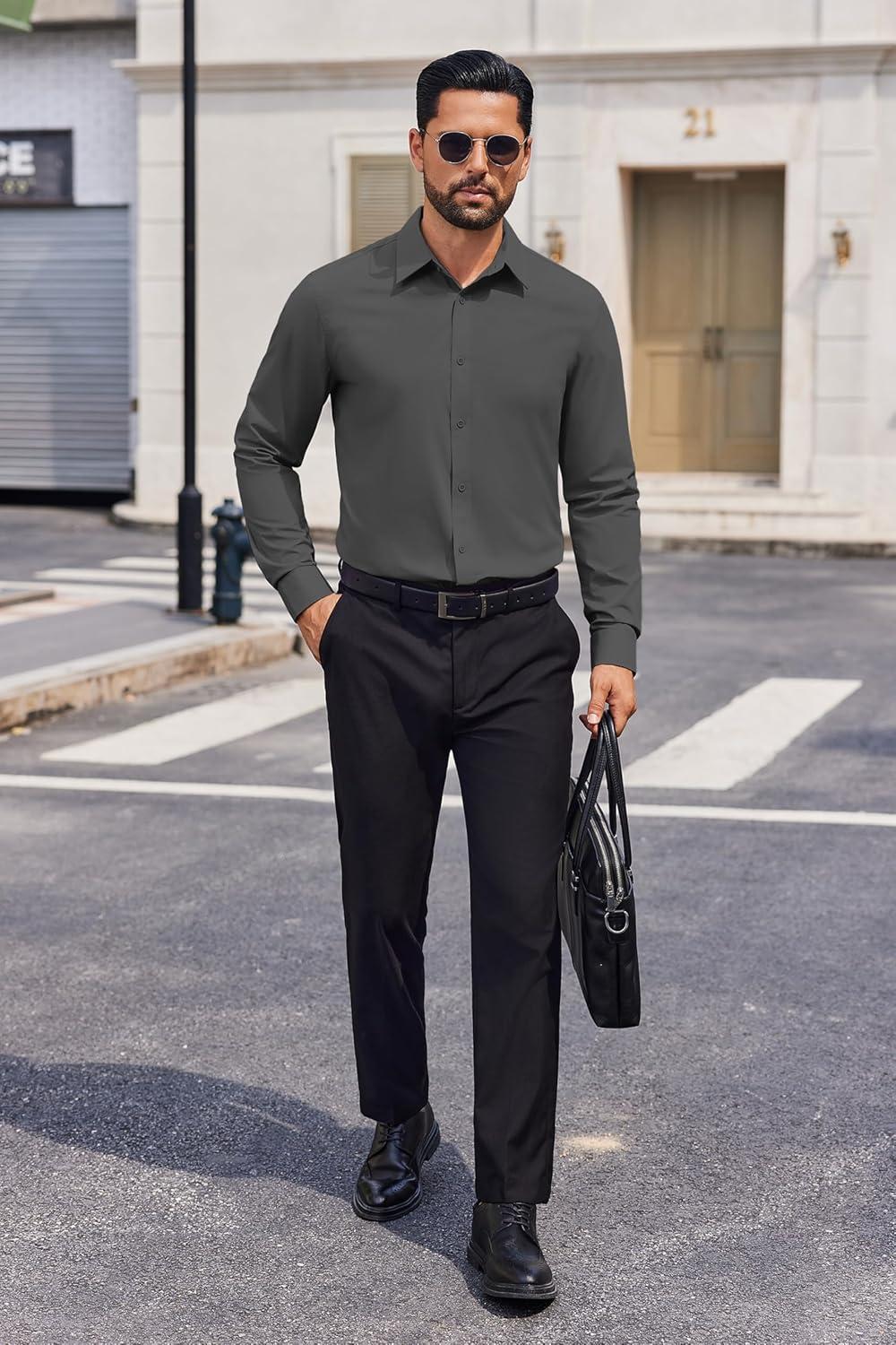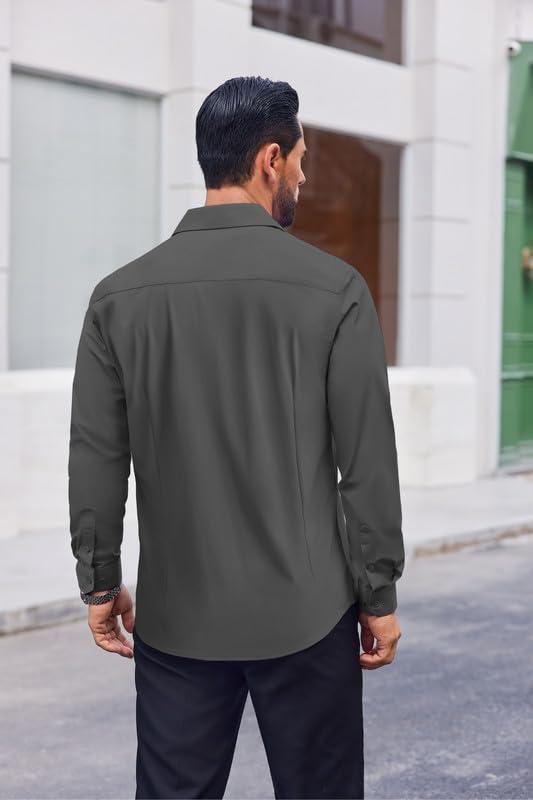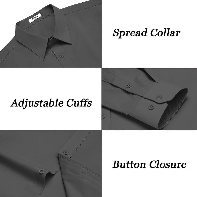 COOFANDY Mens Dress Shirts Long Sleeve Casual Button Down Shirts Formal Business Shirt(Dark Grey)