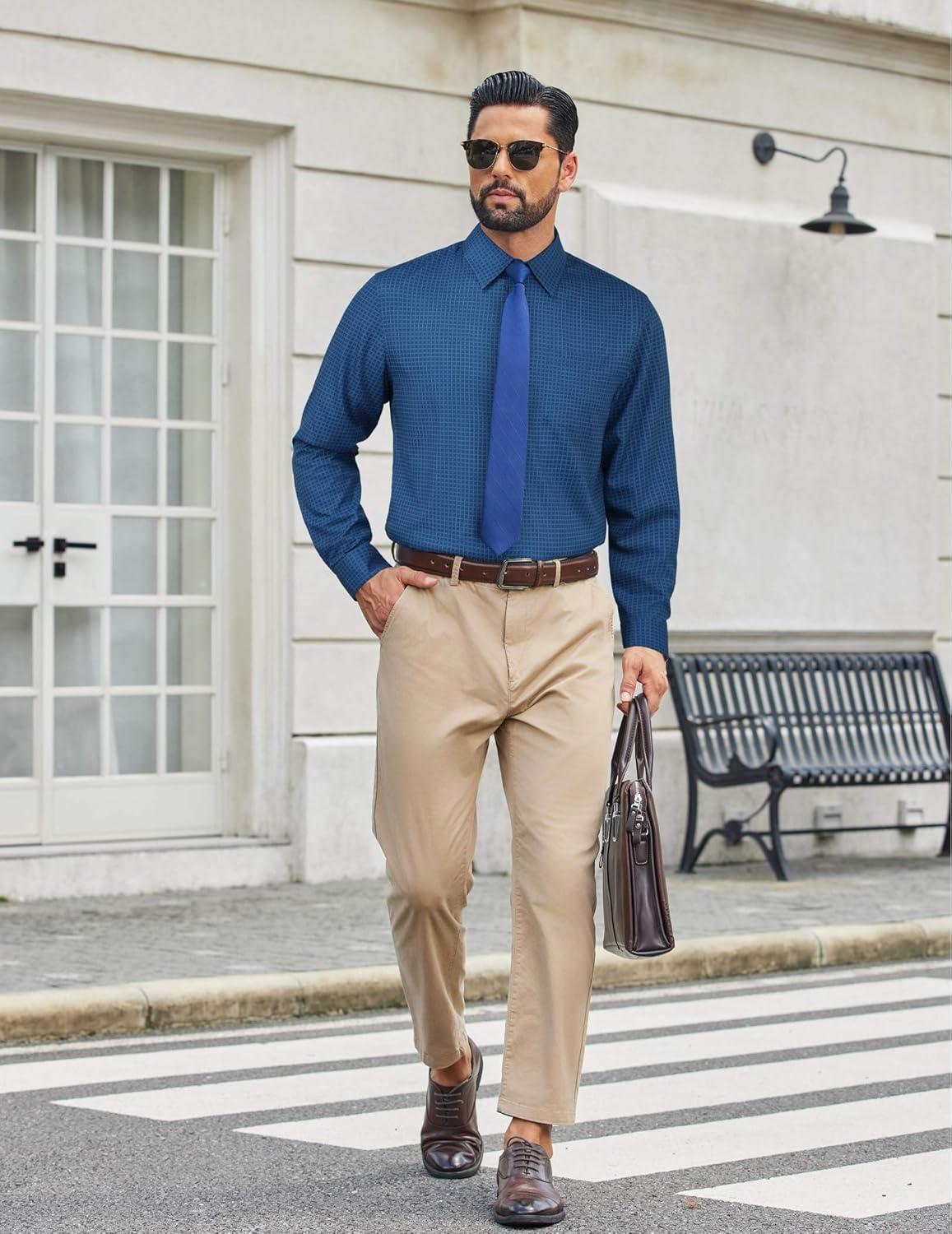COOFANDY Mens Dress Shirts Long Sleeve Plaid Button Down Shirt Business Casual Stretch Shirts with Pocket(Dark Blue Plaid)