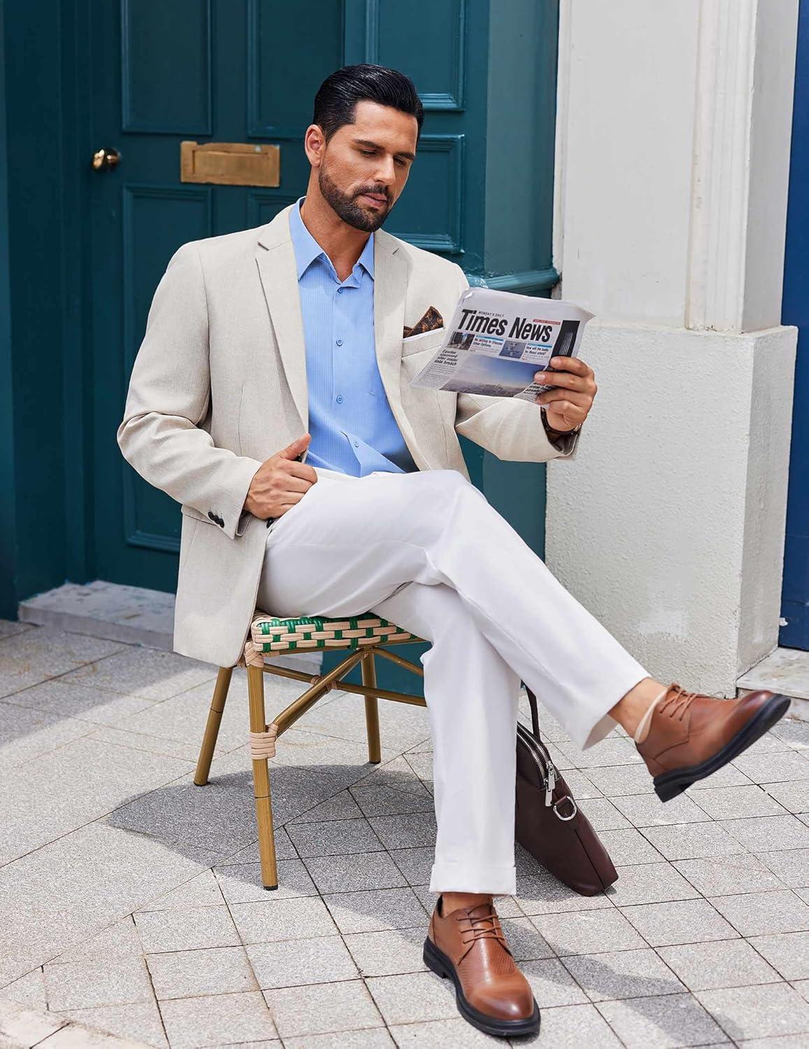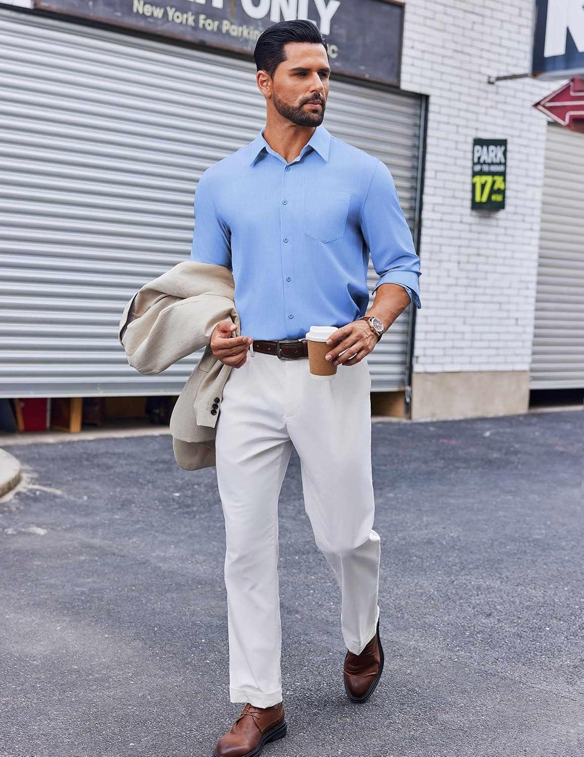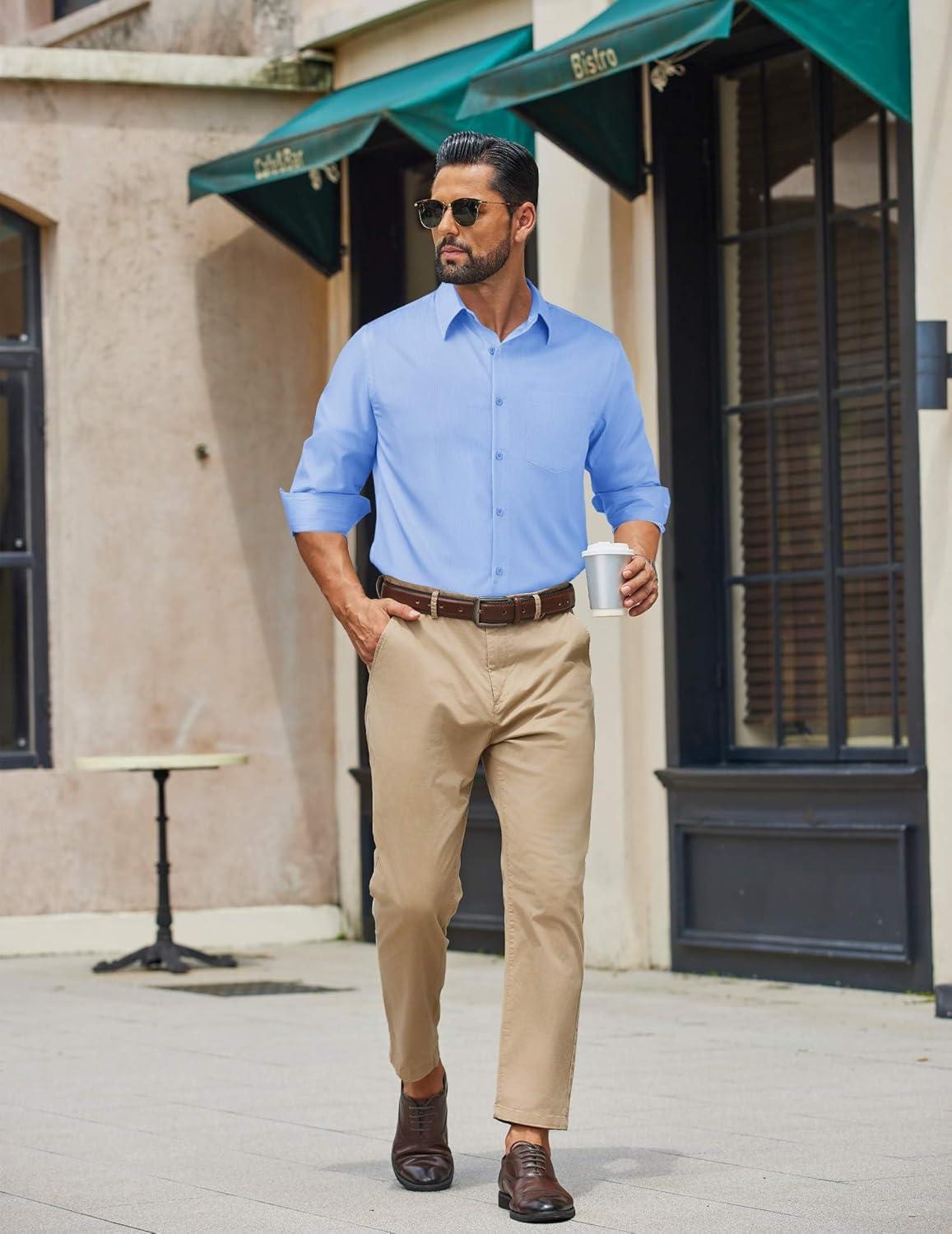 COOFANDY Mens Dress Shirts Long Sleeve Plaid Button Down Shirt Business Casual Stretch Shirts with Pocket(Light Blue Plaid)