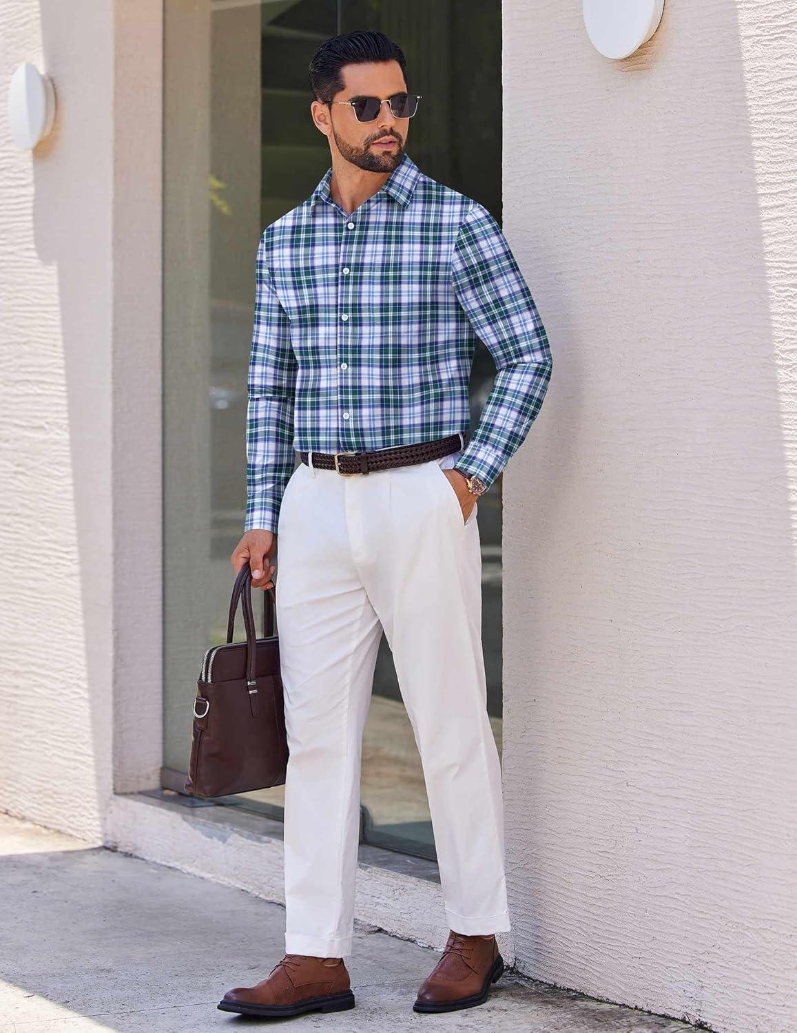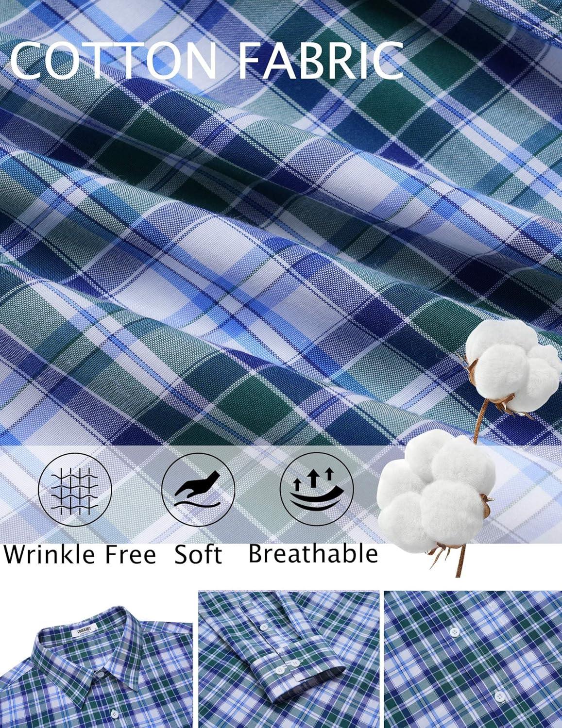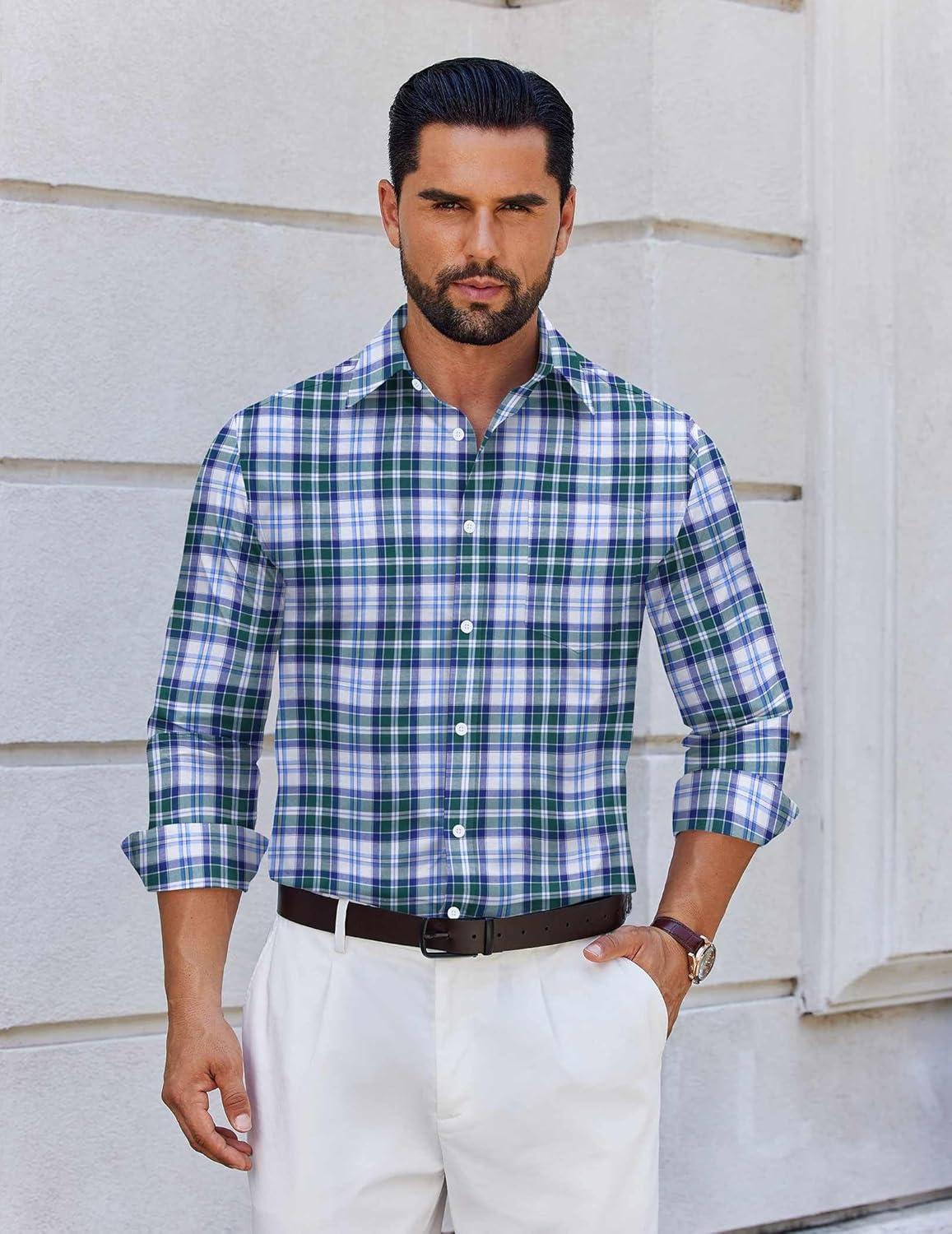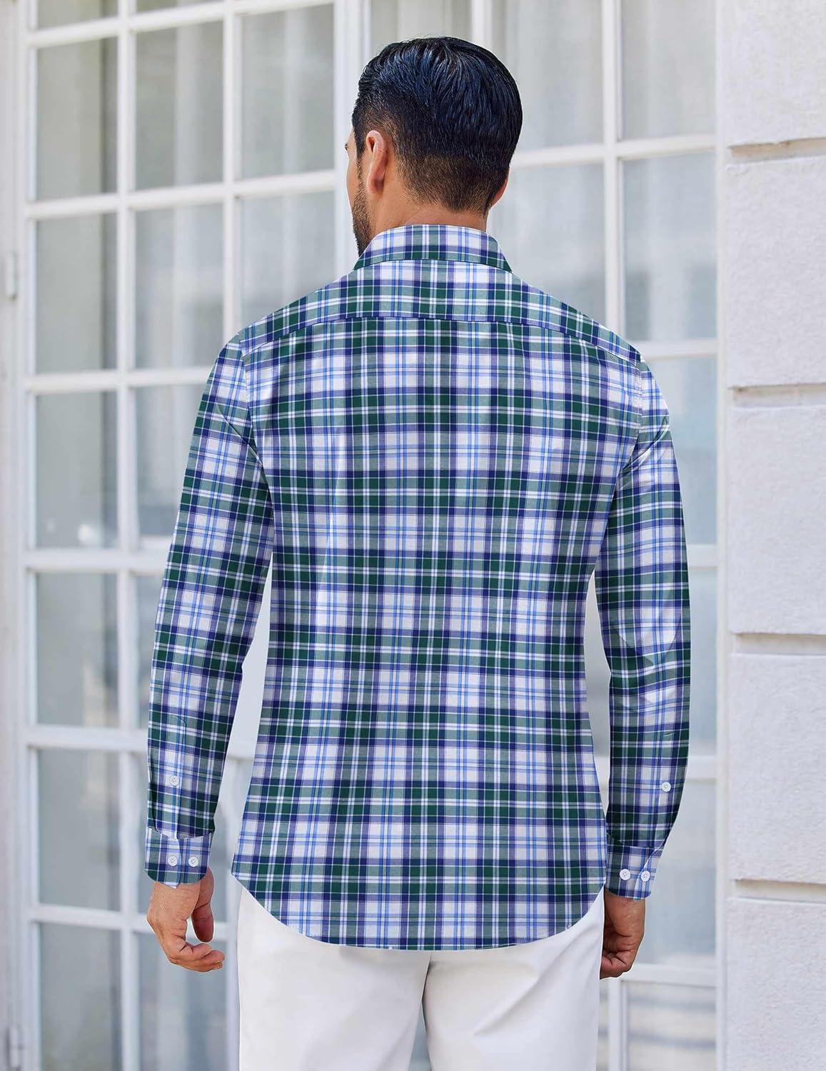 COOFANDY Mens Dress Shirts Long Sleeve Plaid Cotton Button Down Shirts Wrinkle Free Business Casual Shirt(Blue Green Plaid)