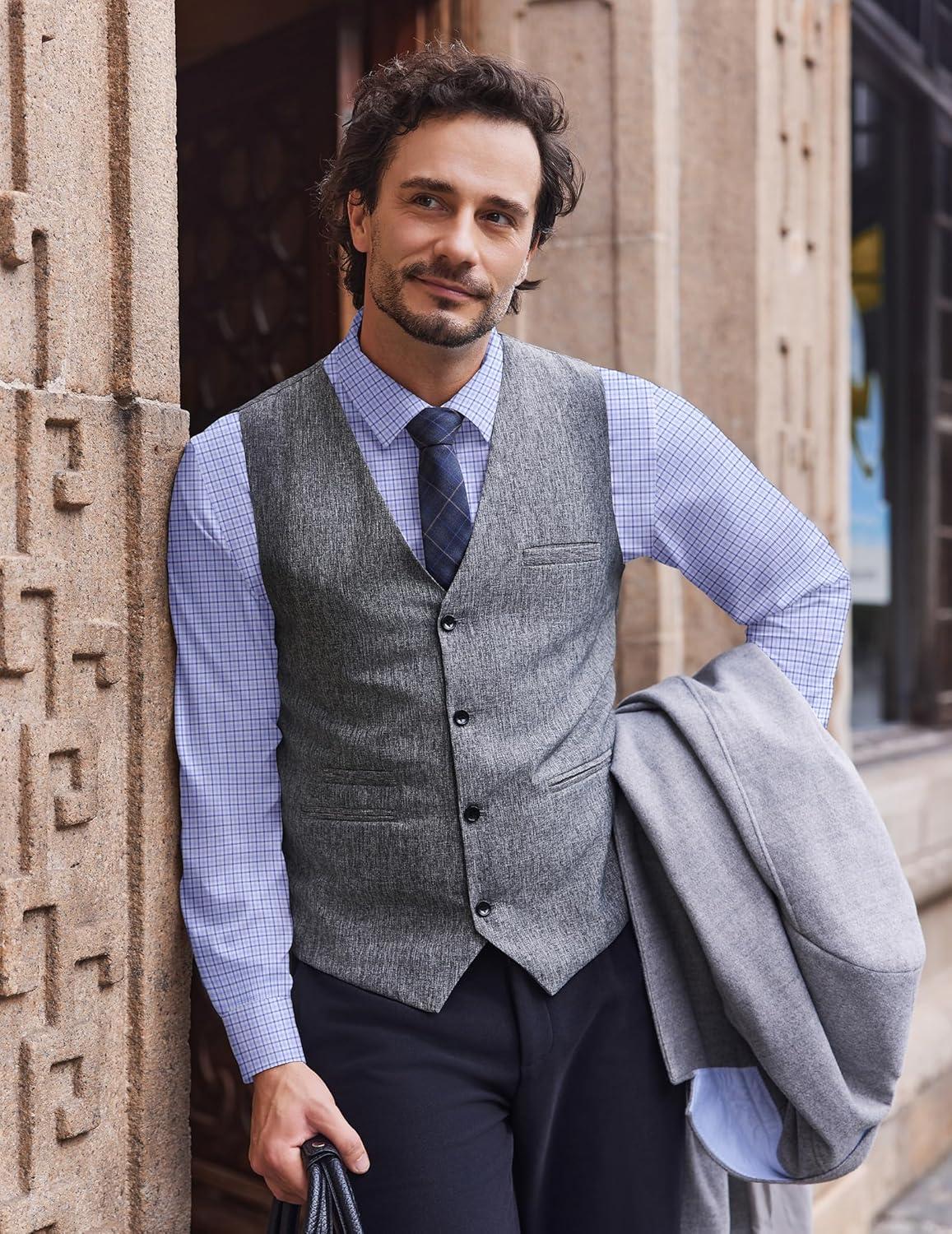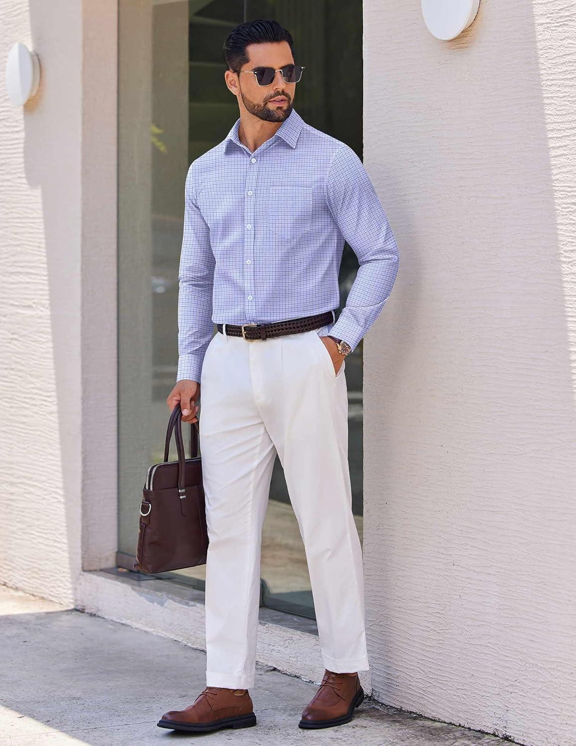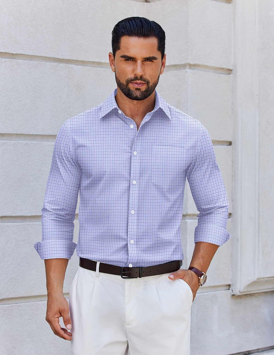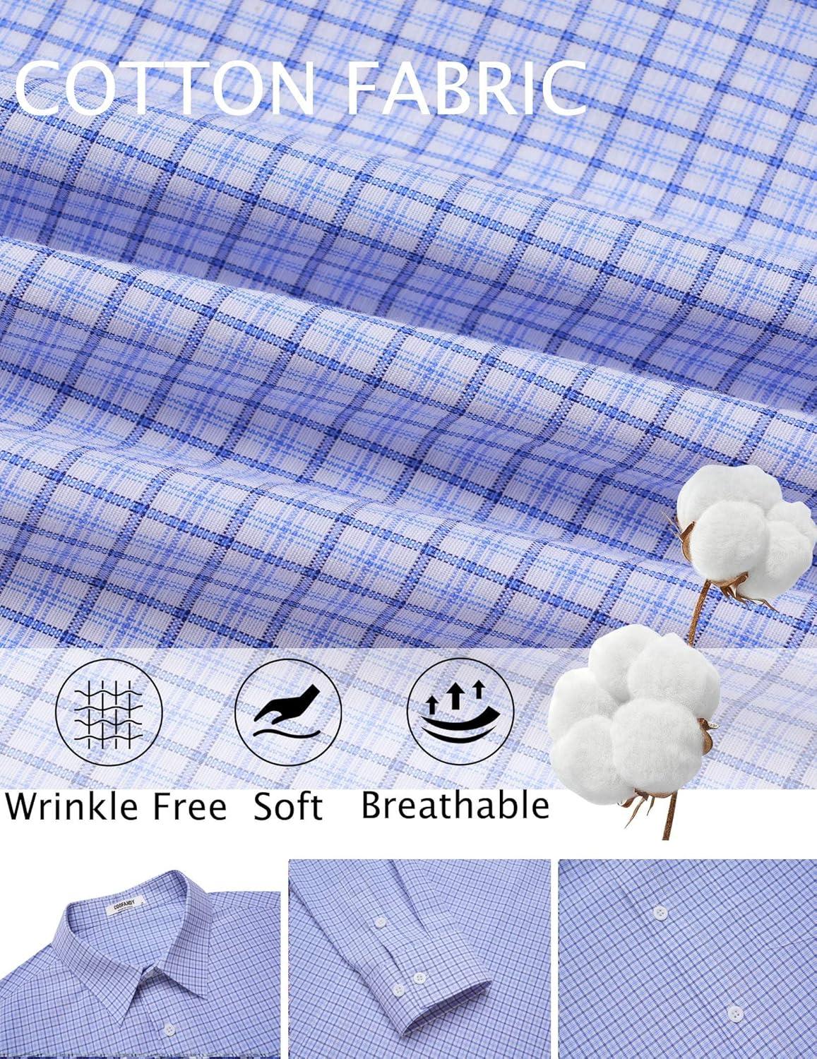COOFANDY Mens Dress Shirts Long Sleeve Plaid Cotton Button Down Shirts Wrinkle Free Business Casual Shirt(Blue Plaid)