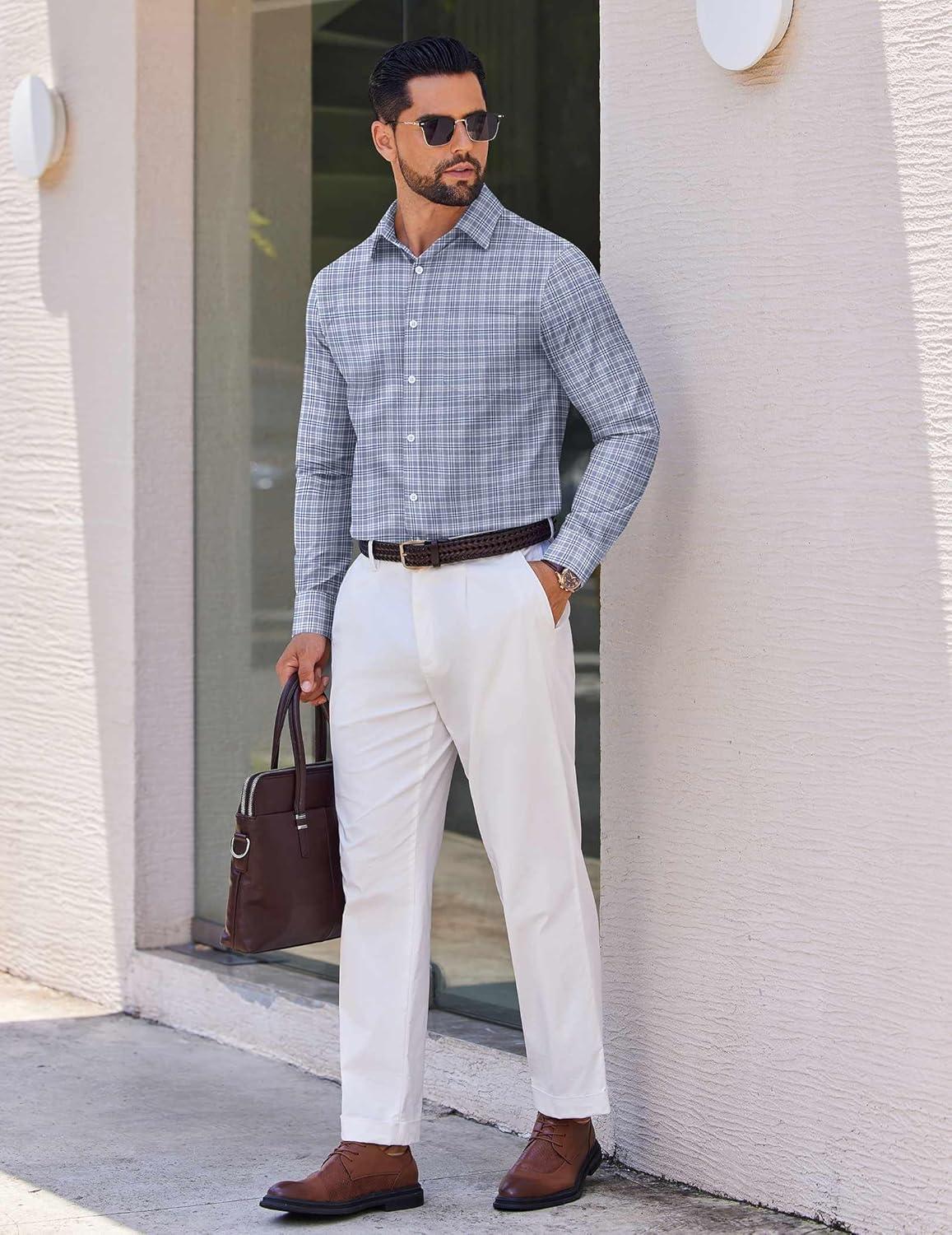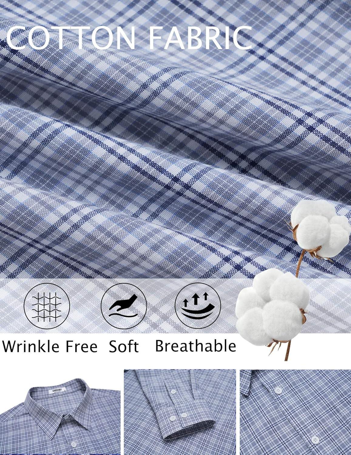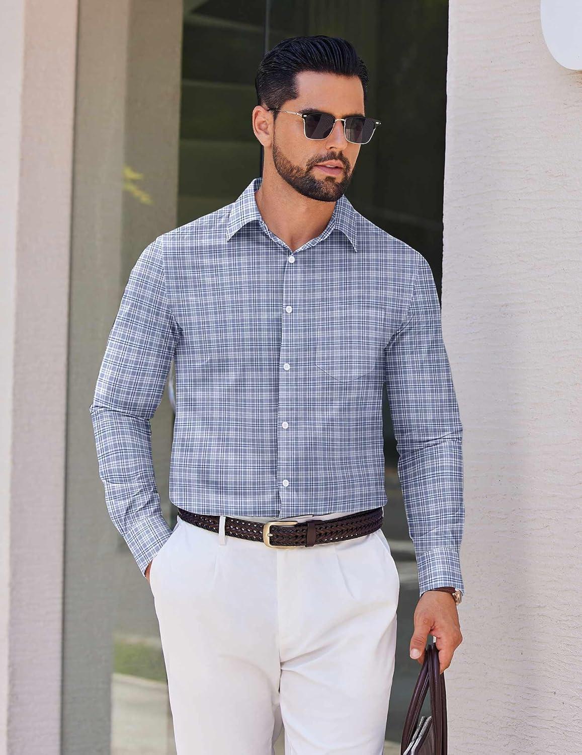 COOFANDY Mens Dress Shirts Long Sleeve Plaid Cotton Button Down Shirts Wrinkle Free Business Casual Shirt(Grey White Plaid)