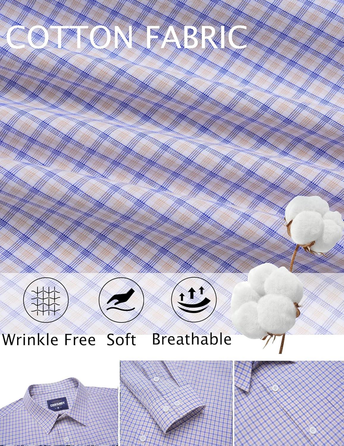 COOFANDY Mens Dress Shirts Long Sleeve Plaid Cotton Button Down Shirts Wrinkle Free Business Casual Shirt(Light Blue Khaki Plaid)