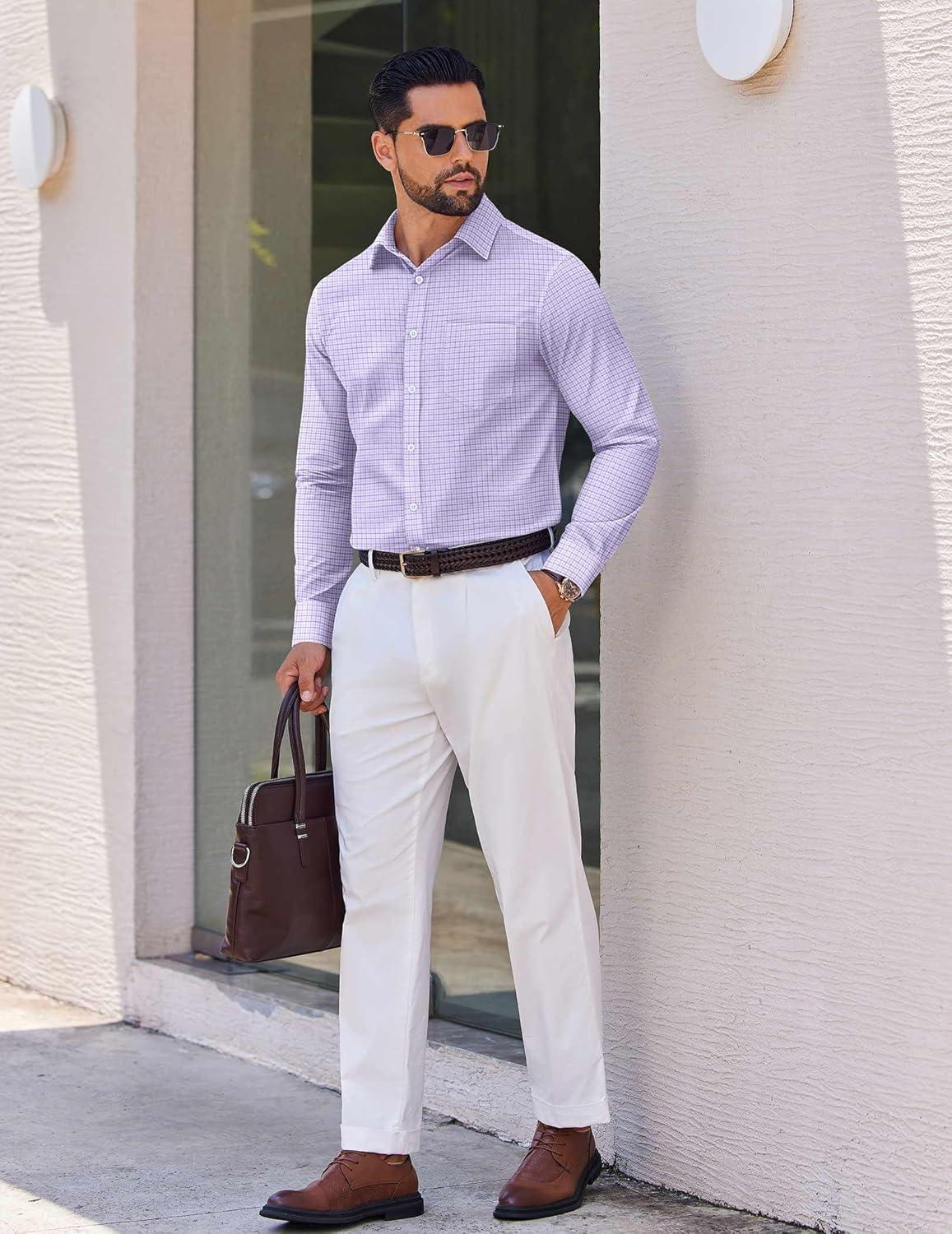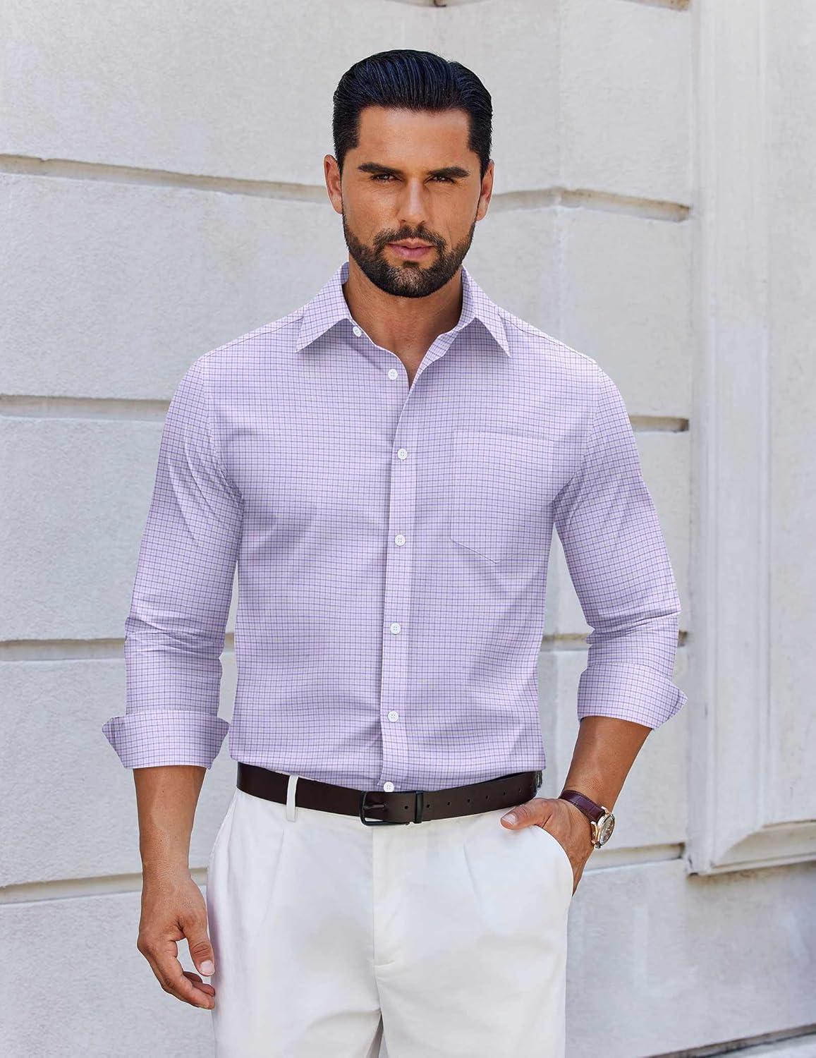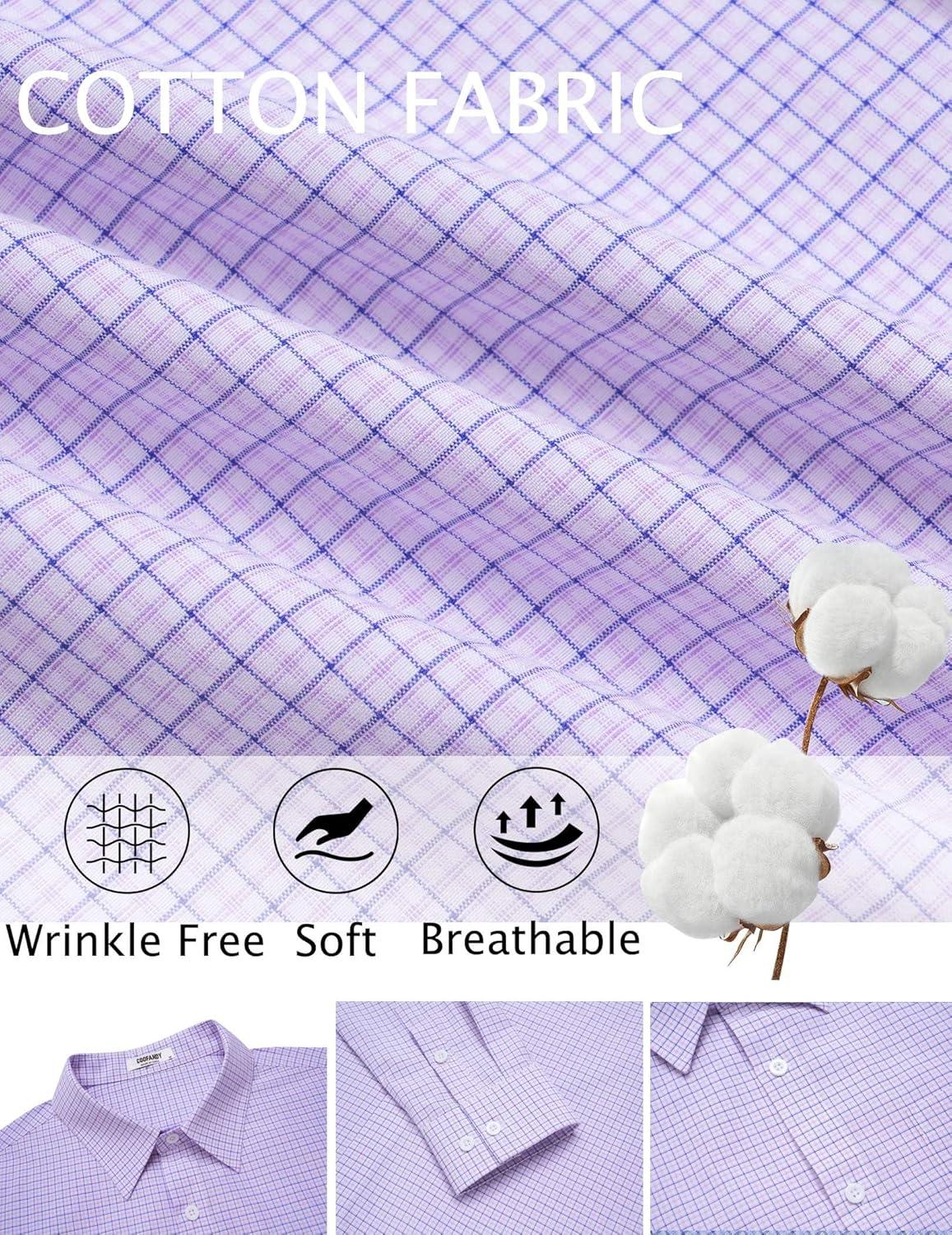 COOFANDY Mens Dress Shirts Long Sleeve Plaid Cotton Button Down Shirts Wrinkle Free Business Casual Shirt(Light Purple Plaid)