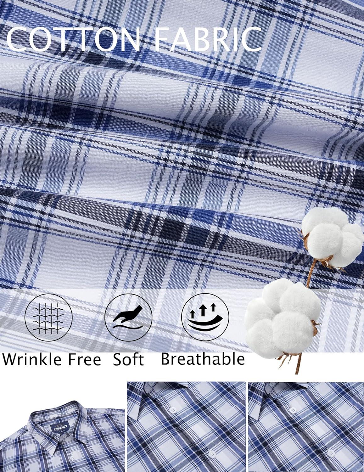 COOFANDY Mens Dress Shirts Long Sleeve Plaid Cotton Button Down Shirts Wrinkle Free Business Casual Shirt(Navy Black White Plaid)