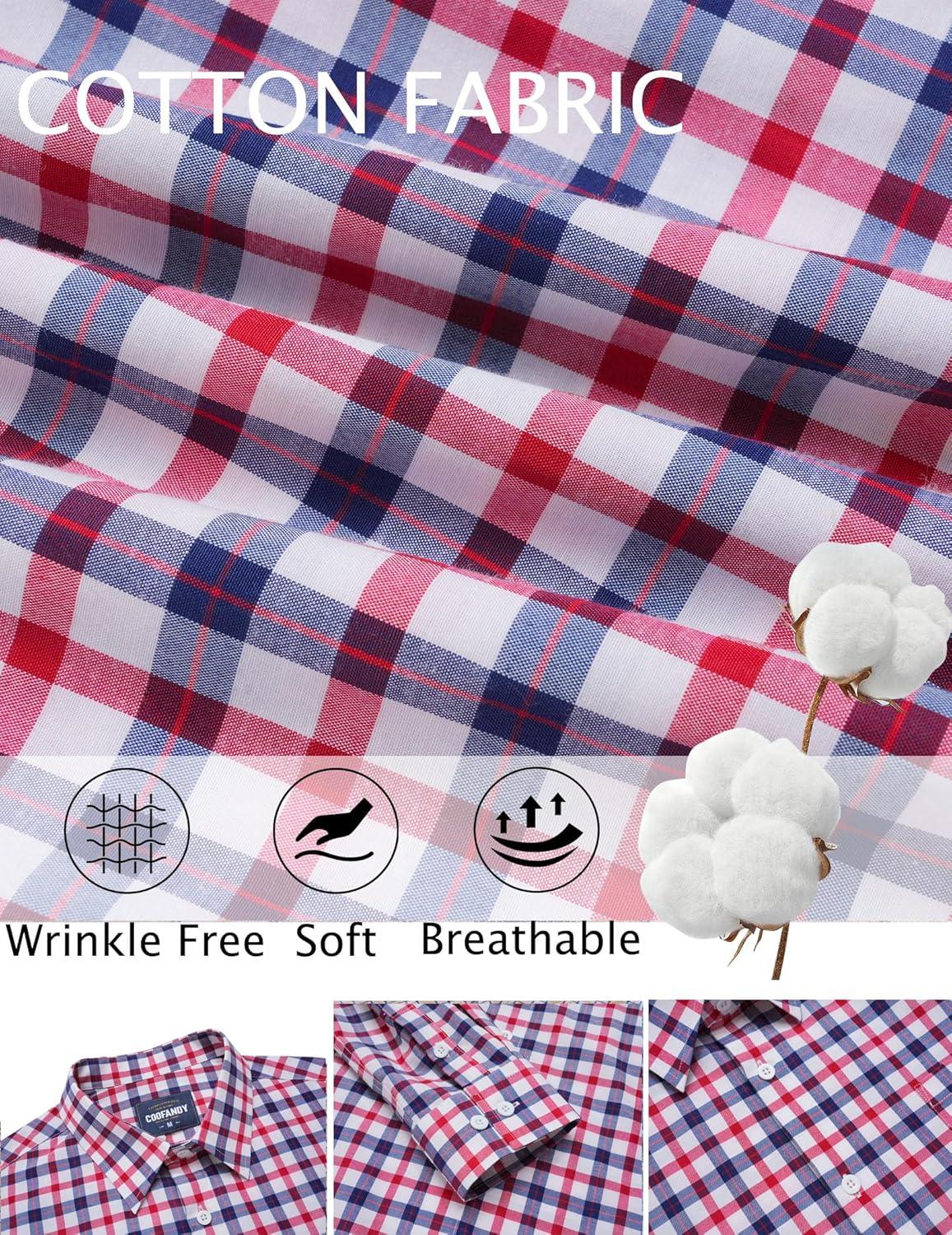 COOFANDY Mens Dress Shirts Long Sleeve Plaid Cotton Button Down Shirts Wrinkle Free Business Casual Shirt(Navy Red Plaid)
