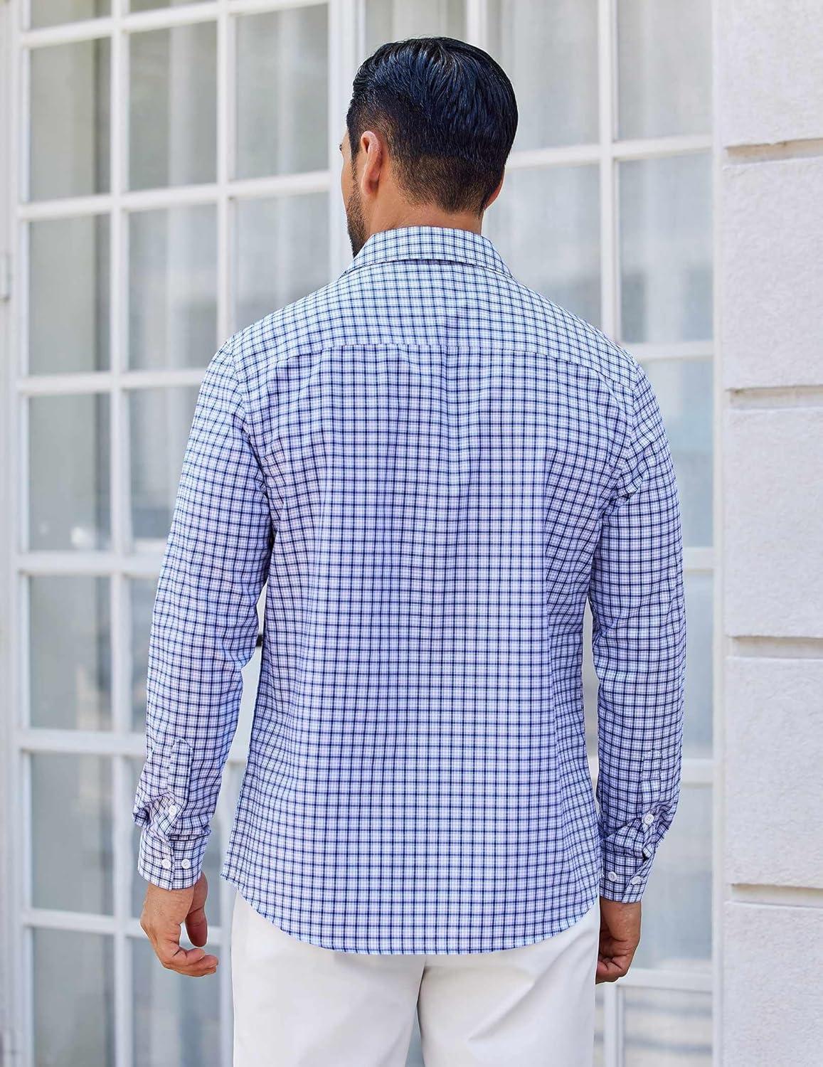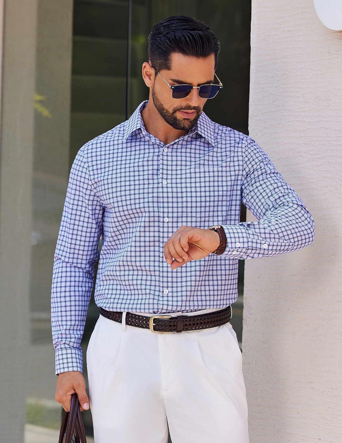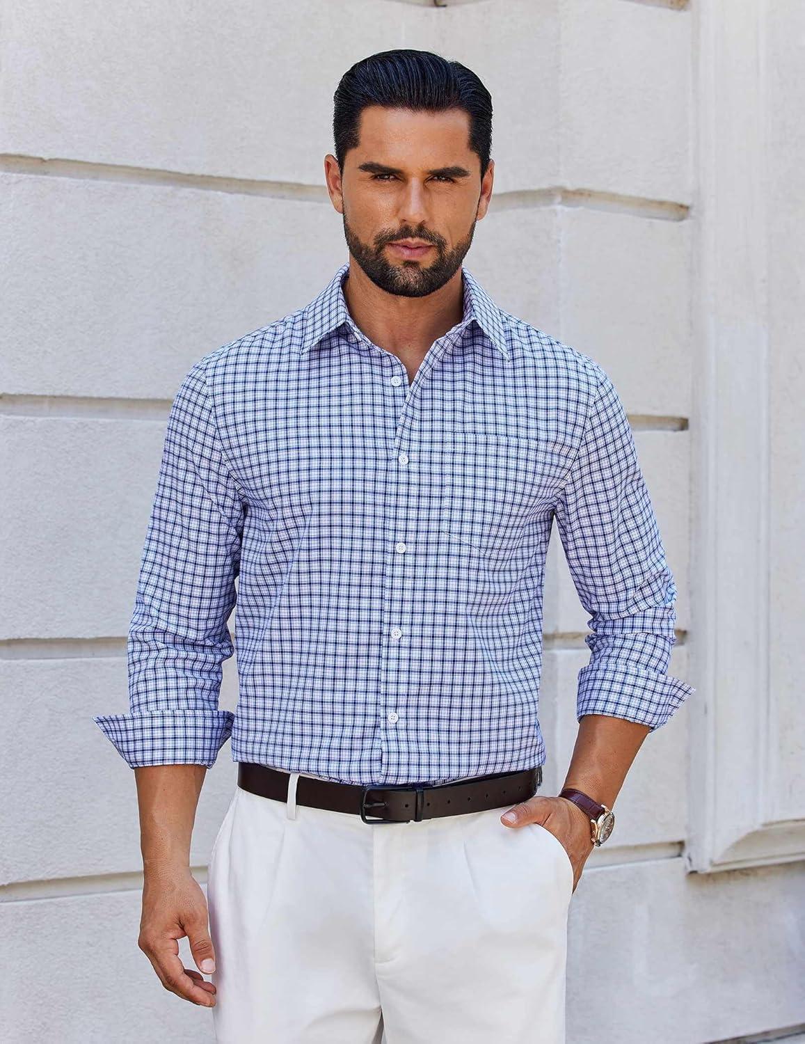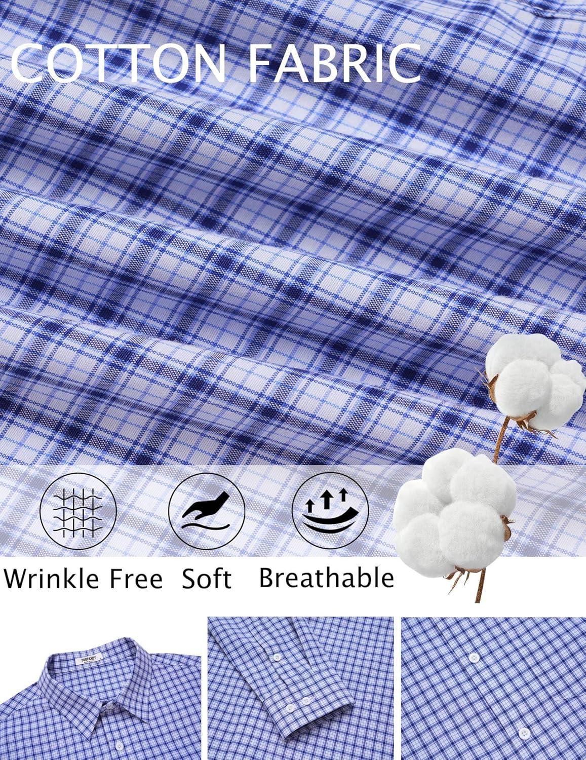 COOFANDY Mens Dress Shirts Long Sleeve Plaid Cotton Button Down Shirts Wrinkle Free Business Casual Shirt(White Deep Blue Plaid)