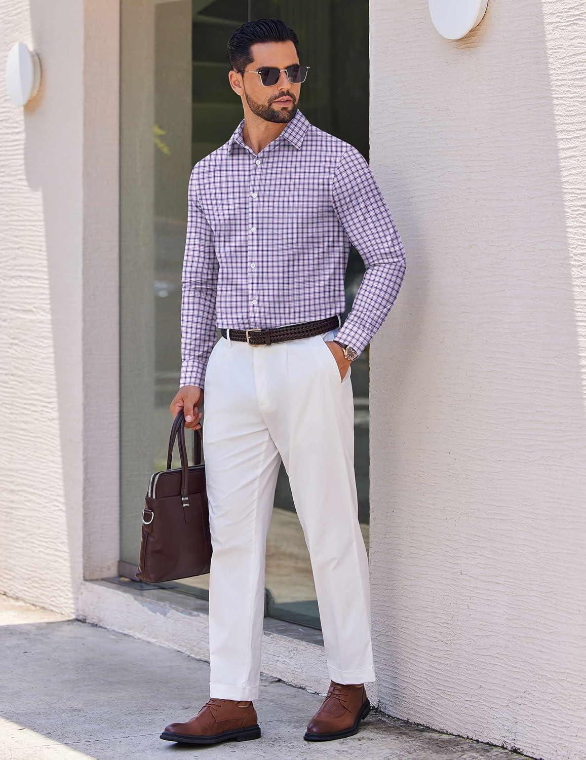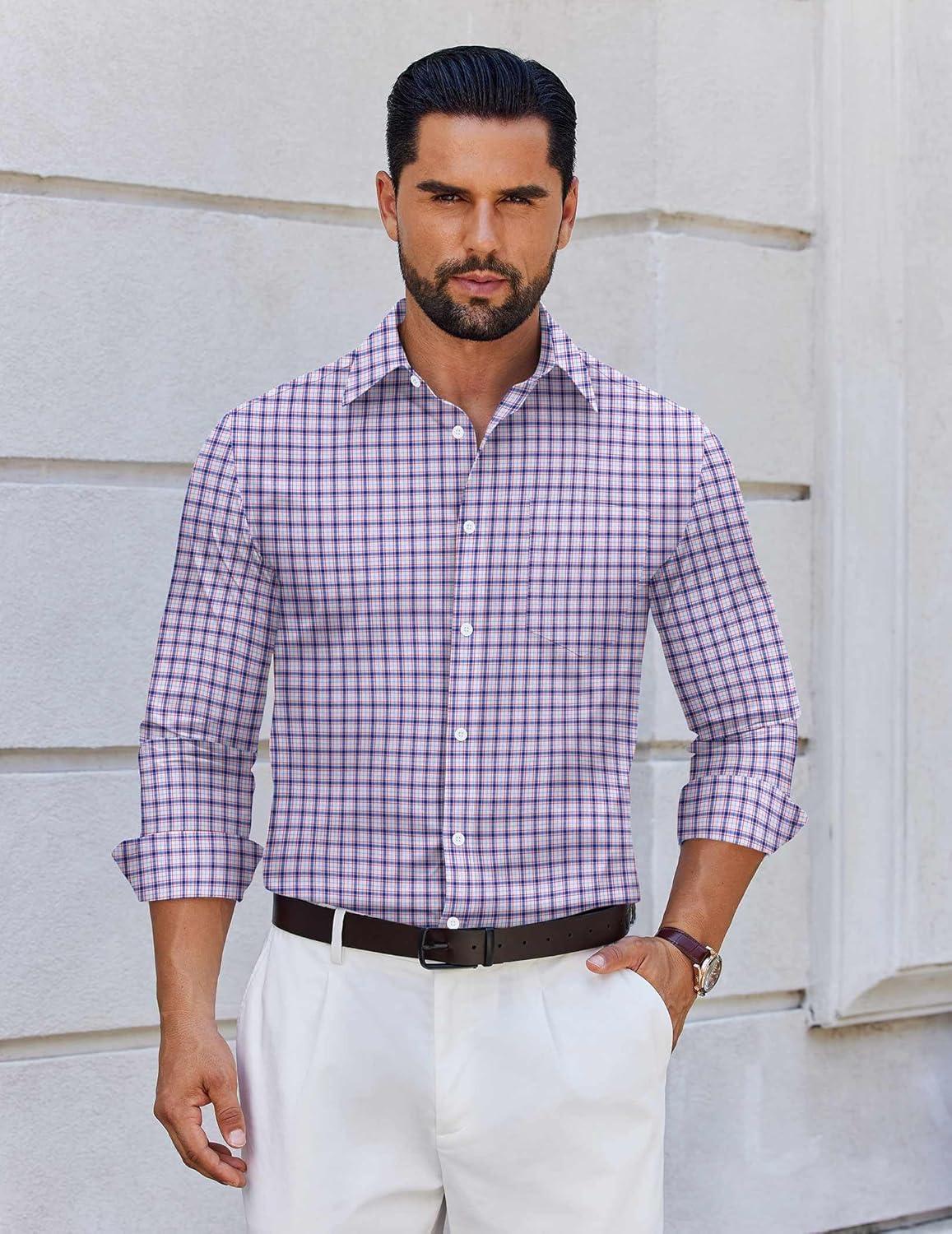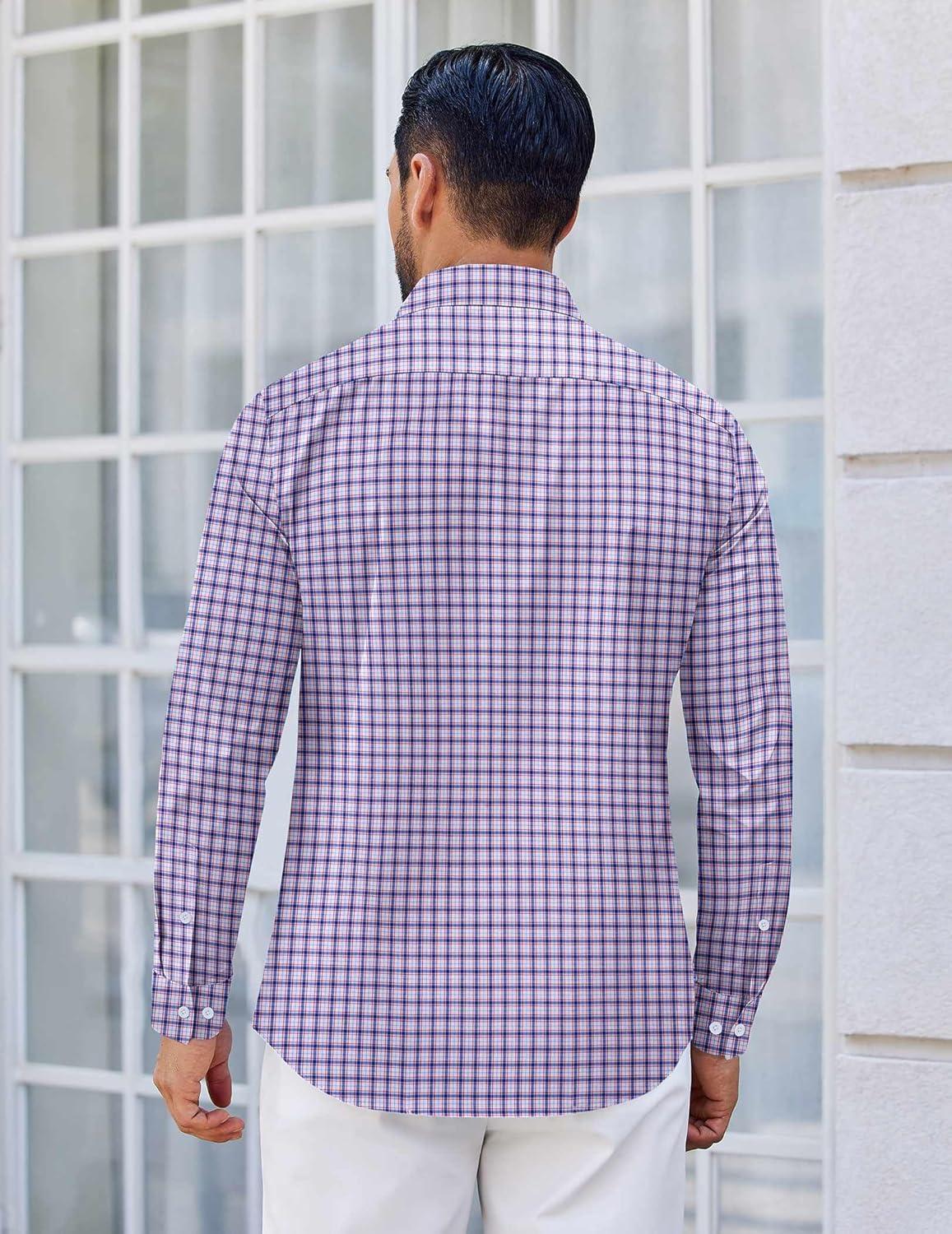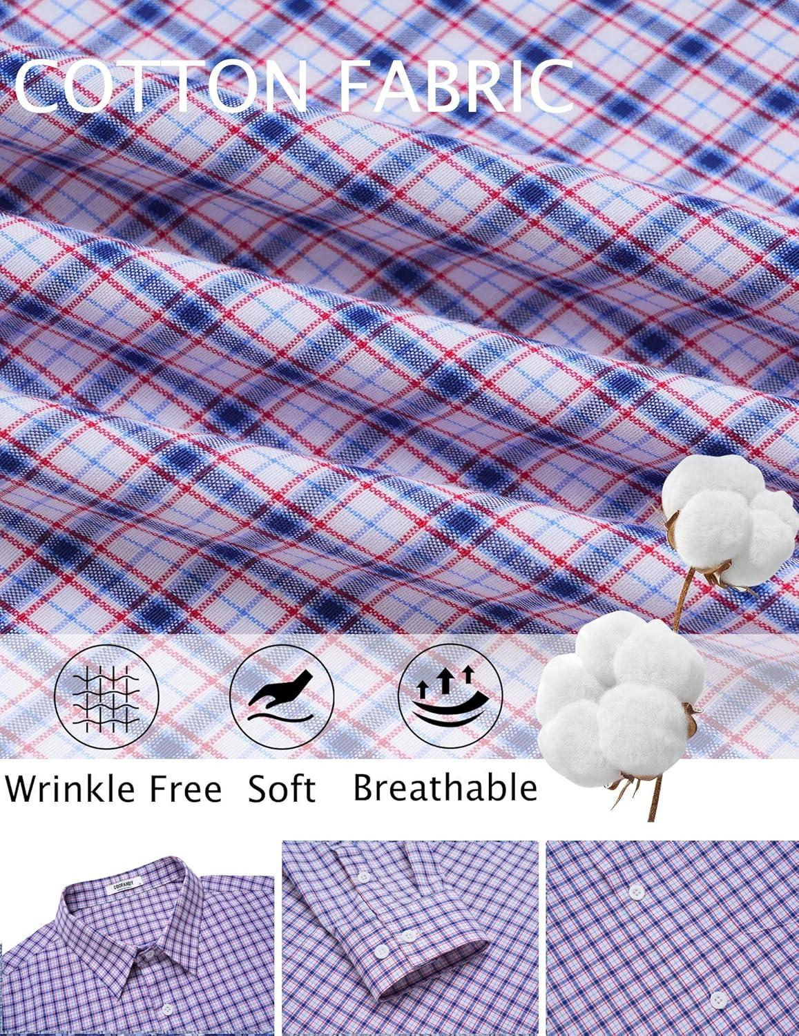 COOFANDY Mens Dress Shirts Long Sleeve Plaid Cotton Button Down Shirts Wrinkle Free Business Casual Shirt(White Red Plaid)