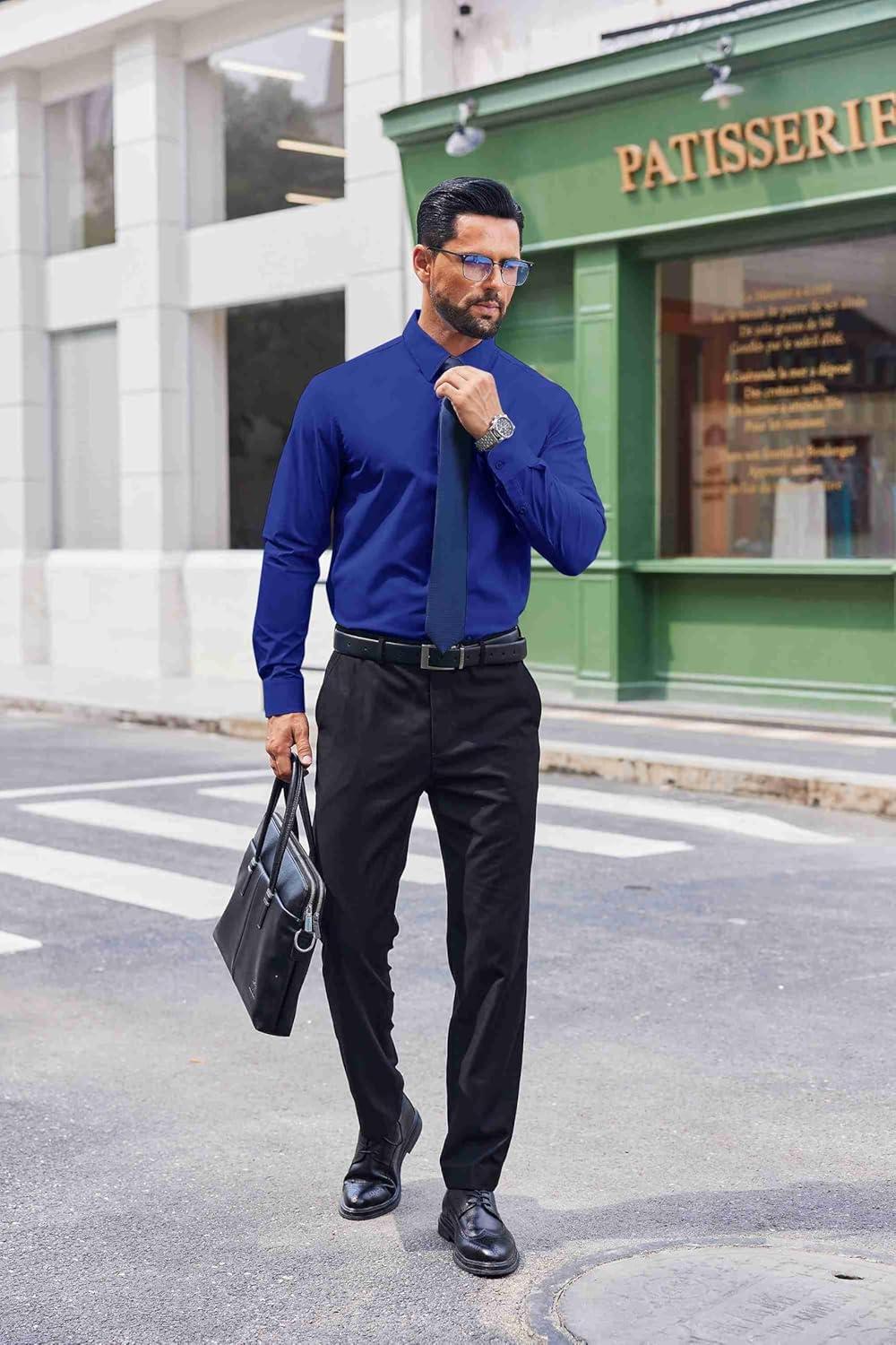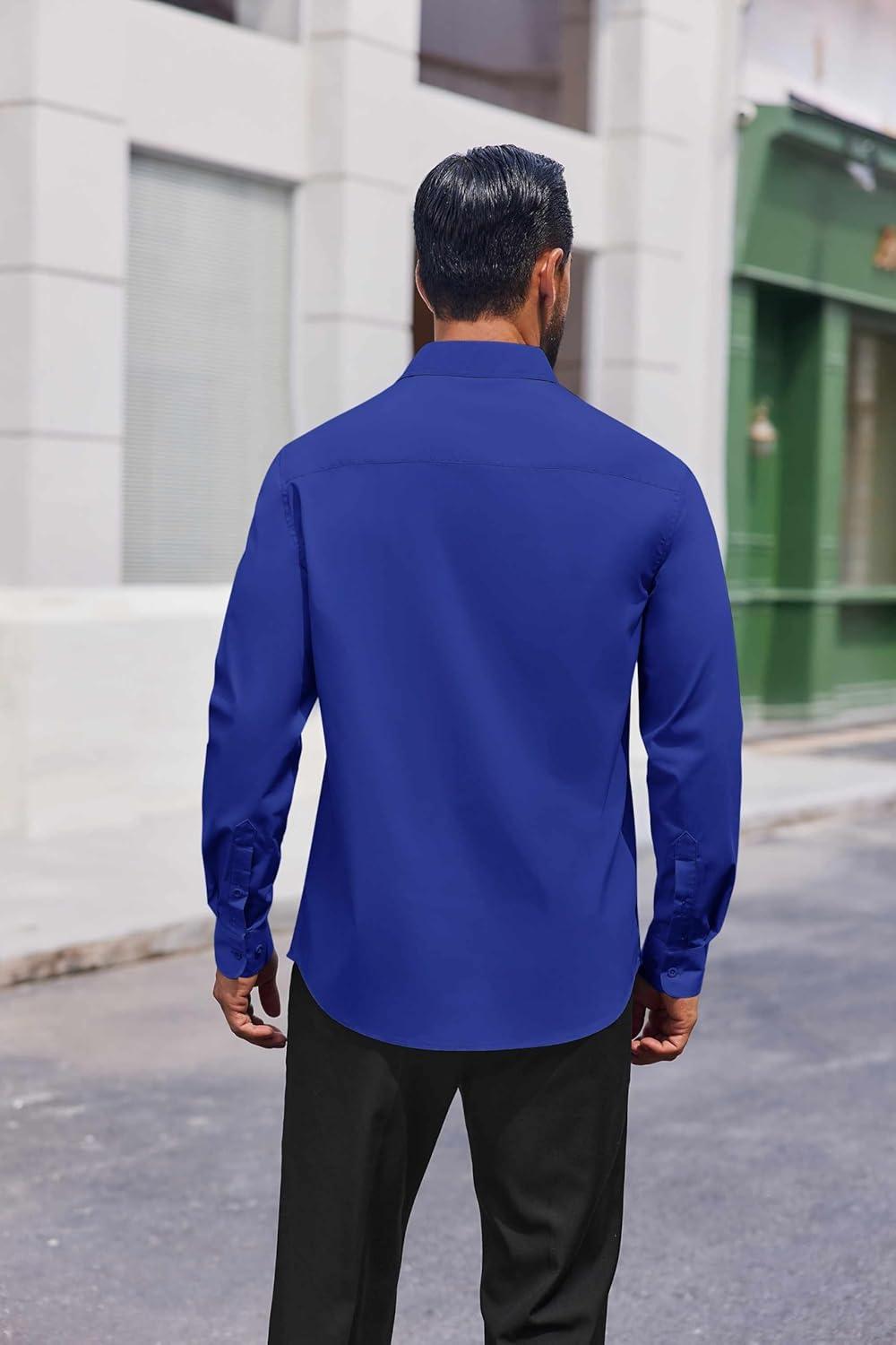 COOFANDY Mens Dress Shirts Long Sleeve Stain Shield Button Down Shirt Regular Fit Formal Business Wedding Shirts(Royal Azure Blue)