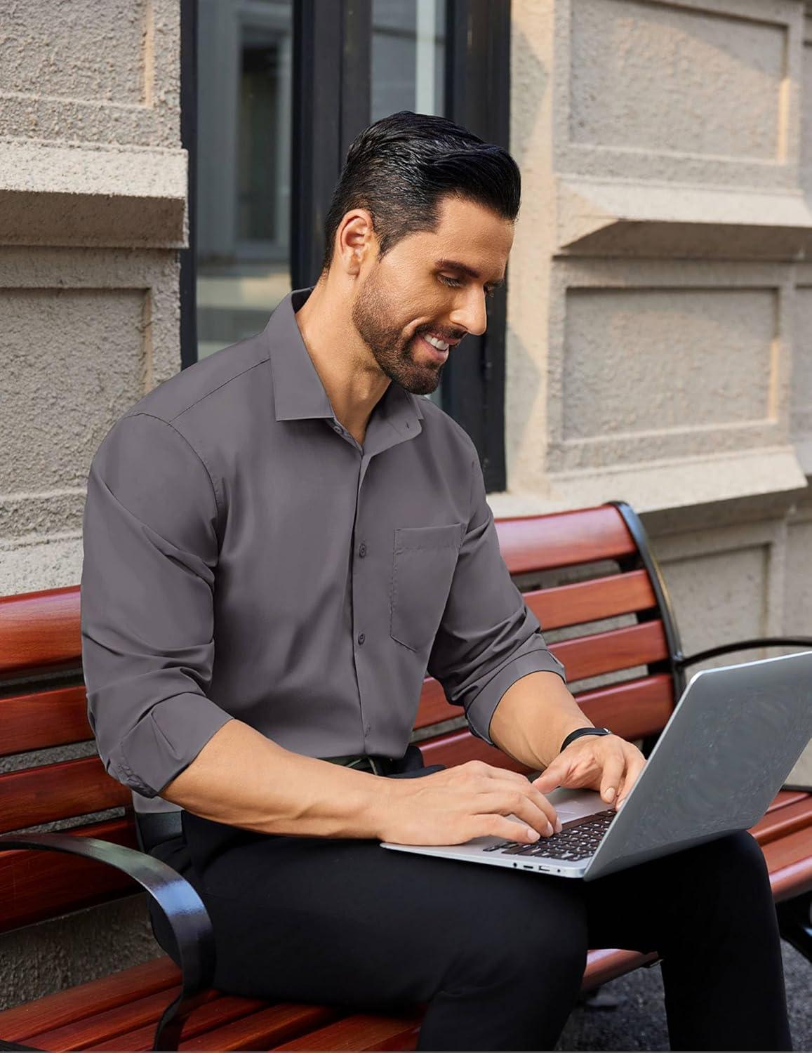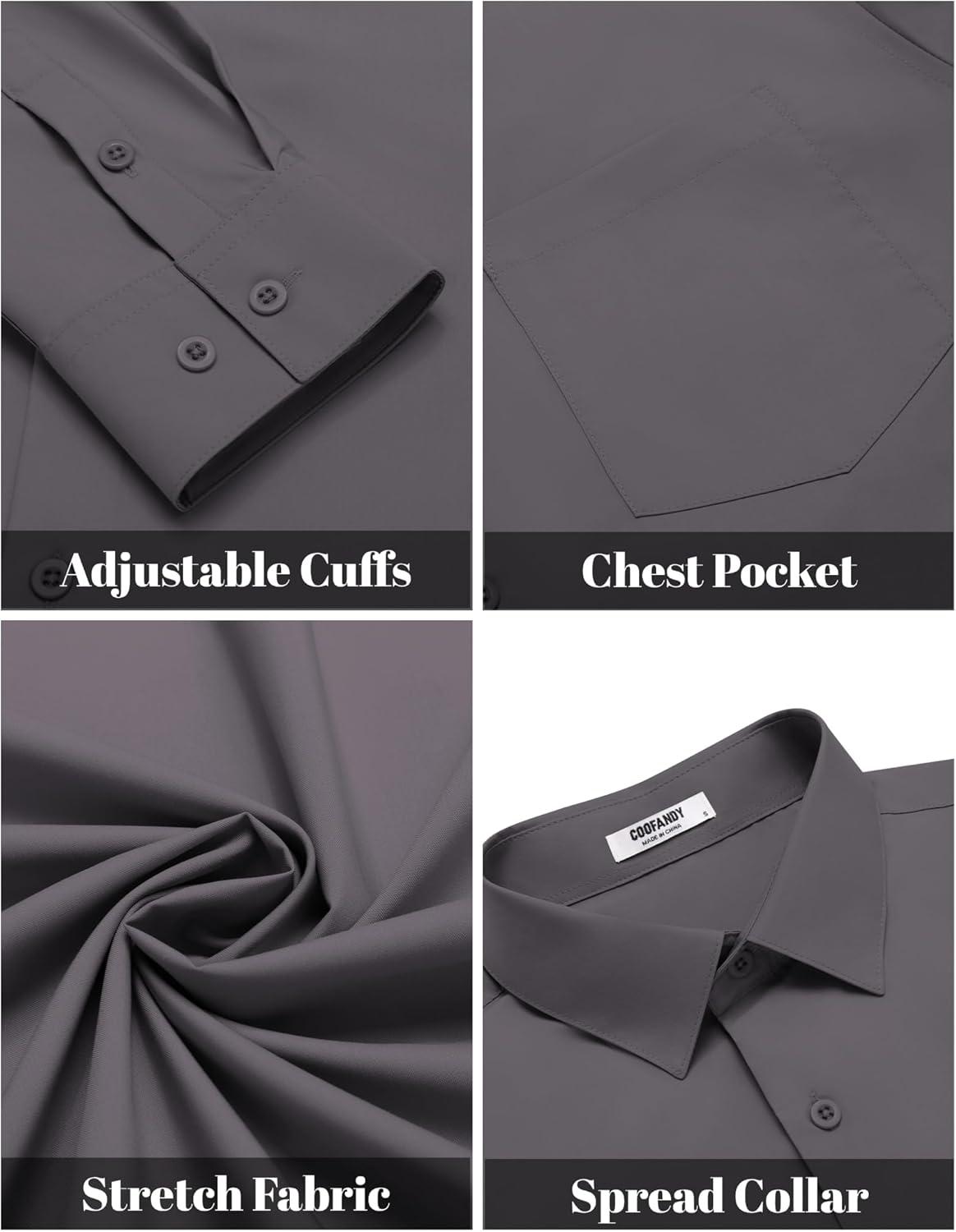 COOFANDY Mens Dress Shirts Long Sleeve Wrinkle Free Button Down Shirts Formal Business Shirt(Deep Grey)
