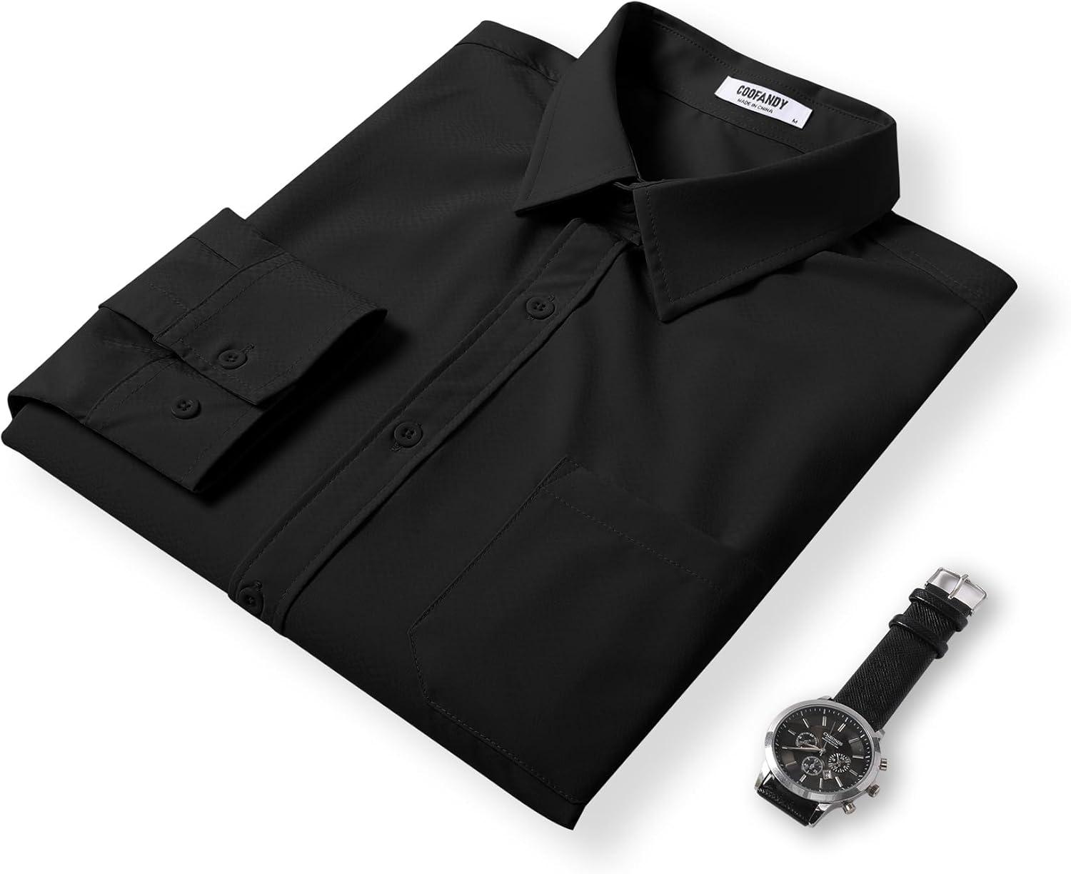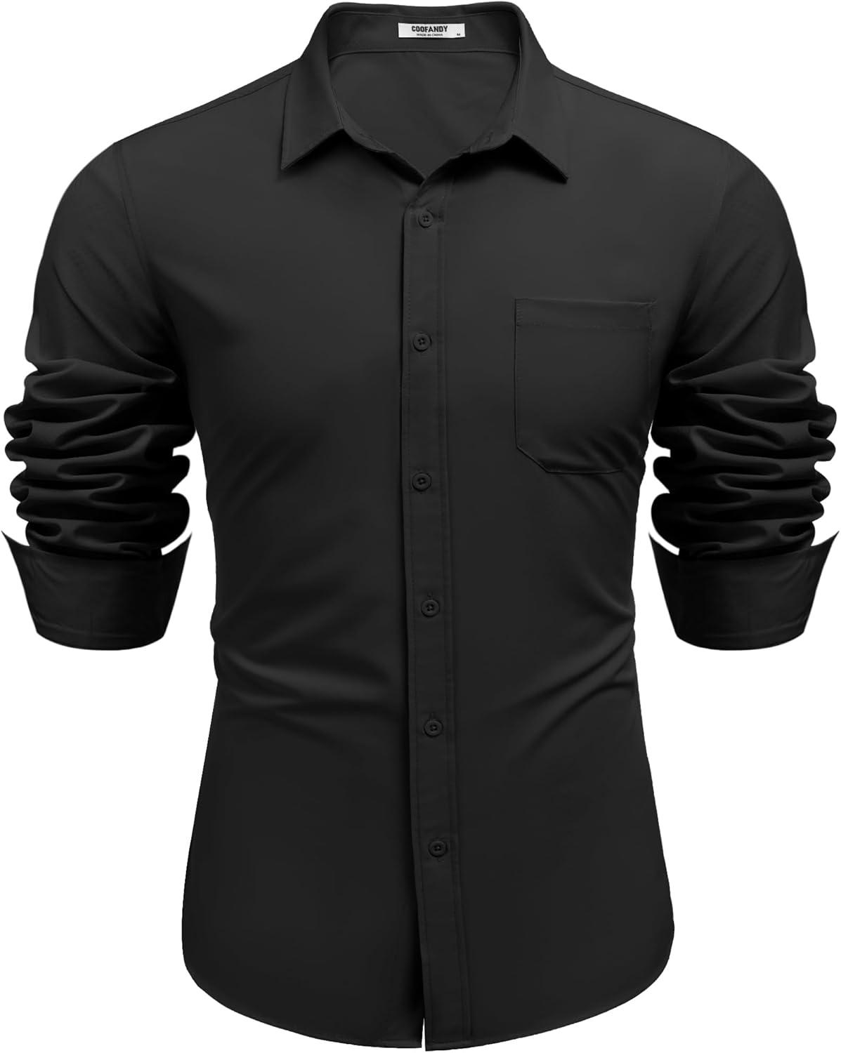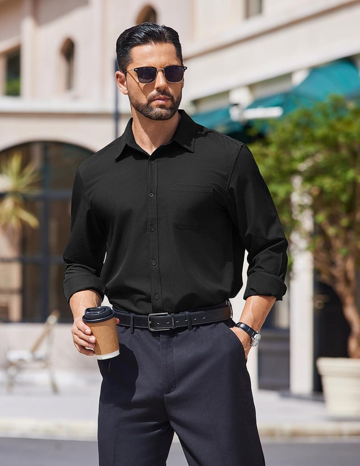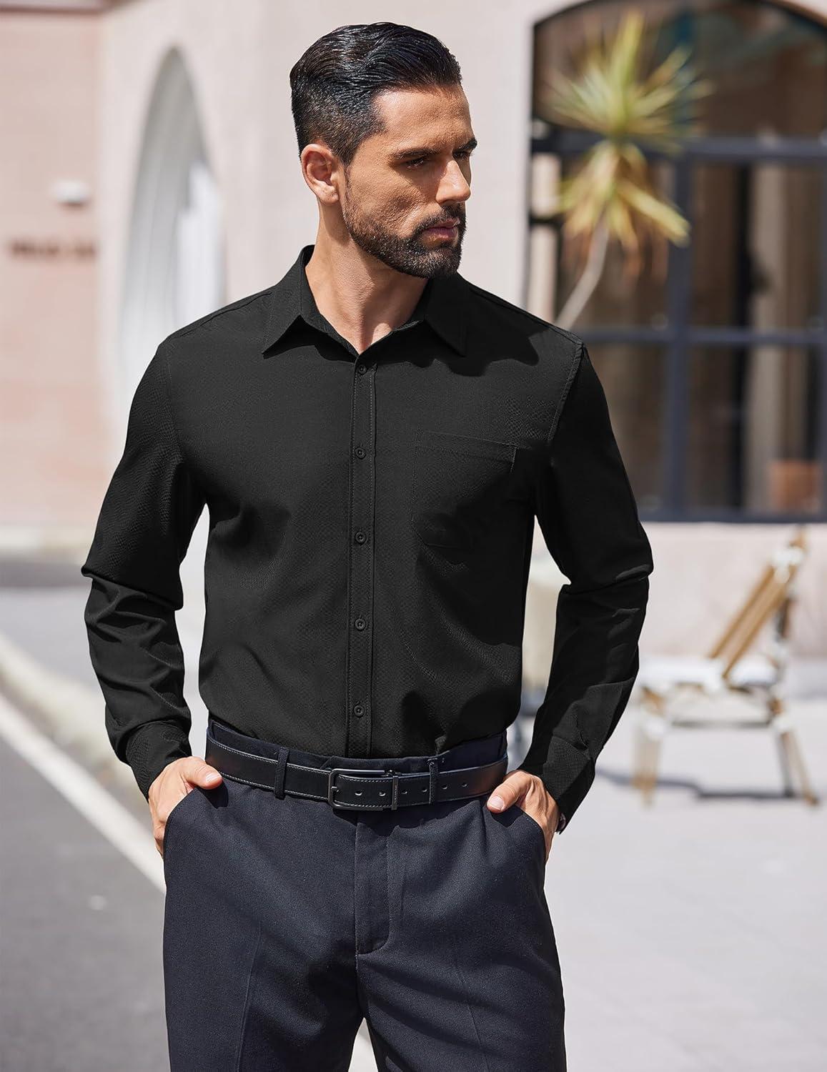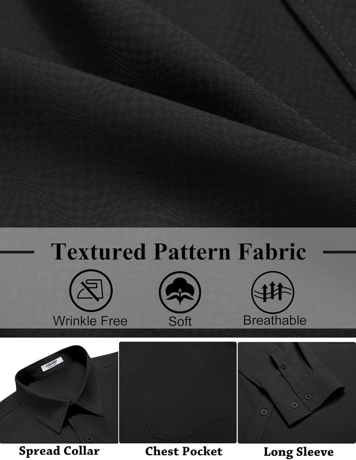 COOFANDY Mens Dress Shirts Long Sleeve Wrinkle Free Shirt Textured Business Casual Button Down Shirt(Black)