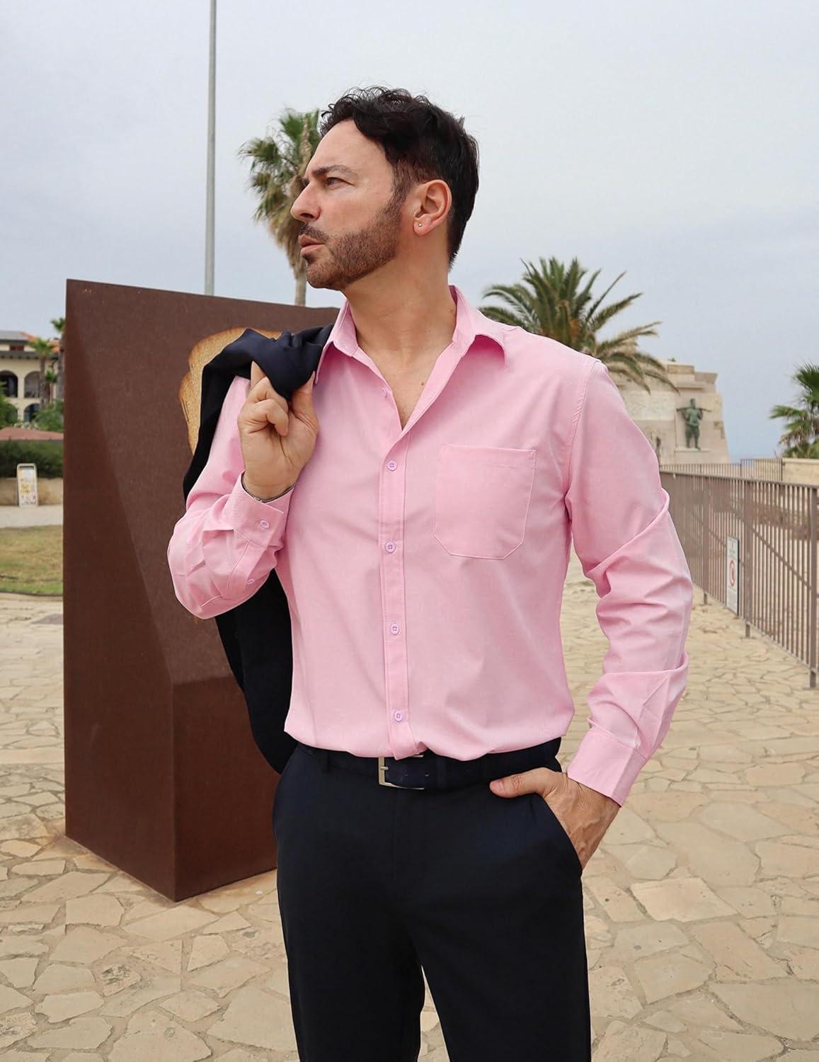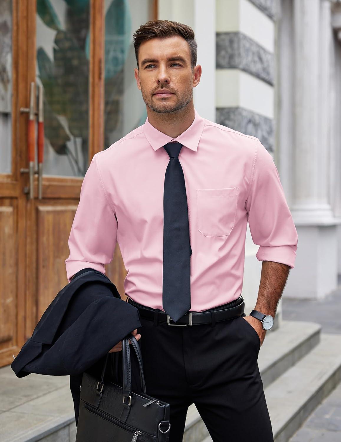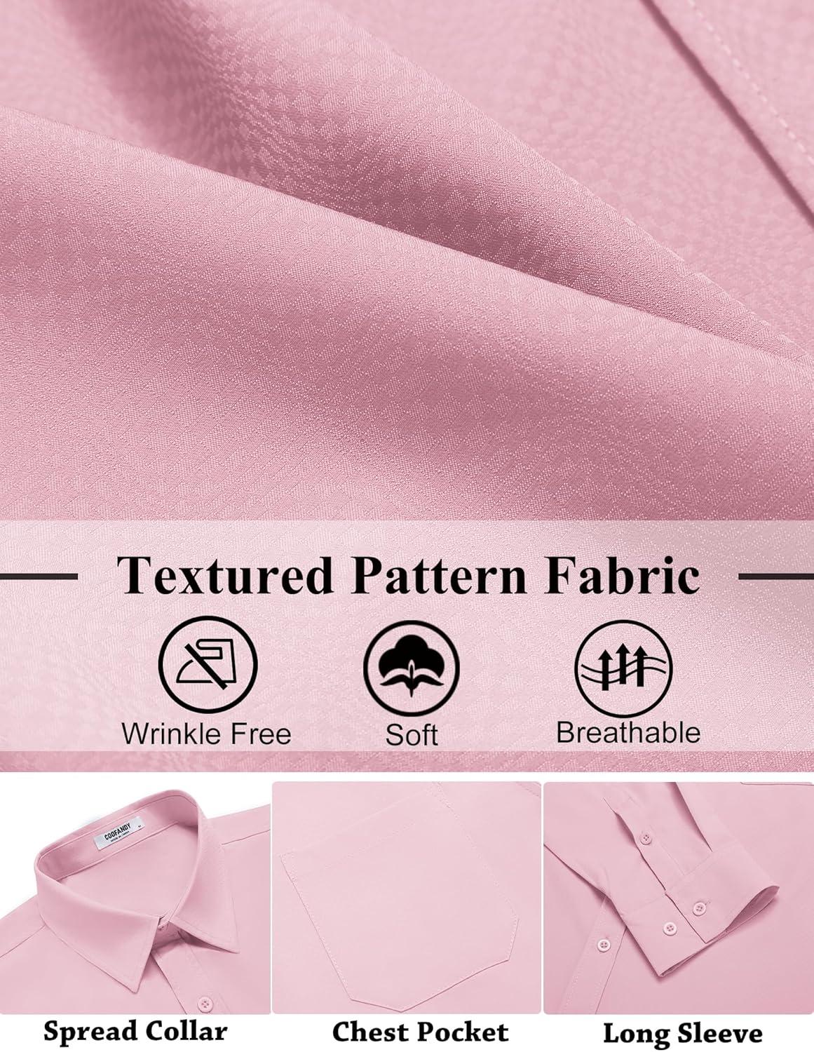 COOFANDY Mens Dress Shirts Long Sleeve Wrinkle Free Shirt Textured Business Casual Button Down Shirt(Light Pink)