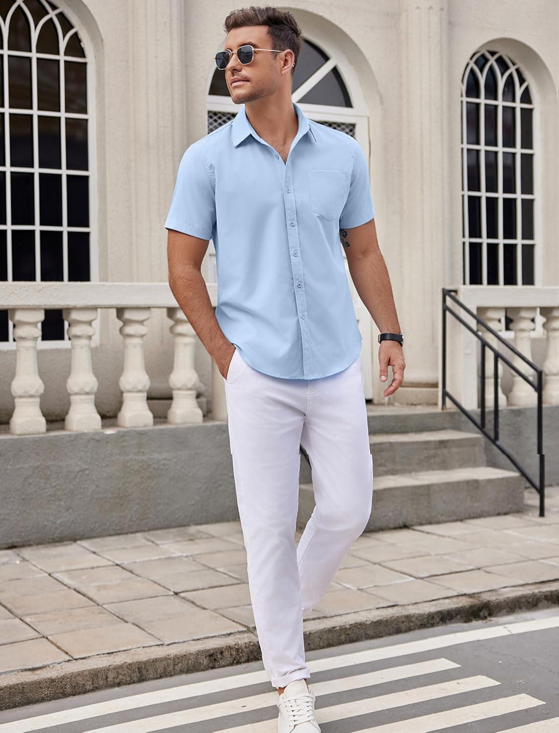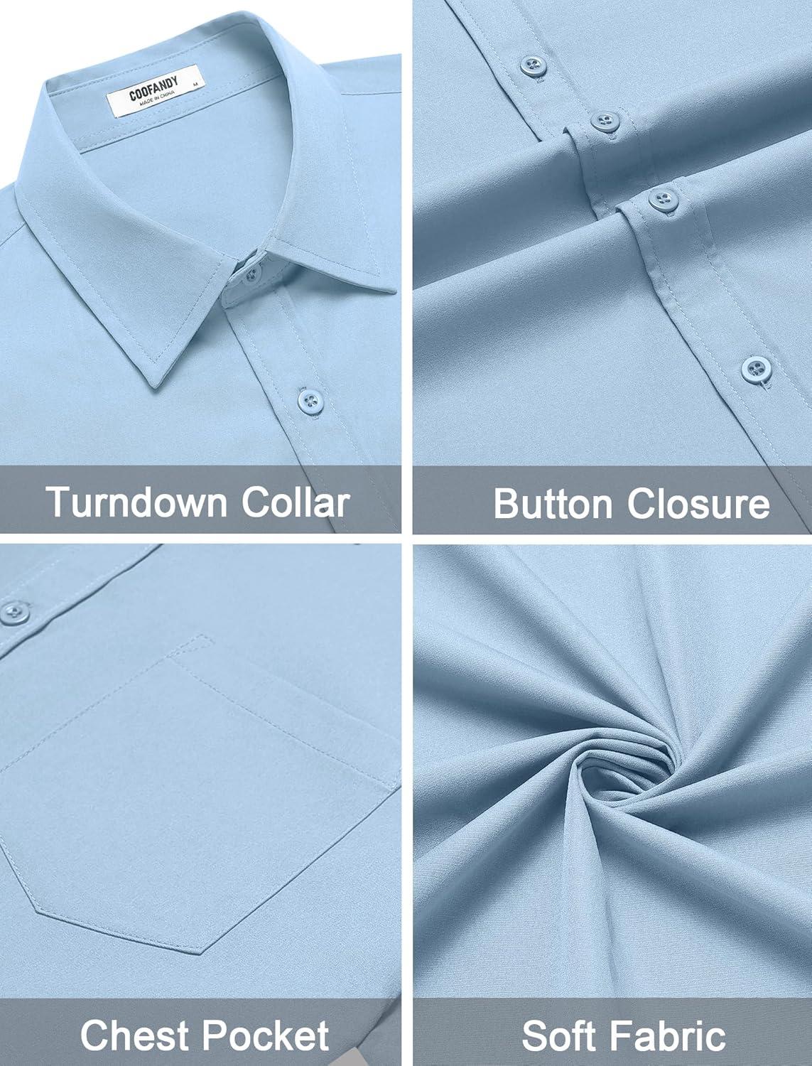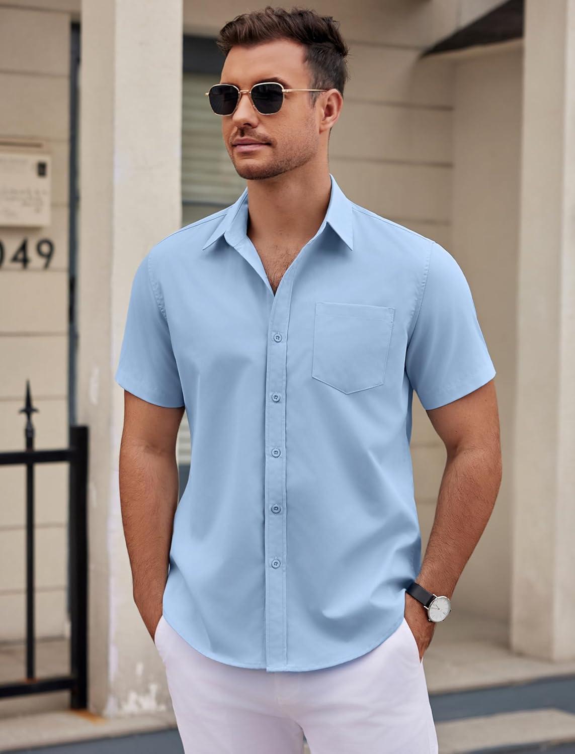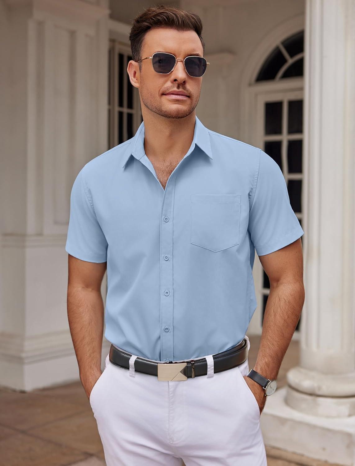COOFANDY Mens Dress Shirts Short Sleeve Business Casual Shirts Regular Fit Casual Button Down Untucked Shirts(Blue)