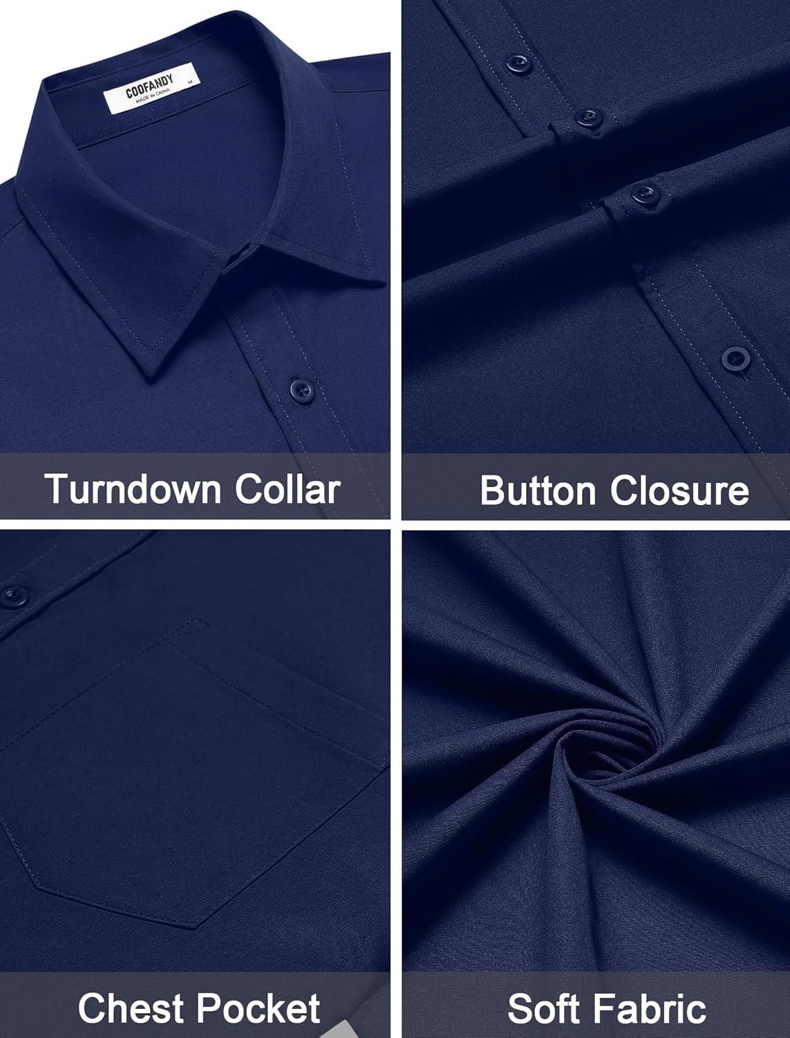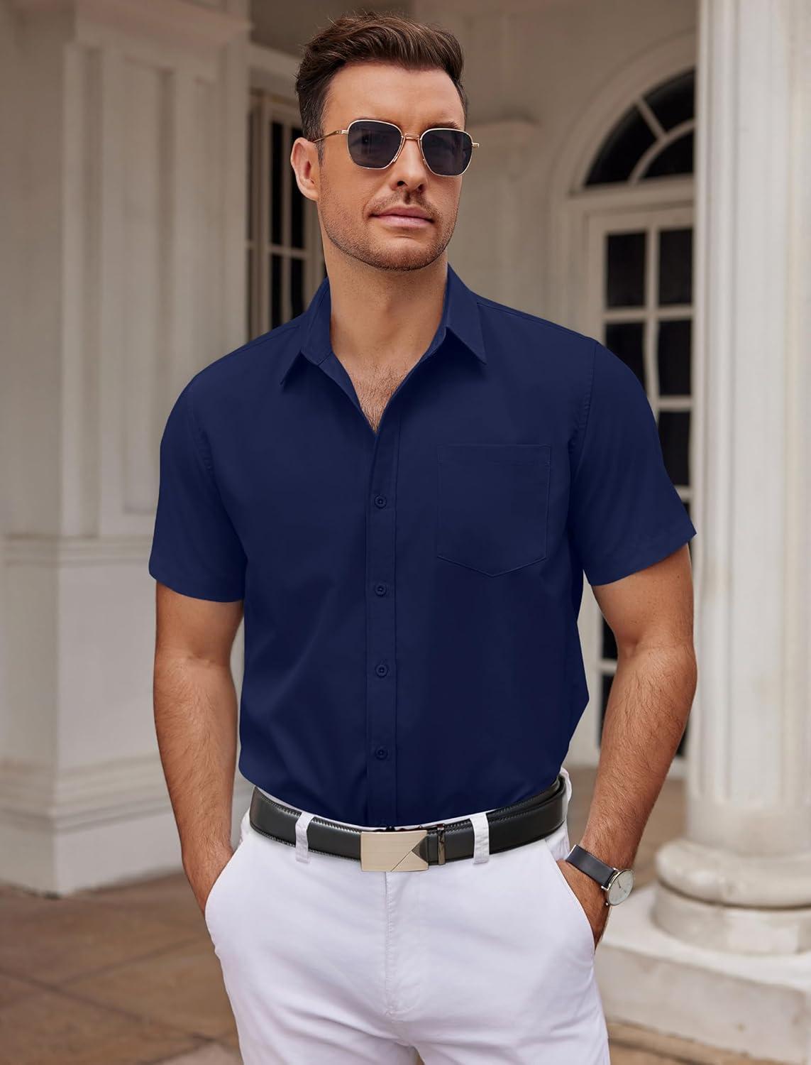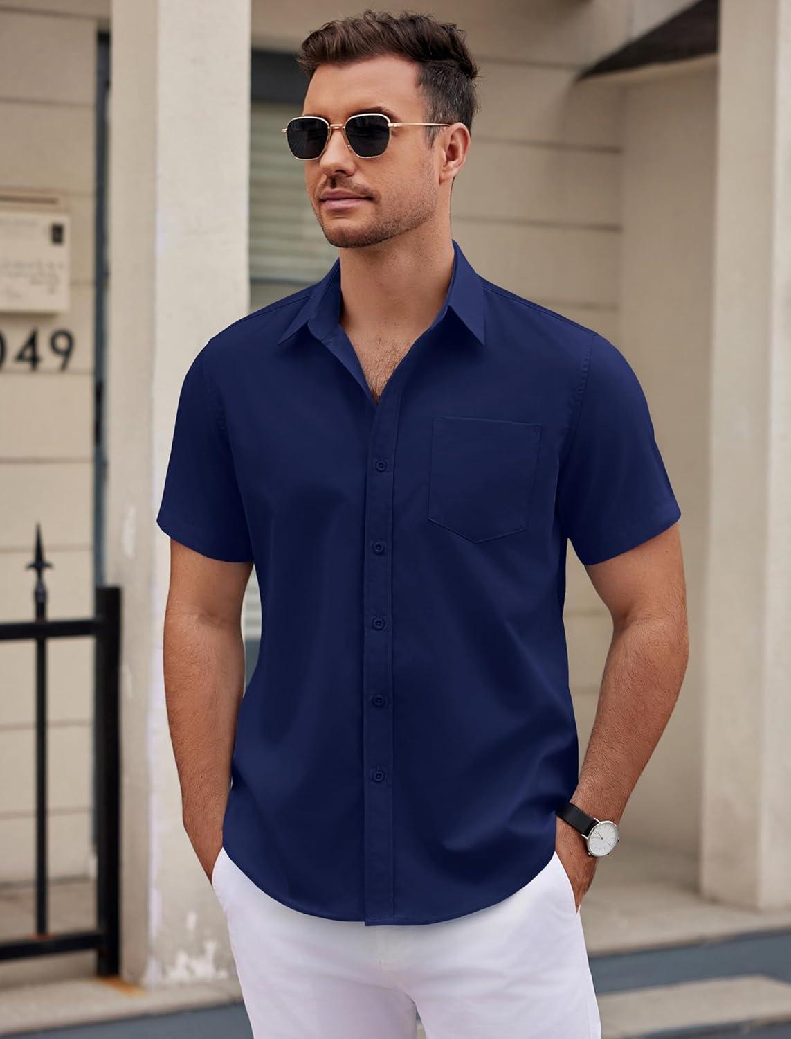 COOFANDY Mens Dress Shirts Short Sleeve Business Casual Shirts Regular Fit Casual Button Down Untucked Shirts(Dark Blue)