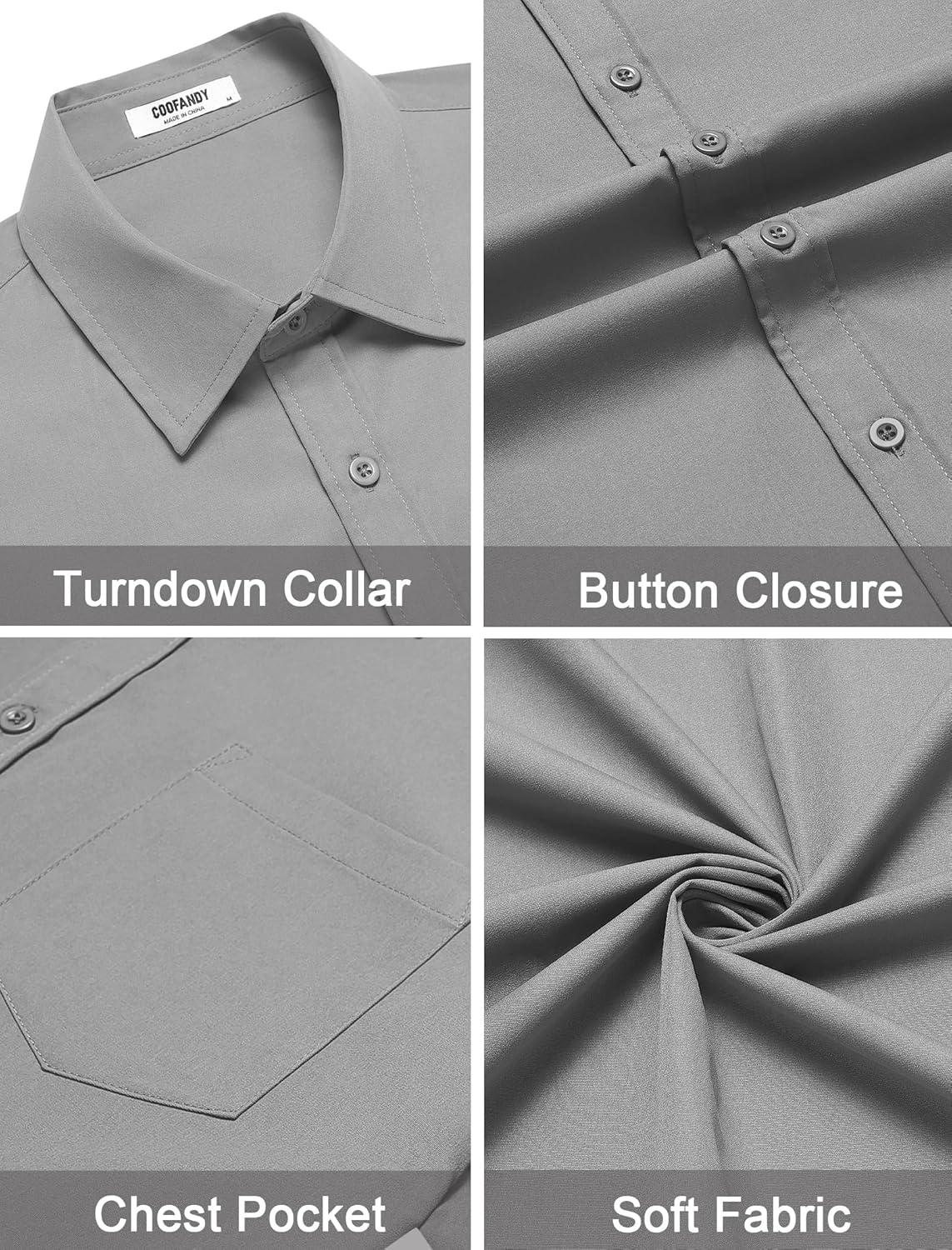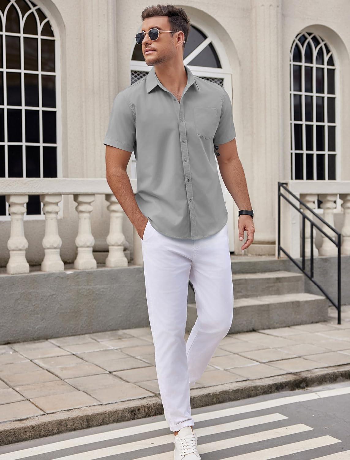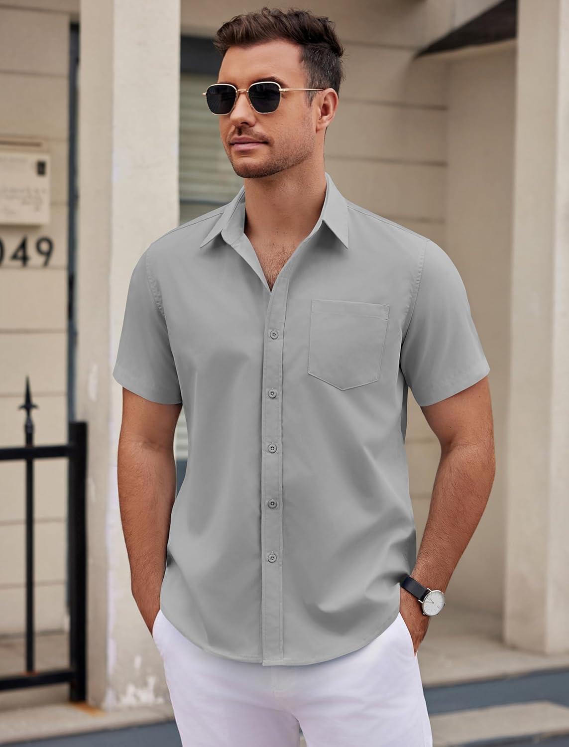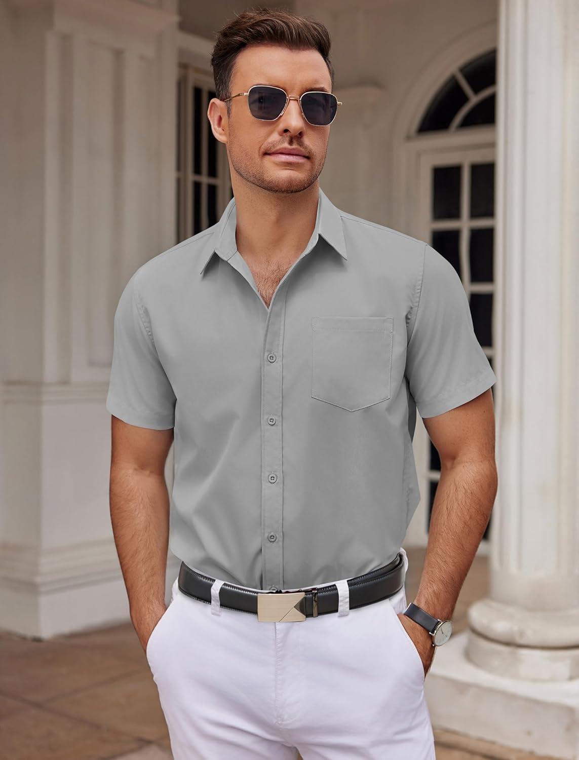 COOFANDY Mens Dress Shirts Short Sleeve Business Casual Shirts Regular Fit Casual Button Down Untucked Shirts(Light Gray)