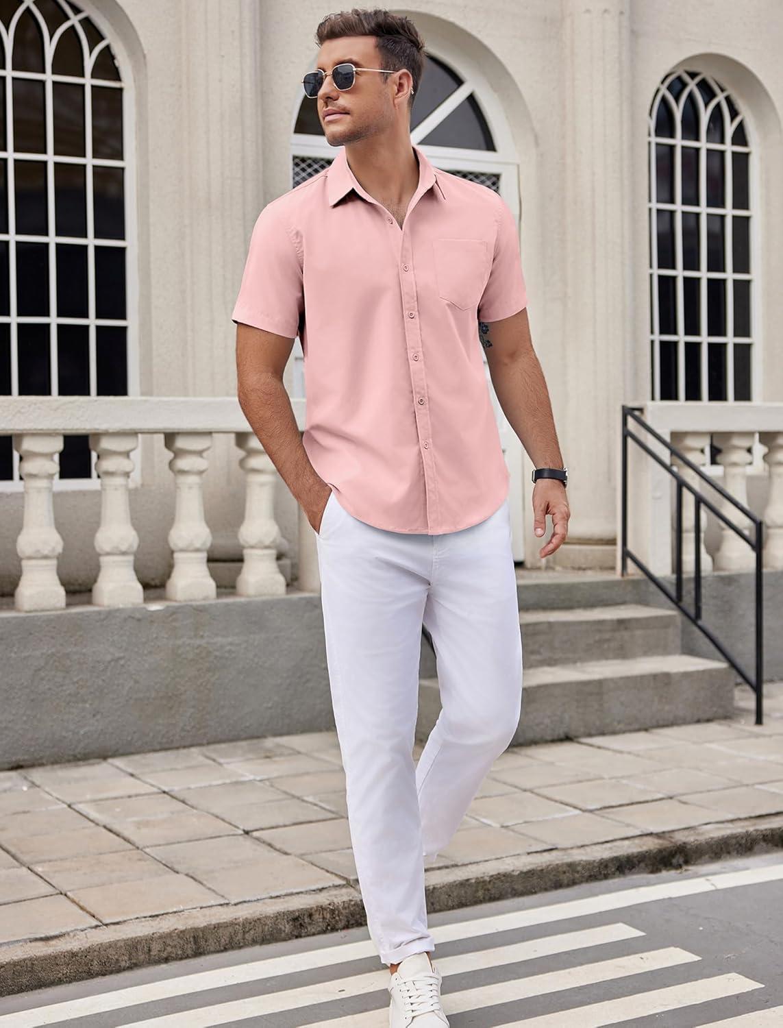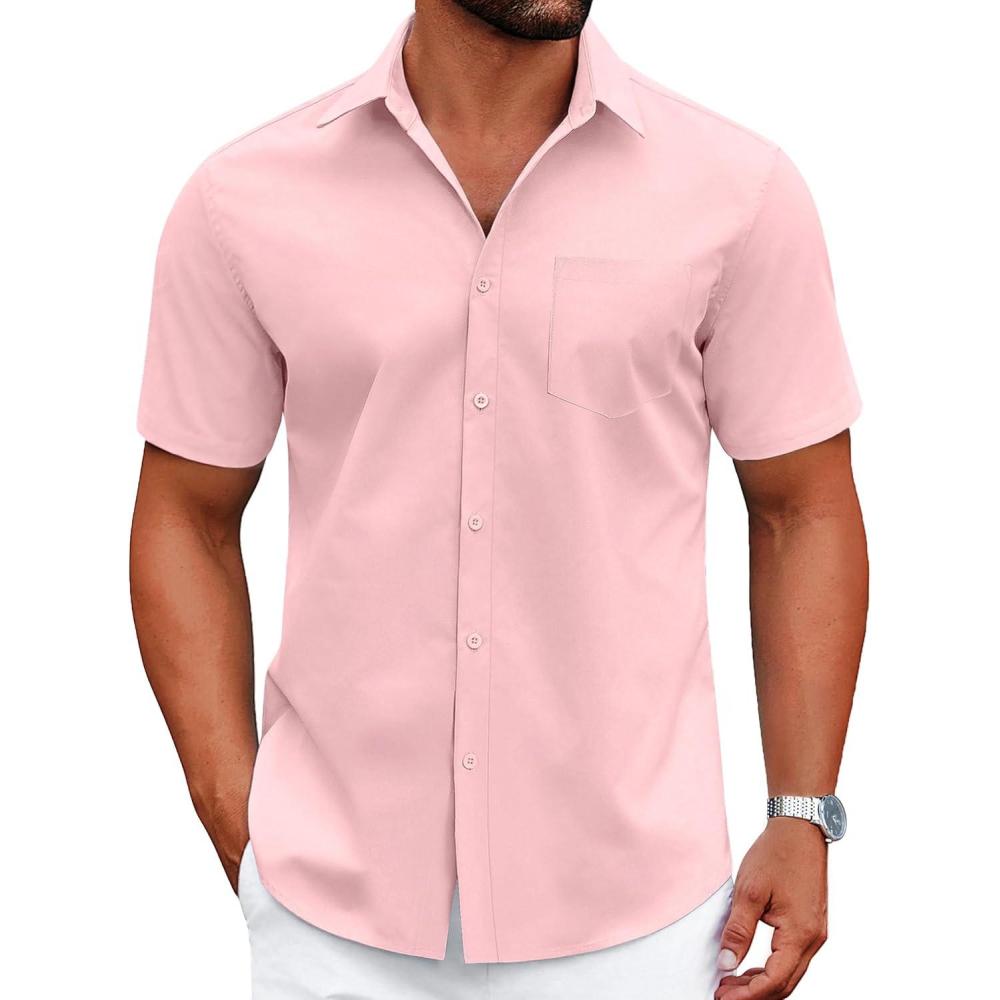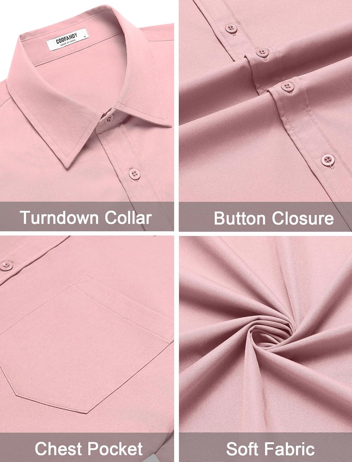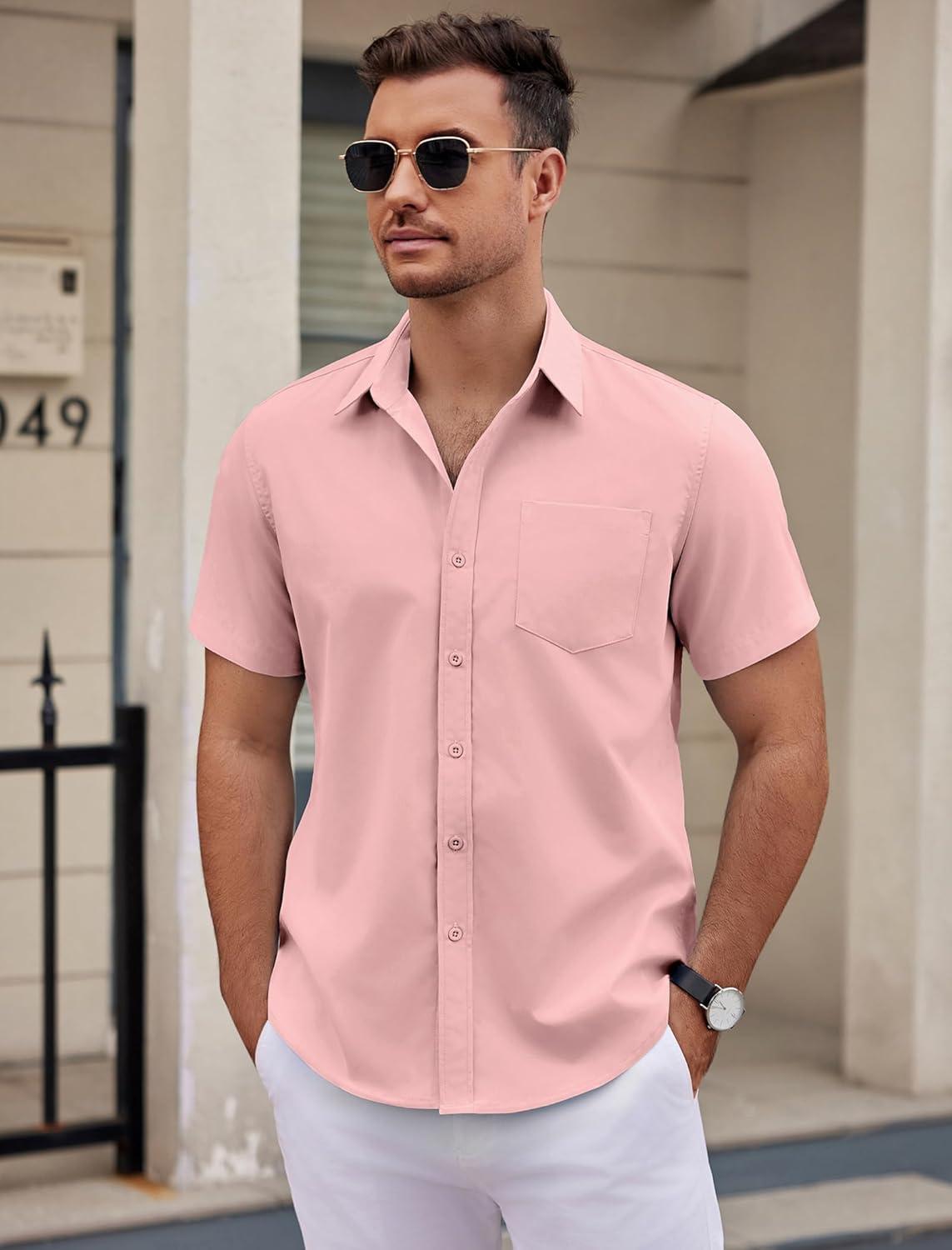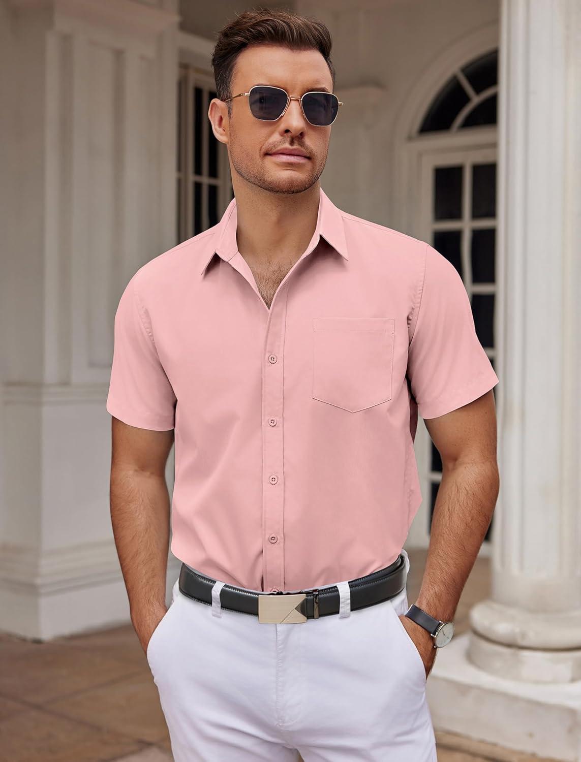 COOFANDY Mens Dress Shirts Short Sleeve Business Casual Shirts Regular Fit Casual Button Down Untucked Shirts(Pink)