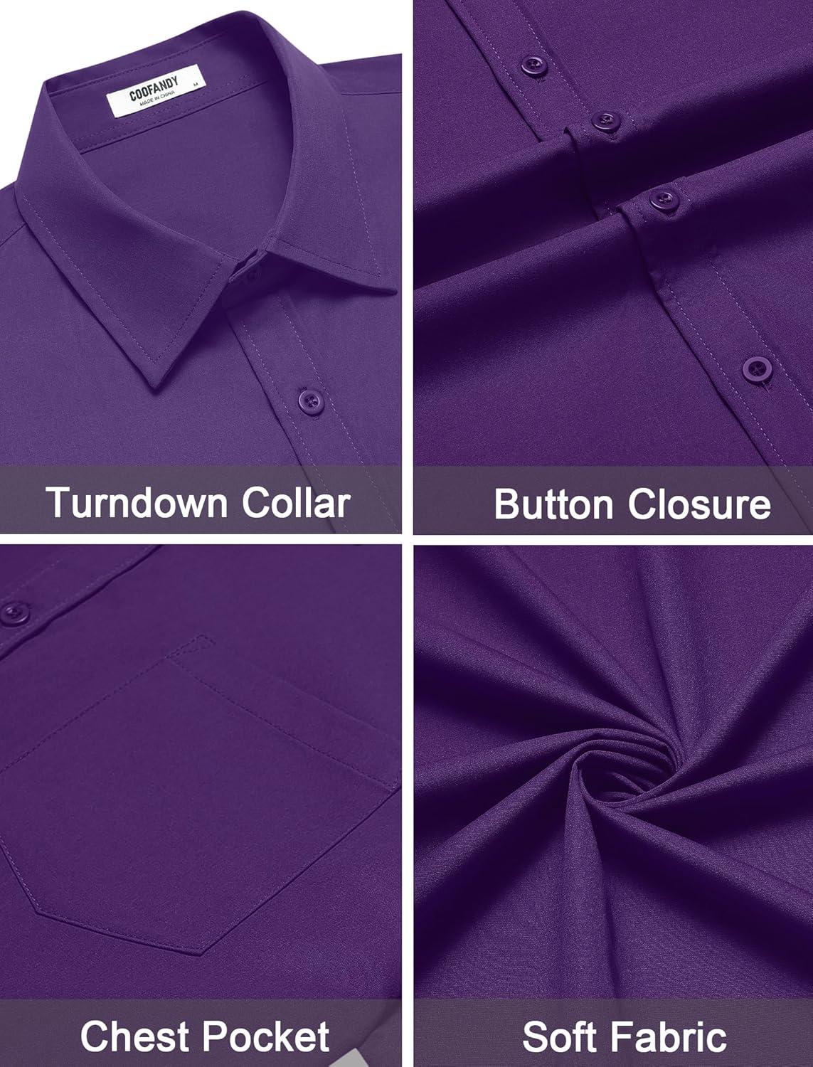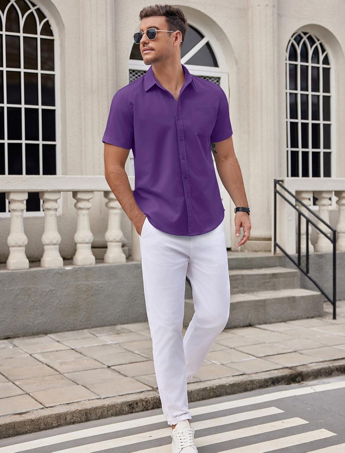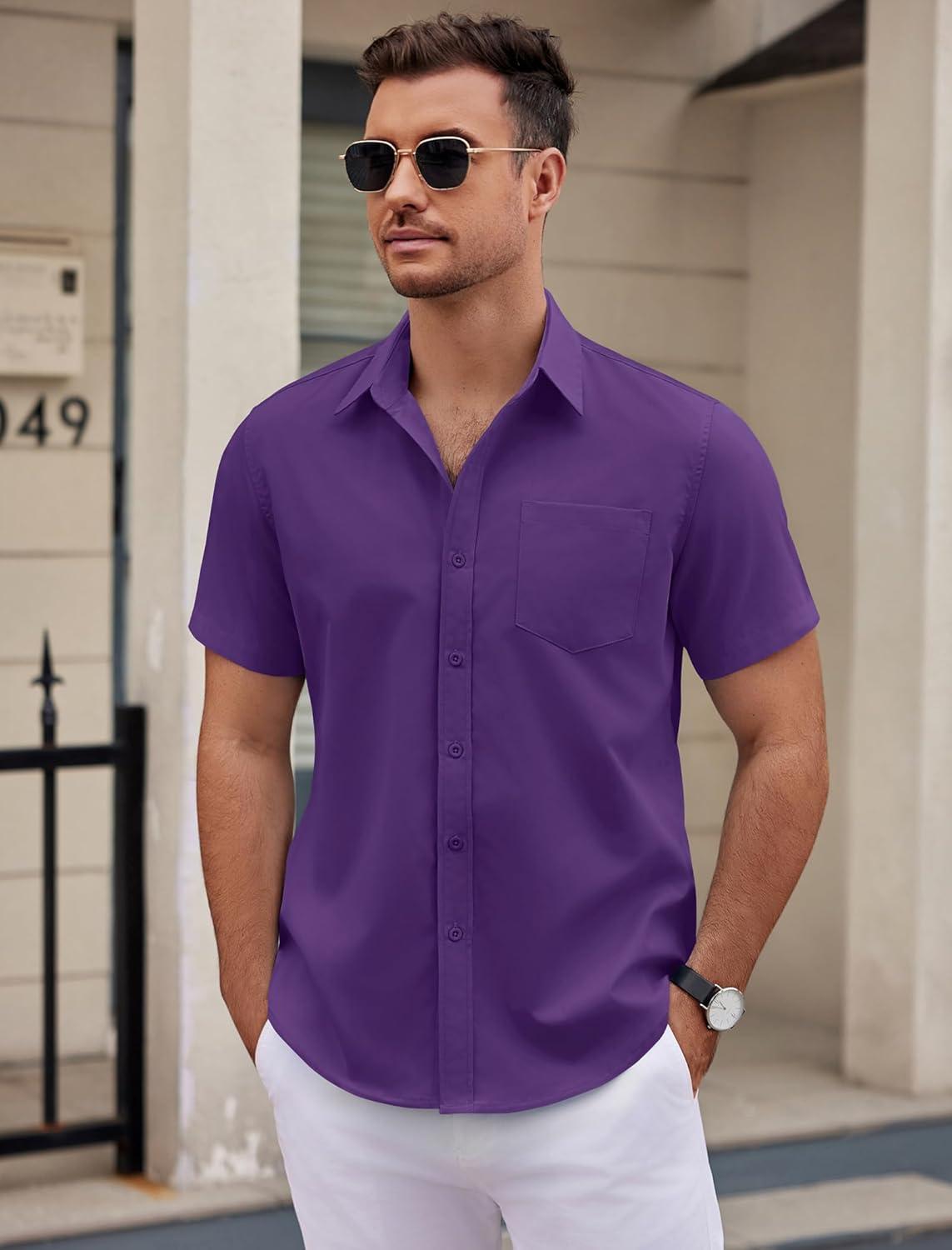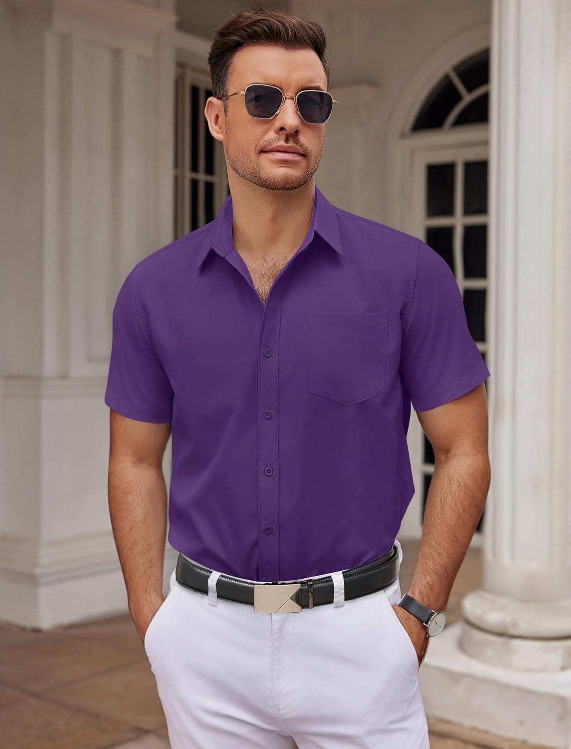 COOFANDY Mens Dress Shirts Short Sleeve Business Casual Shirts Regular Fit Casual Button Down Untucked Shirts(Purple)