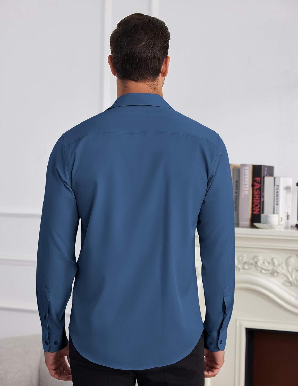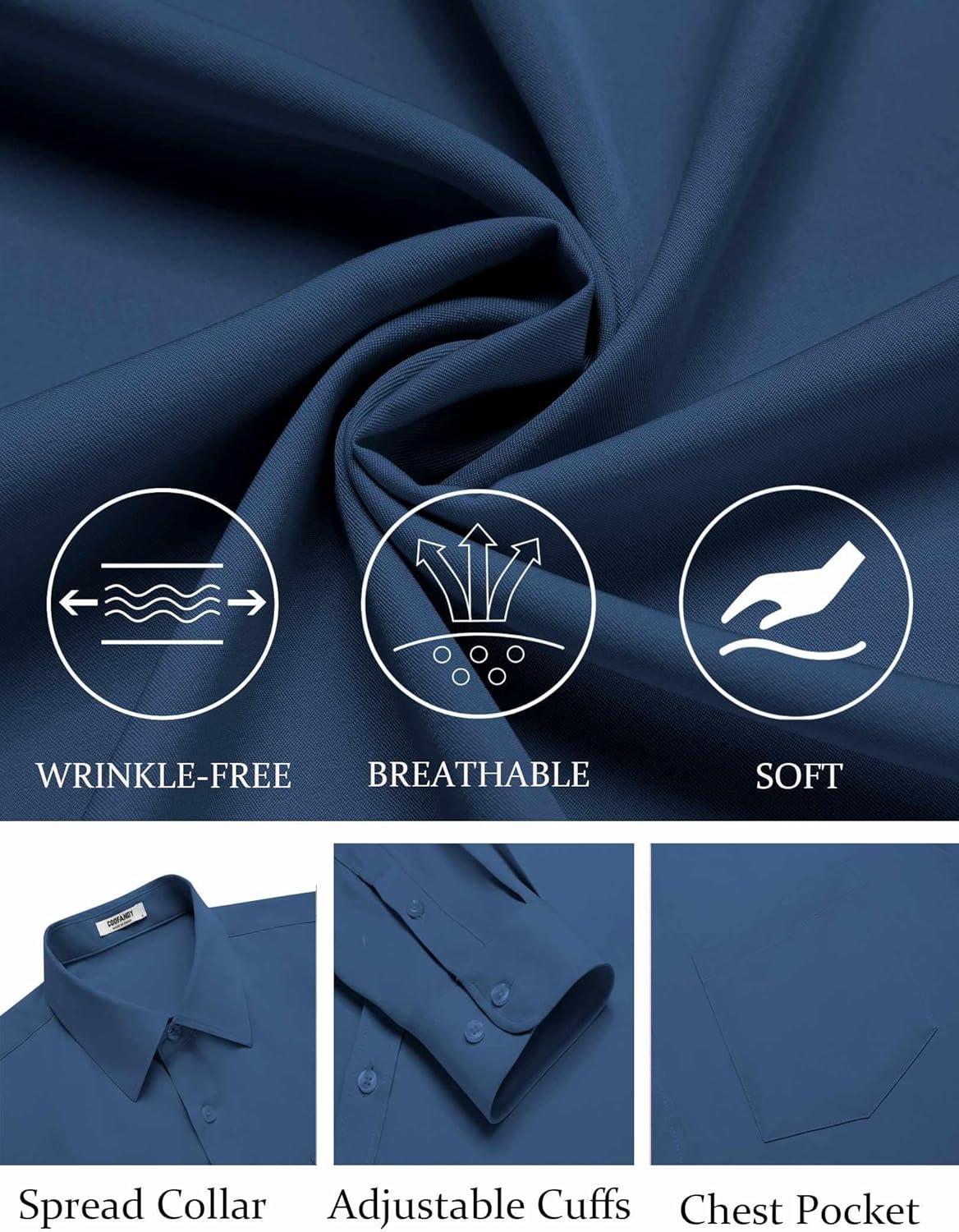 COOFANDY Mens Dress Shirts Wrinkle Free Long Sleeve Button Down Shirt Formal Business Shirts(Dark Blue)