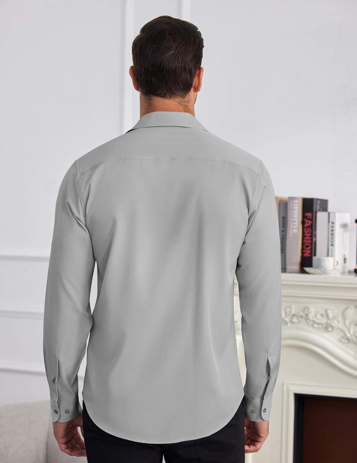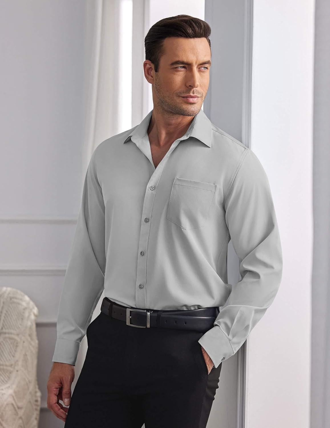 COOFANDY Mens Dress Shirts Wrinkle Free Long Sleeve Button Down Shirt Formal Business Shirts(Light Grey)
