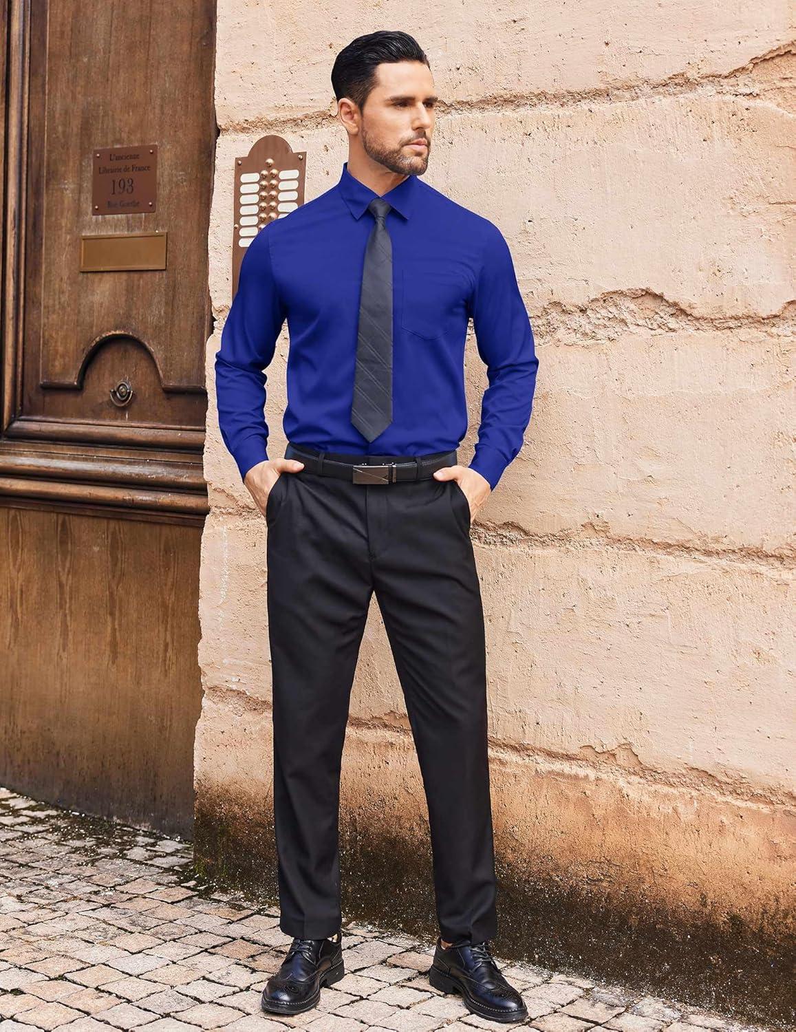 COOFANDY Mens Dress Shirts Wrinkle Free Long Sleeve Button Down Shirt Formal Business Shirts(Royal Blue)
