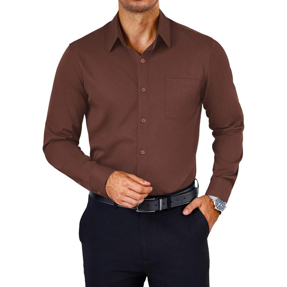 COOFANDY Mens Dress Shirts Wrinkle Free Long Sleeve Button Down Shirts Formal Business Shirt(Brown)