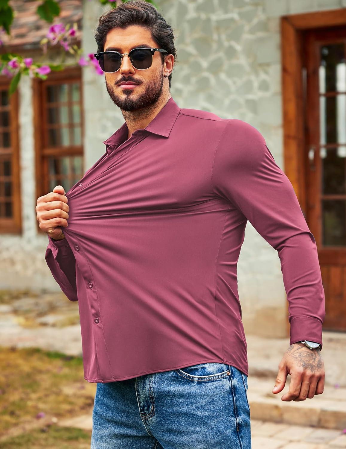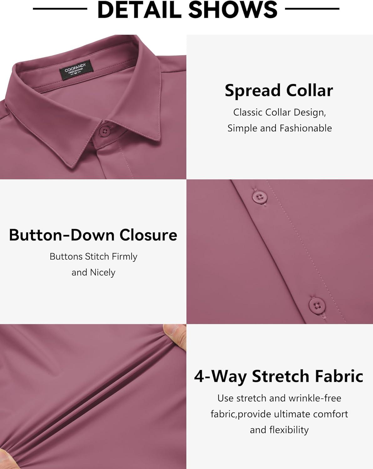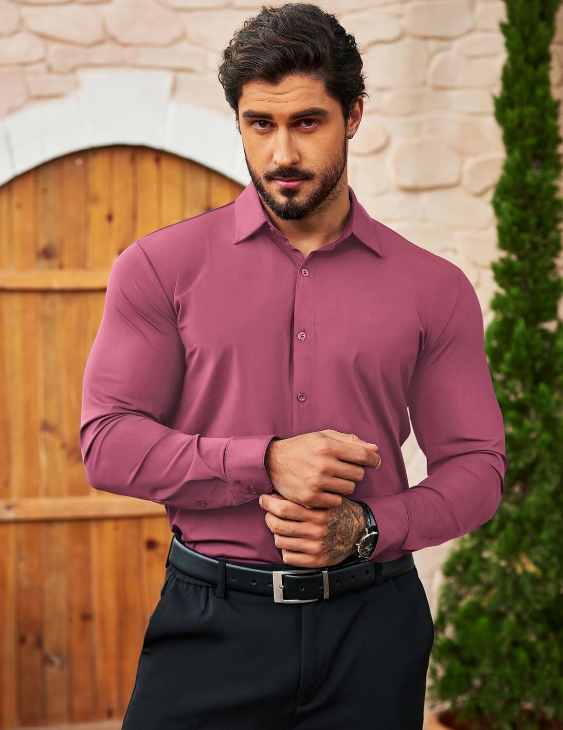 COOFANDY Mens Dress Shirts Wrinkle Free Long Sleeve Button Down Shirts Formal Business Shirt(Deep Purple)
