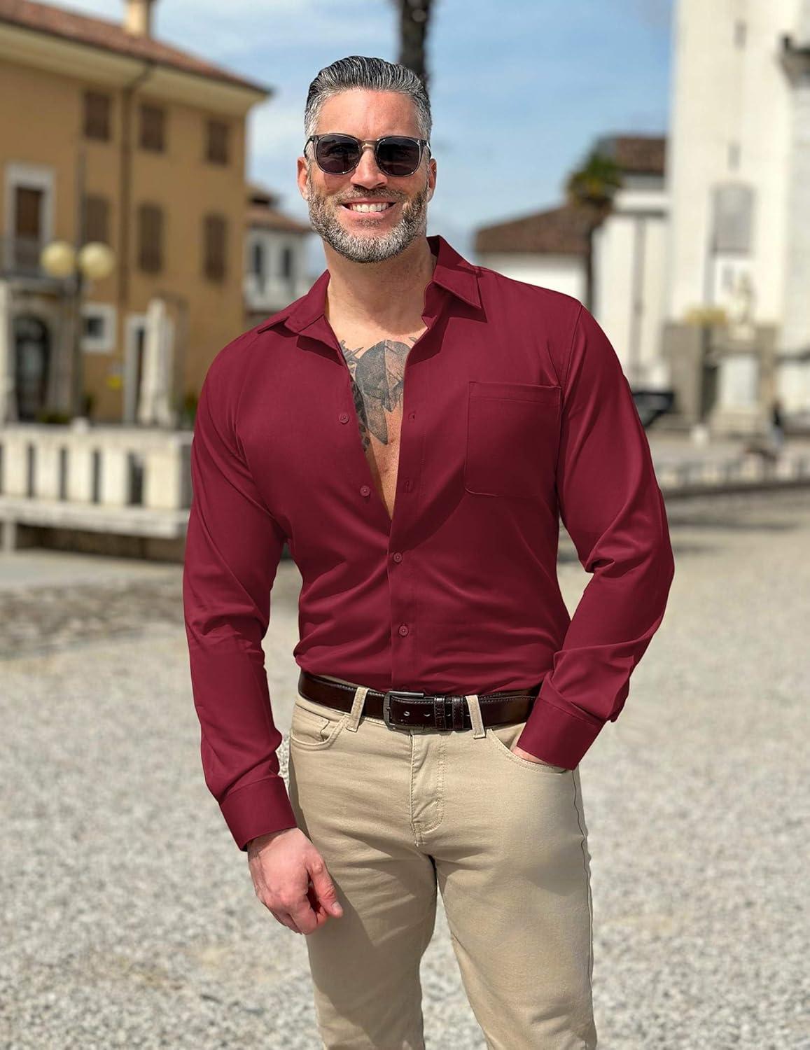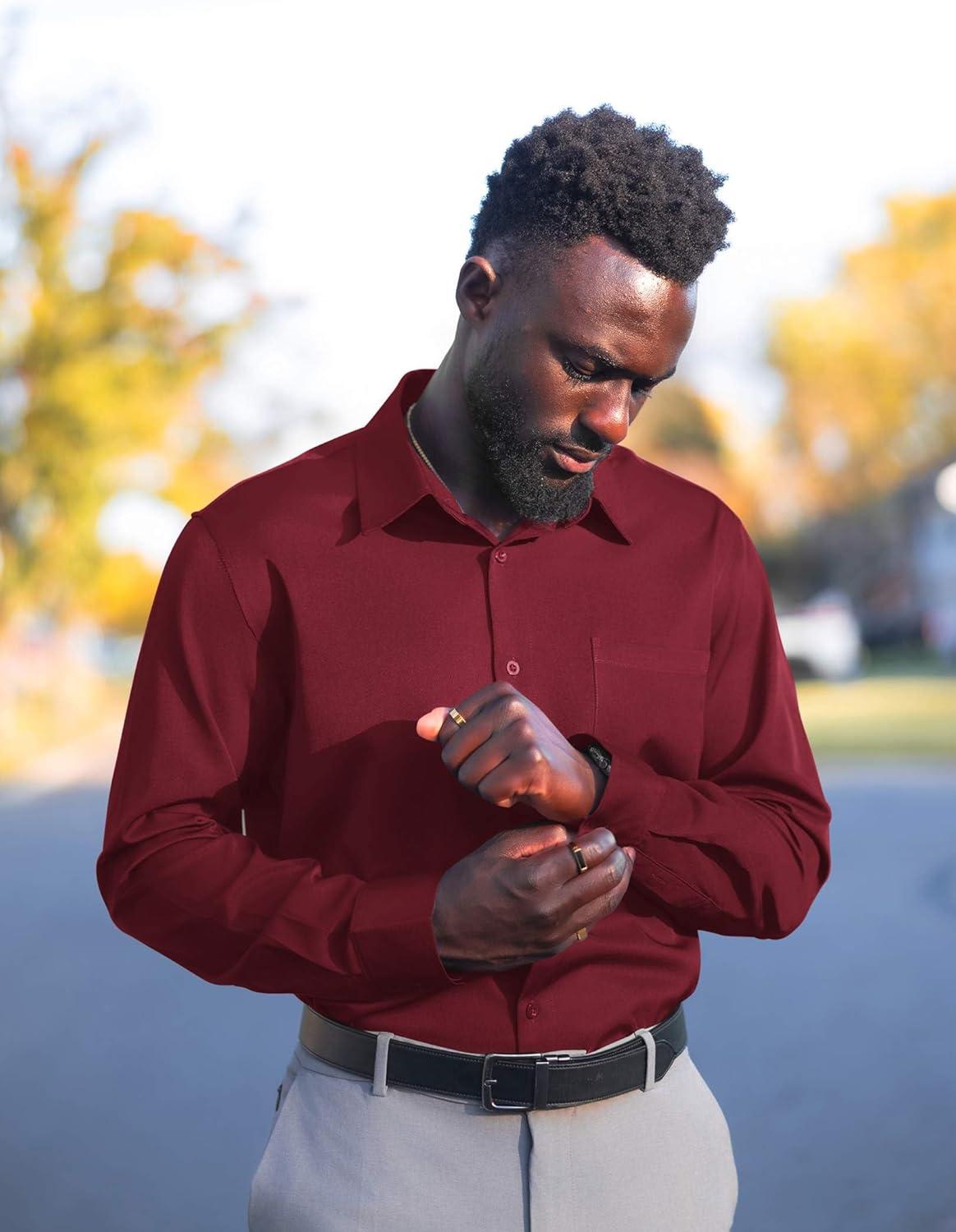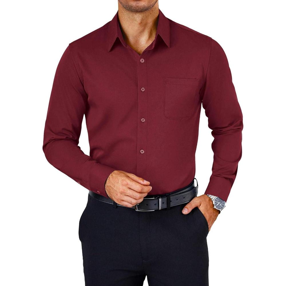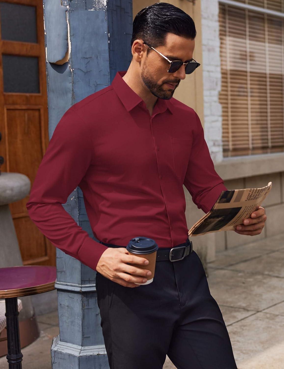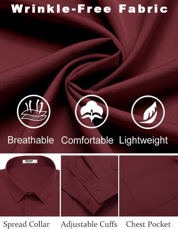 COOFANDY Mens Dress Shirts Wrinkle Free Long Sleeve Button Down Shirts Formal Business Shirt(Wine Red)