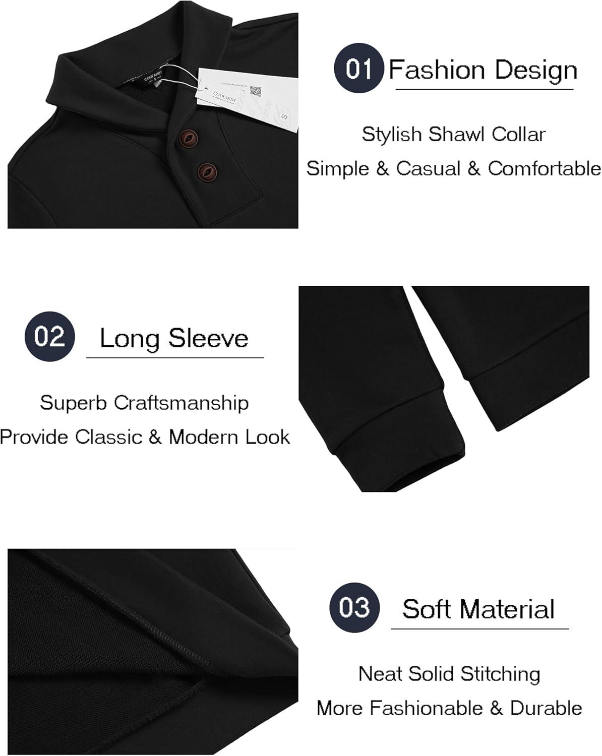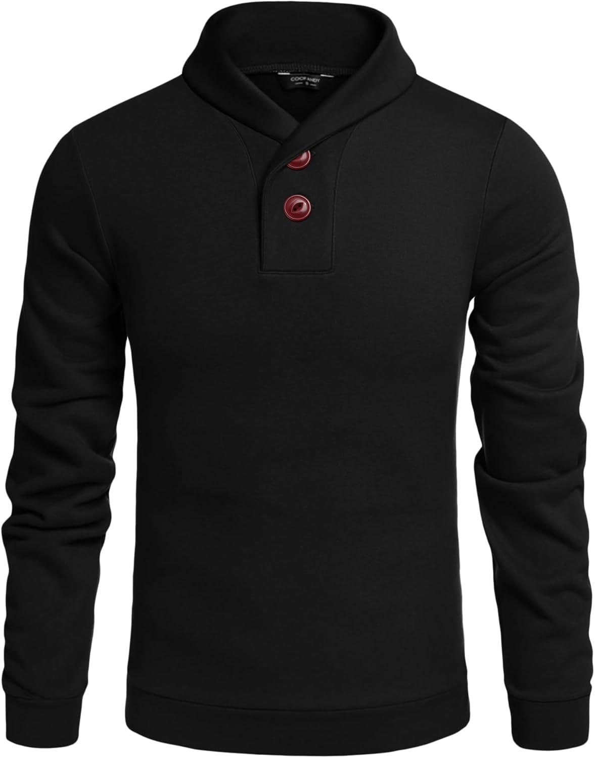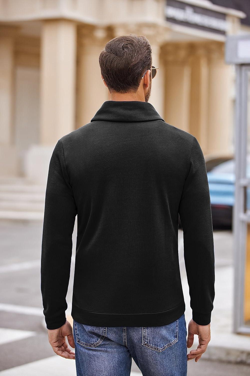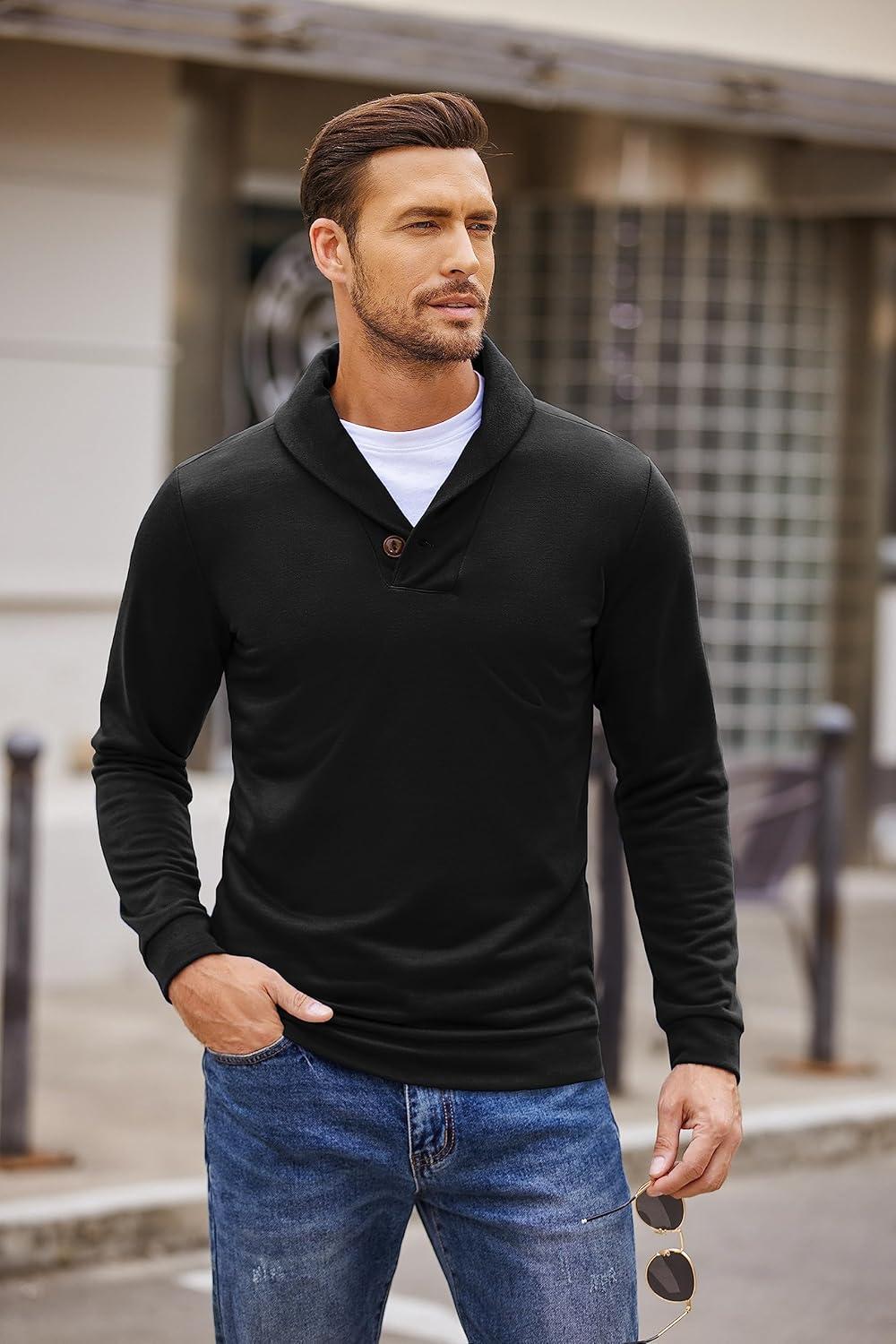 COOFANDY Men’s Fashion Shawl Collar Pullover Casual Long Sleeve Knitted Sweater Sweatshirts(Sweatshirt-black)