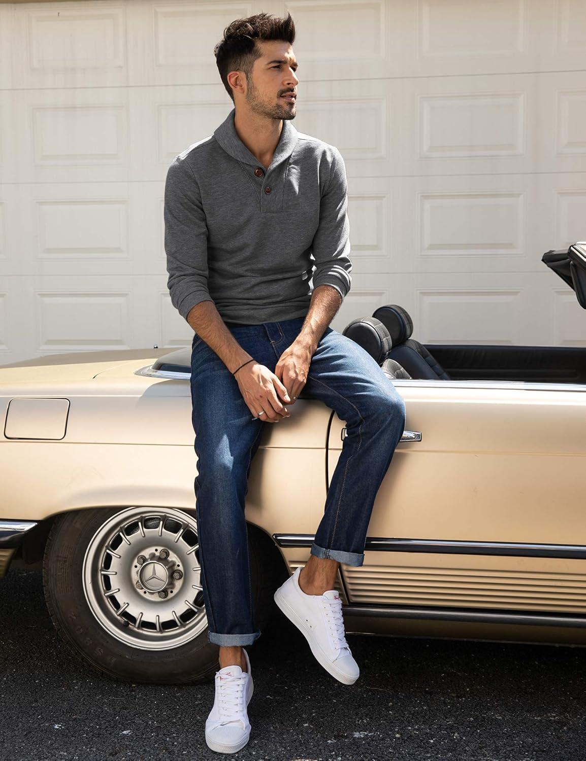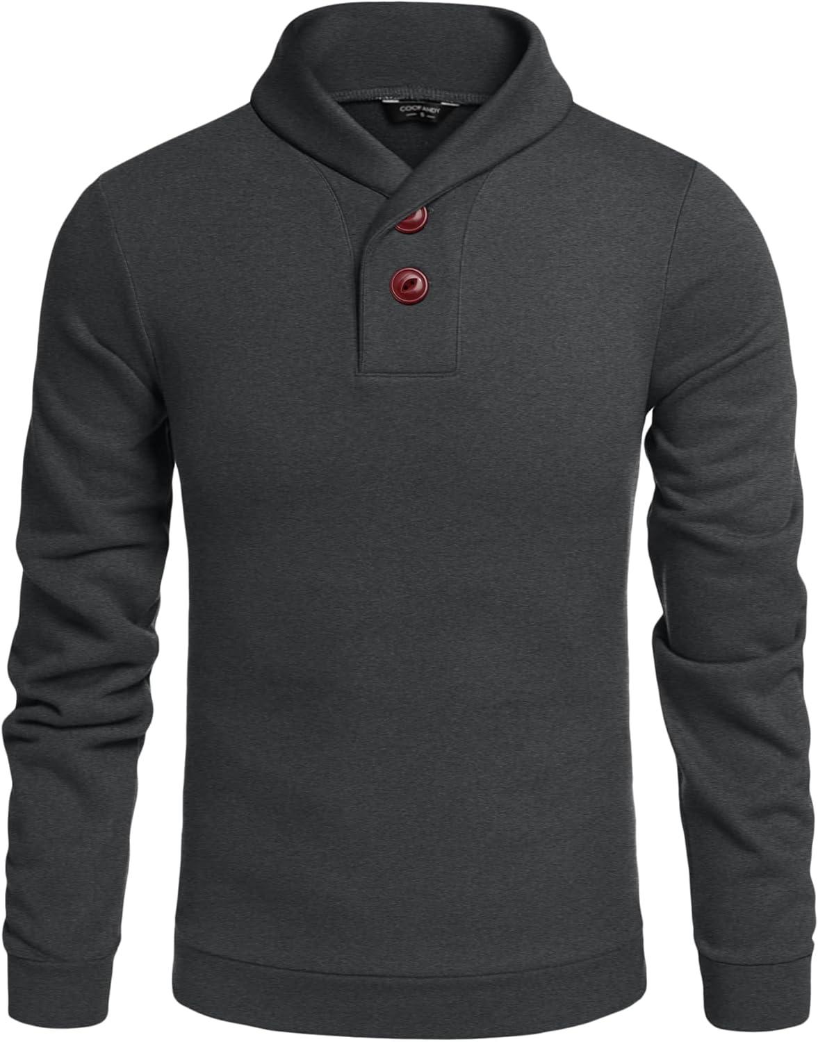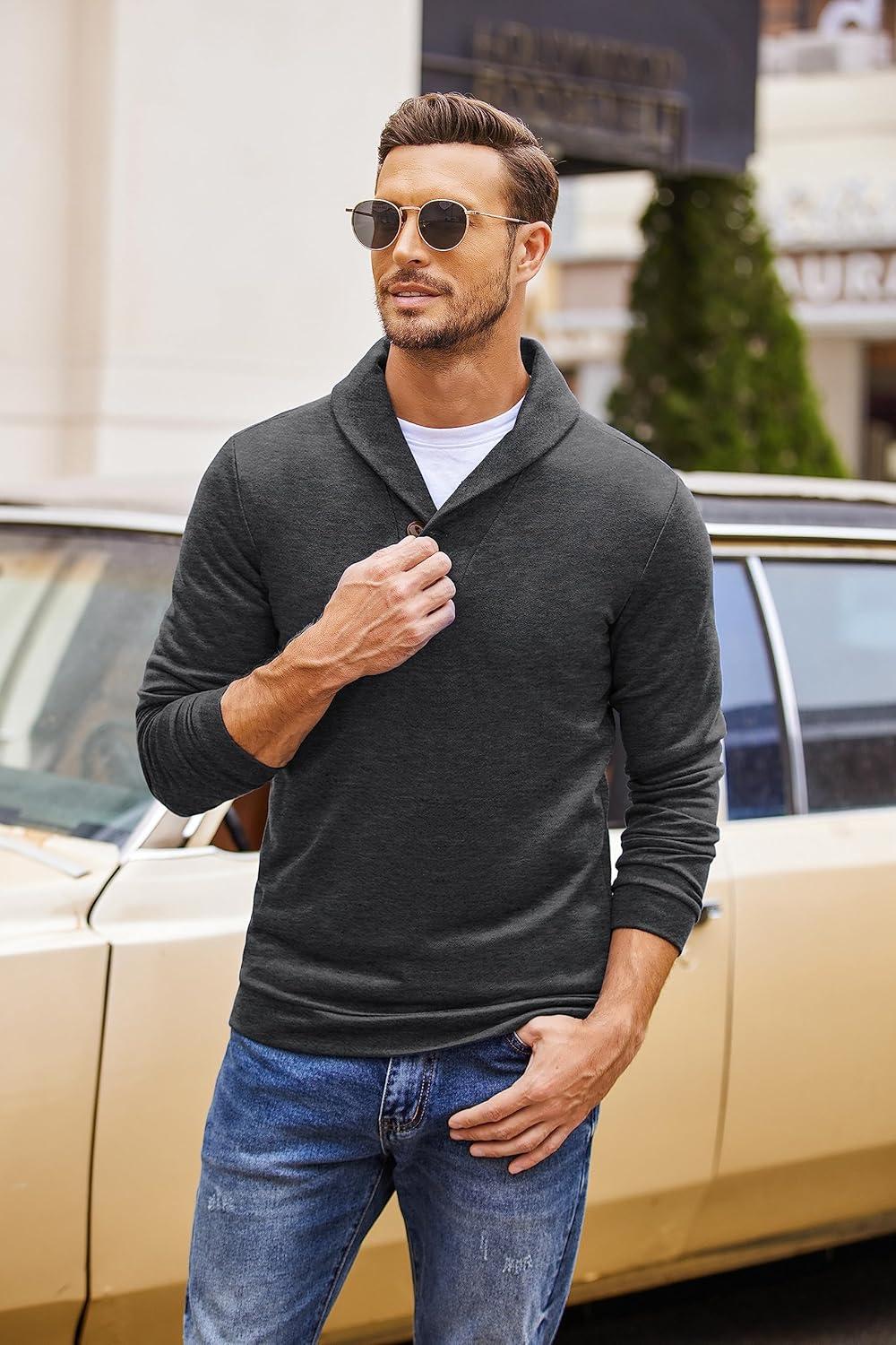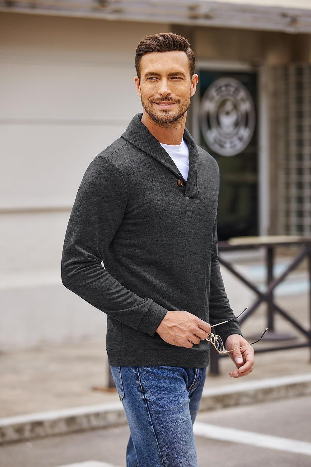 COOFANDY Men’s Fashion Shawl Collar Pullover Casual Long Sleeve Knitted Sweater Sweatshirts(Sweatshirt-dark Gray)