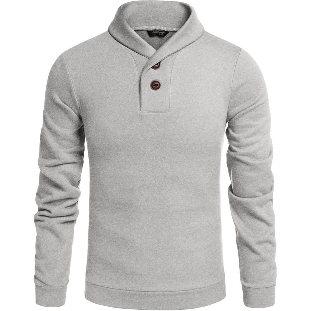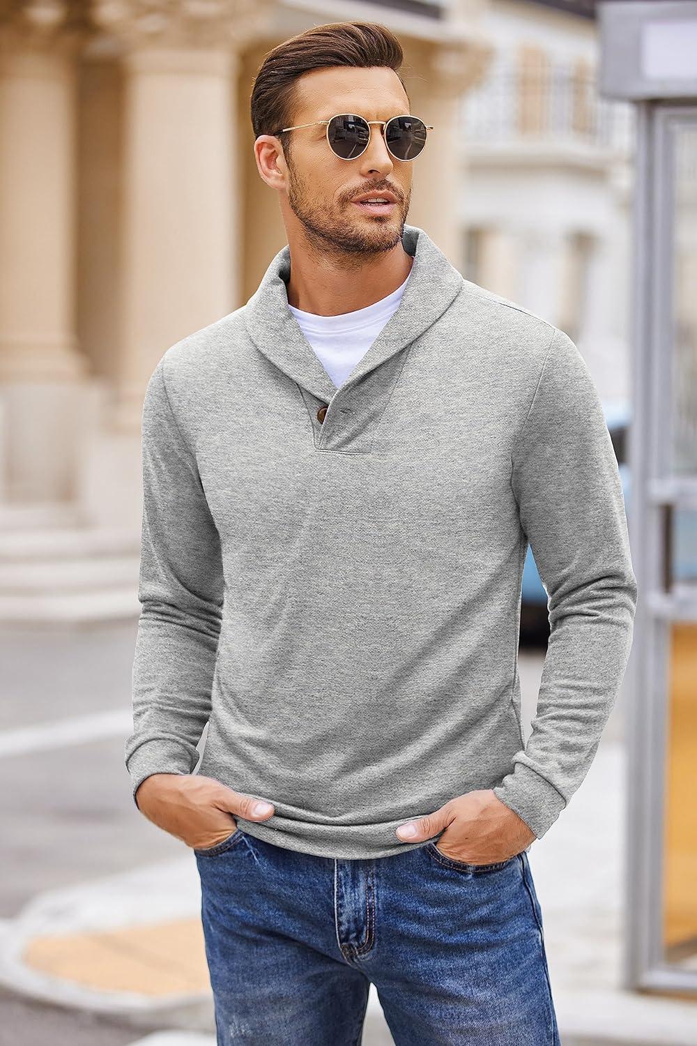 COOFANDY Men’s Fashion Shawl Collar Pullover Casual Long Sleeve Knitted Sweater Sweatshirts(Sweatshirt-gray)