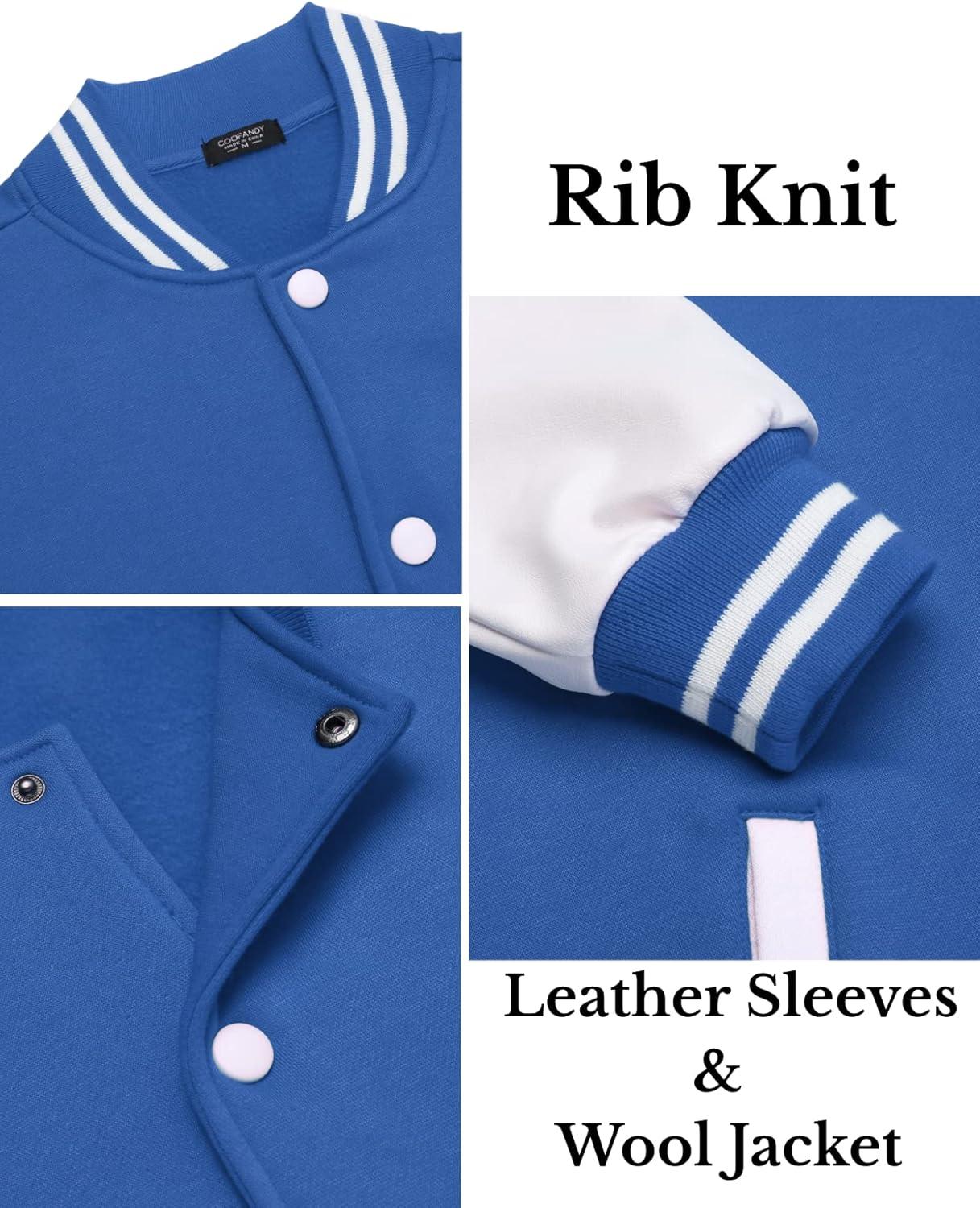 COOFANDY Mens Fashion Varsity Jackets Leather Sleeve Slim Fit College Baseball Letterman Bomber Coat(Blue)